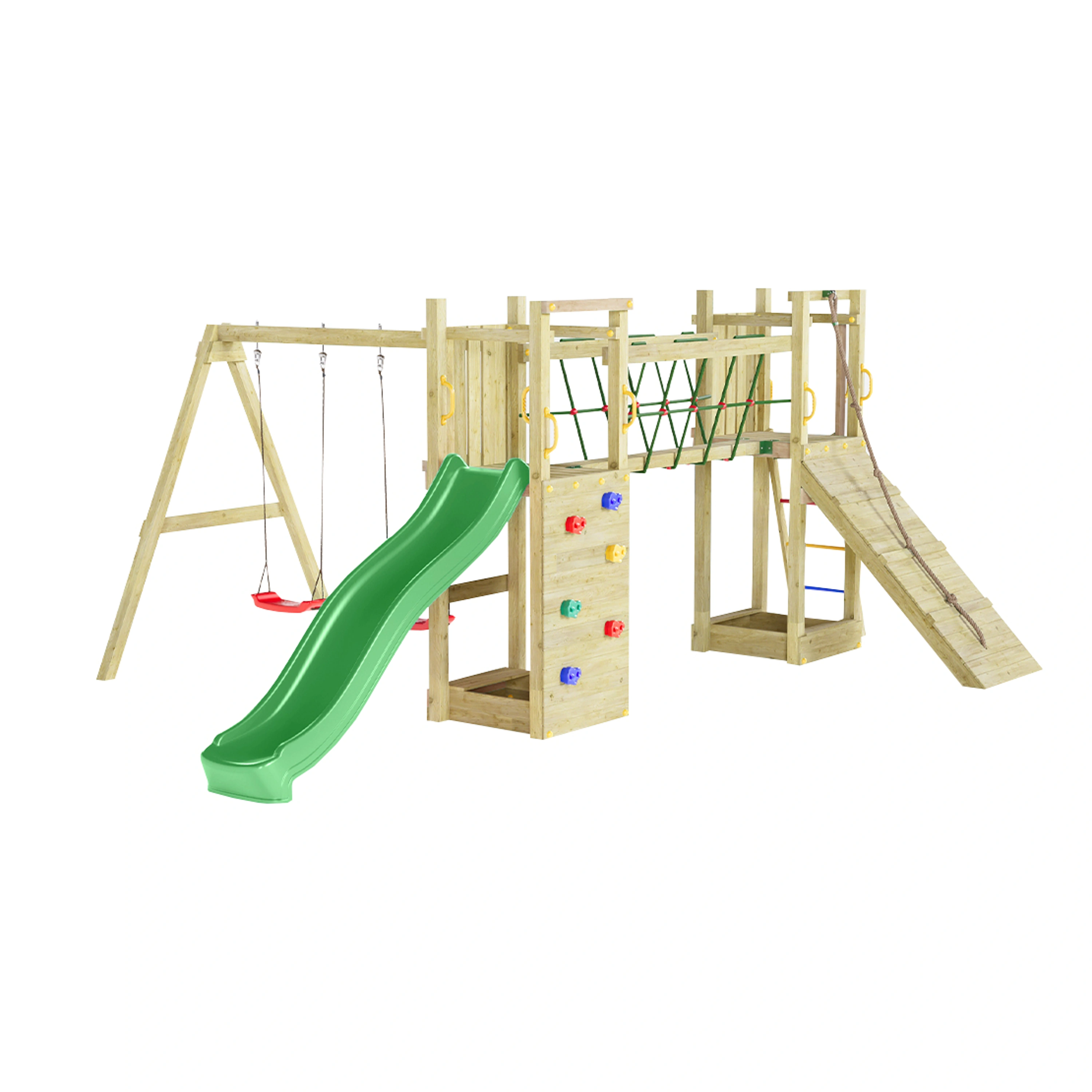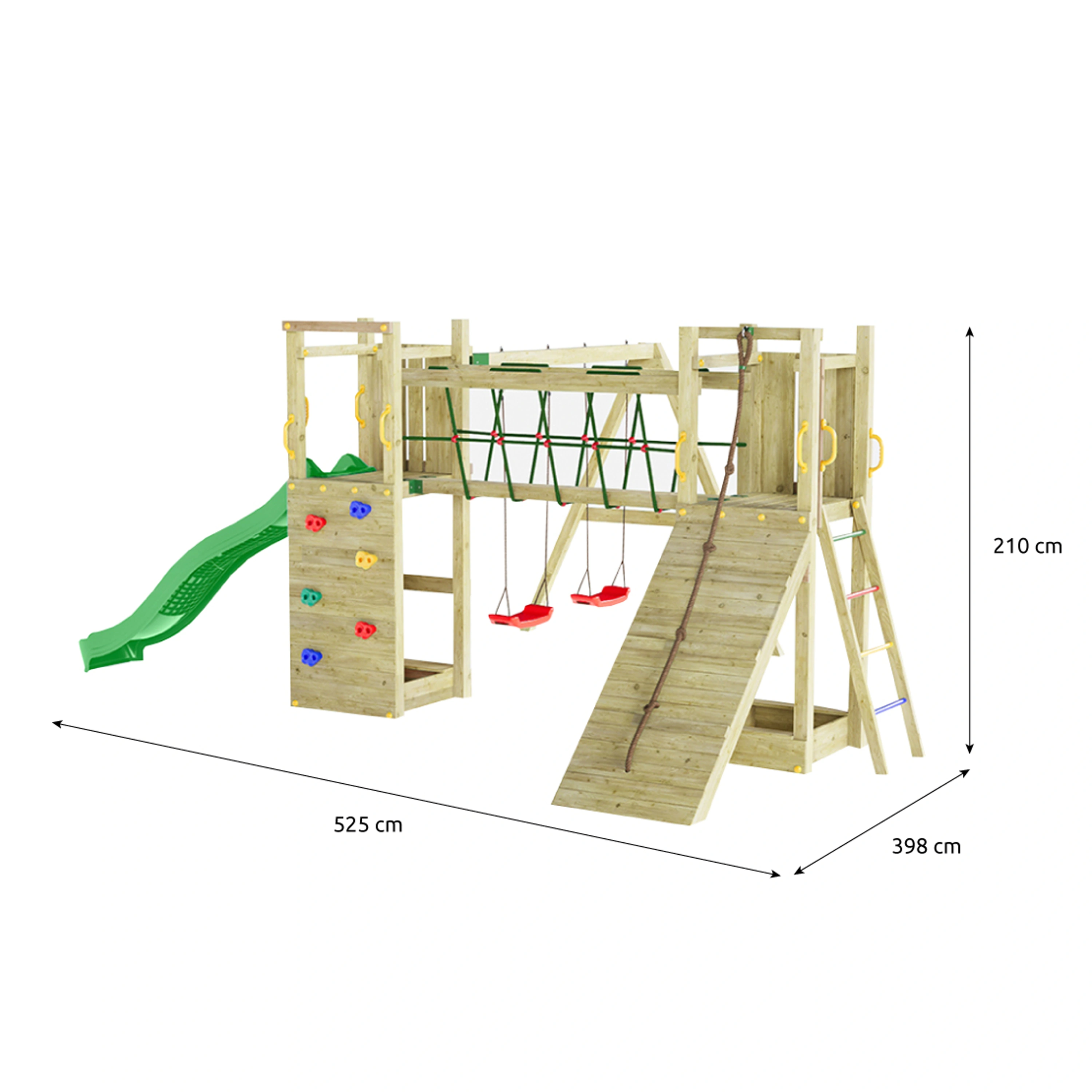 Kvalitní materiályVeškeré komponenty jsou vyrobeny z robustního plastu, odolného kovu a borovicového dřeva, které je povrchově ošetřeno proti nepříznivým vlivům počasí. |