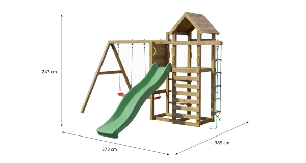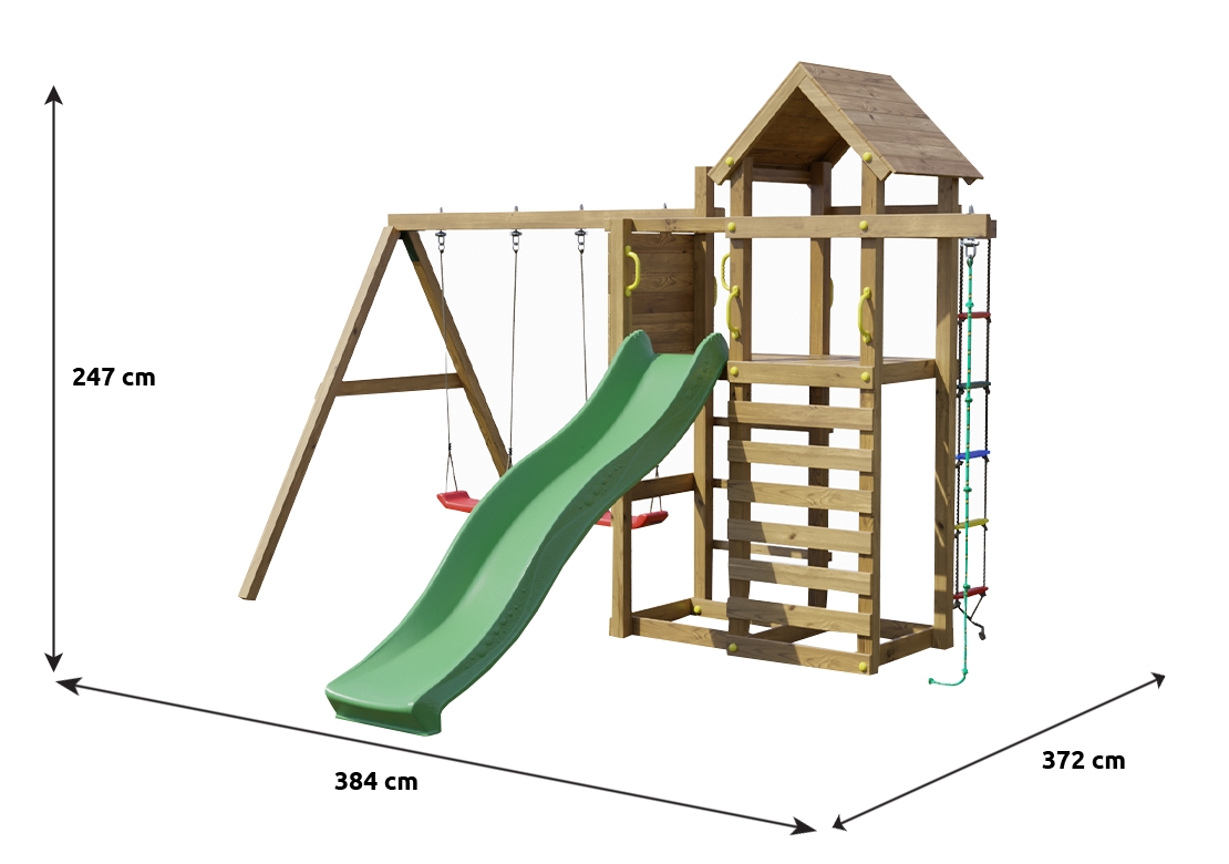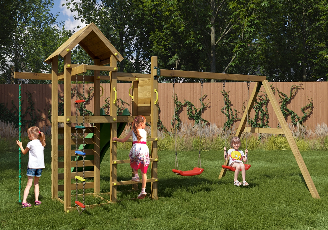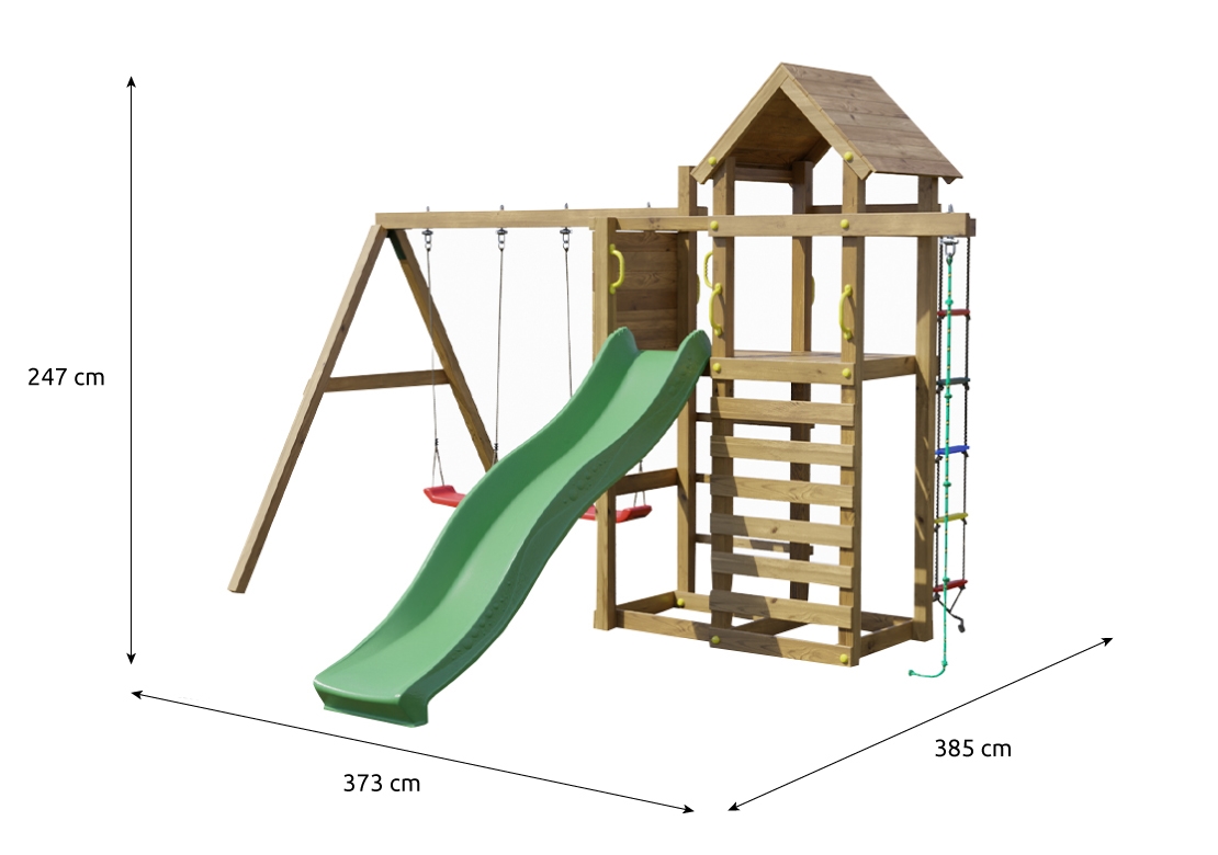 Kvalitní materiályVeškeré komponenty jsou vyrobeny z robustního plastu, odolného kovu a borovicového dřeva, které je povrchově ošetřeno proti nepříznivým vlivům počasí. |
