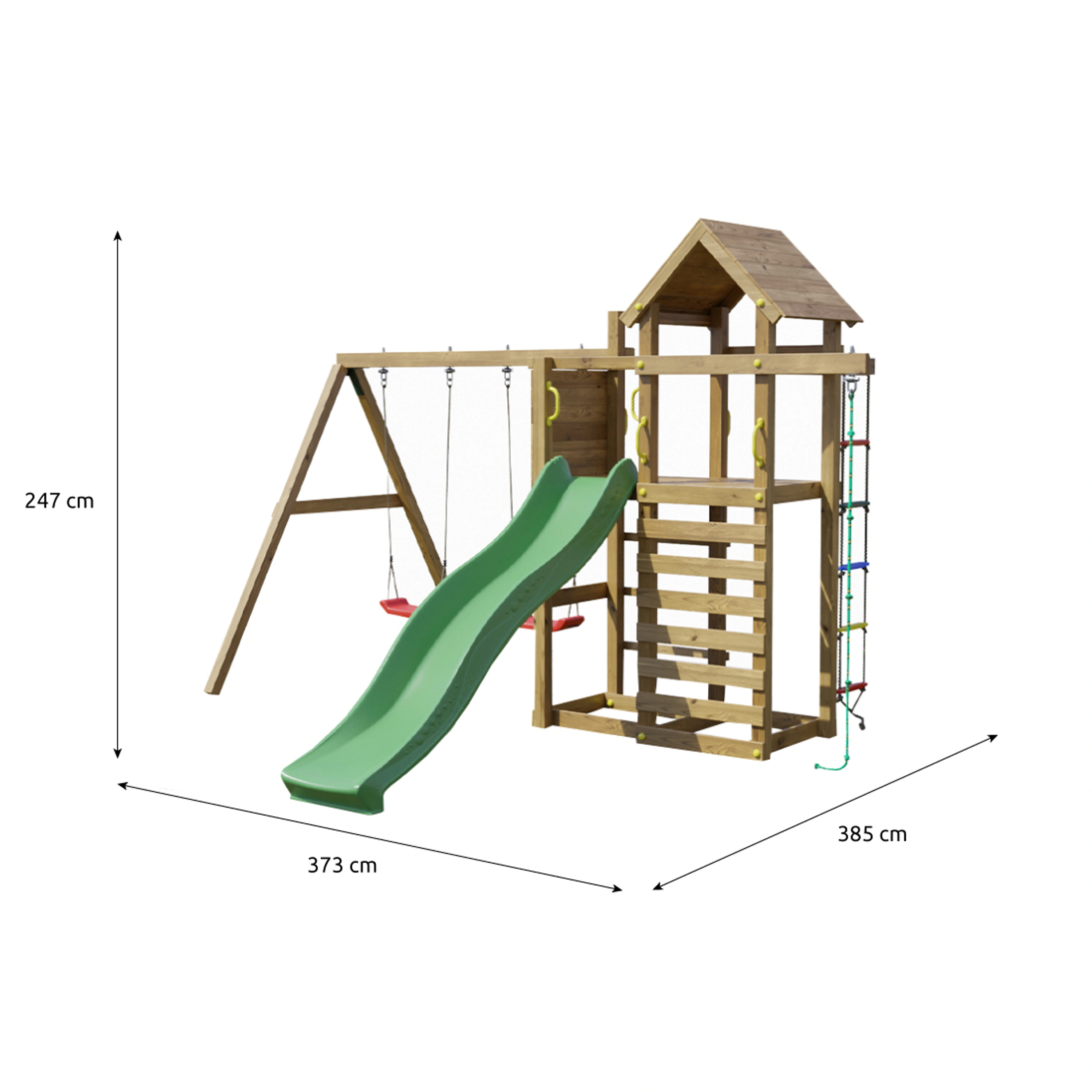 Kvalitní materiályVeškeré komponenty jsou vyrobeny z robustního plastu, odolného kovu a borovicového dřeva, které je povrchově ošetřeno proti nepříznivým vlivům počasí. |