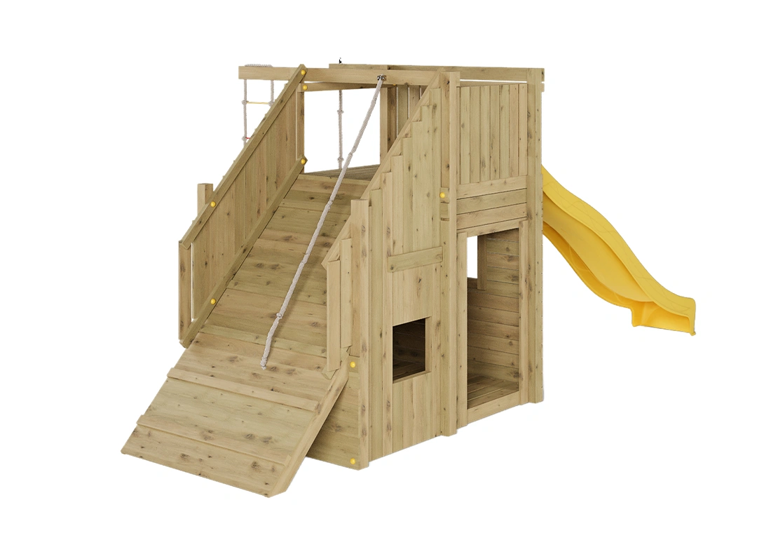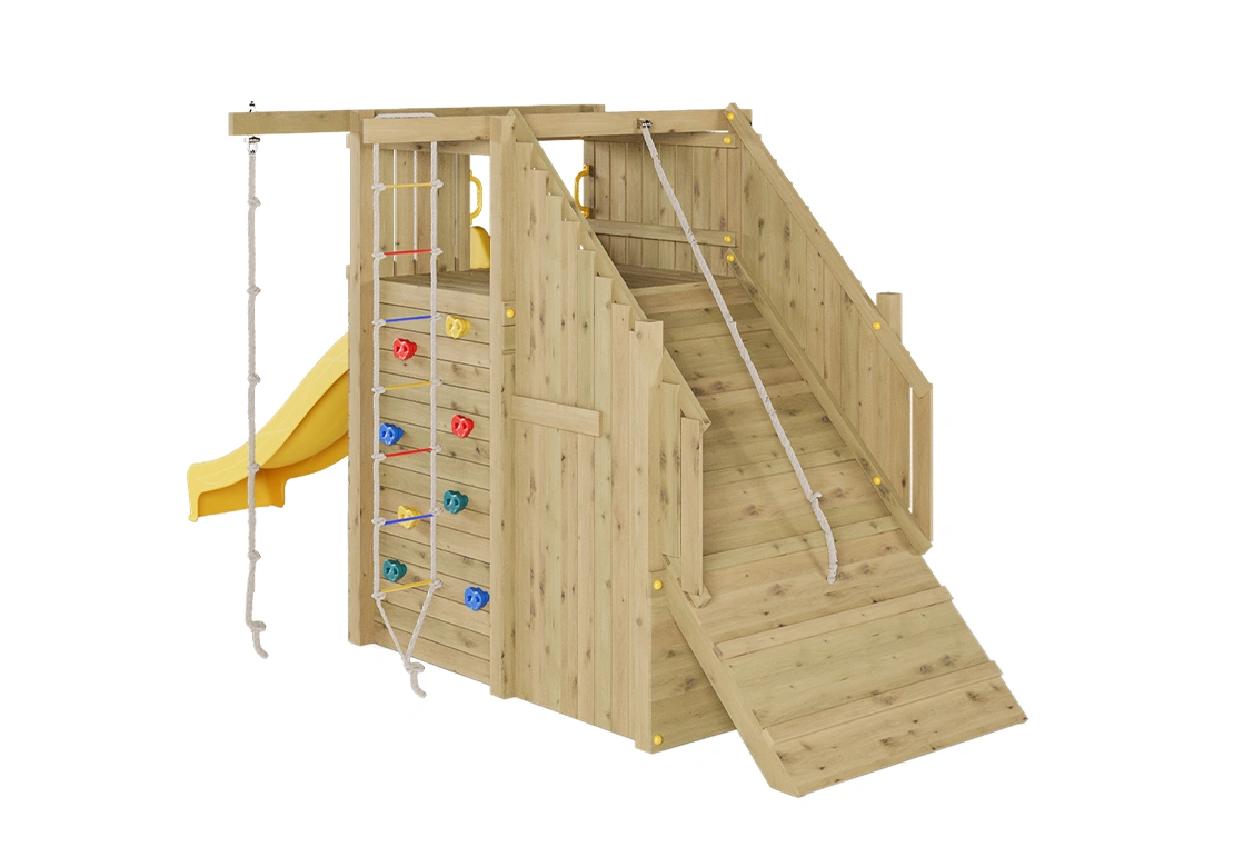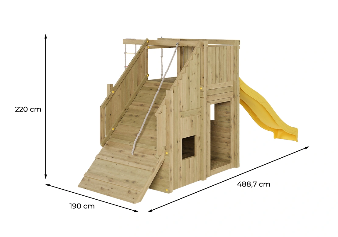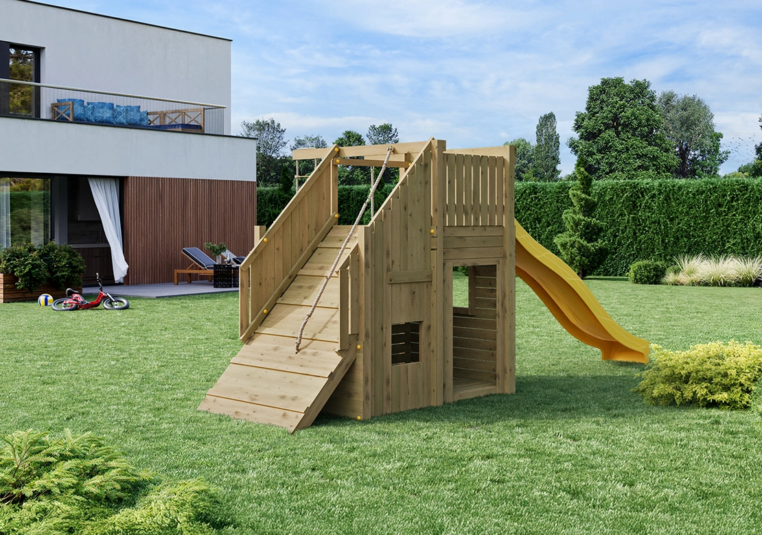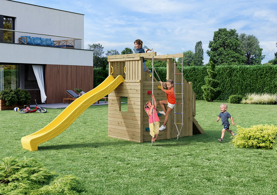 Tato multifunkční herní sestava nabízí skluzavku i lezecké prvky, zároveň ale podporuje i fantazii. Děti si tak neužijí jen pohyb, ale i vlastní zázemí a společné hry s kamarády.