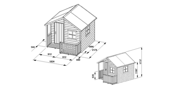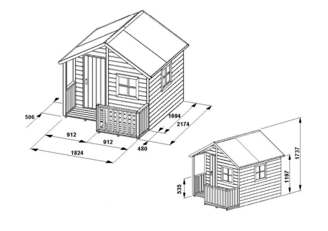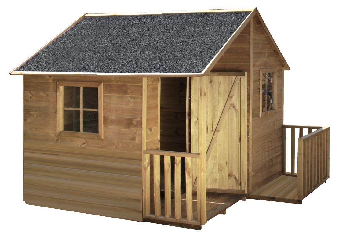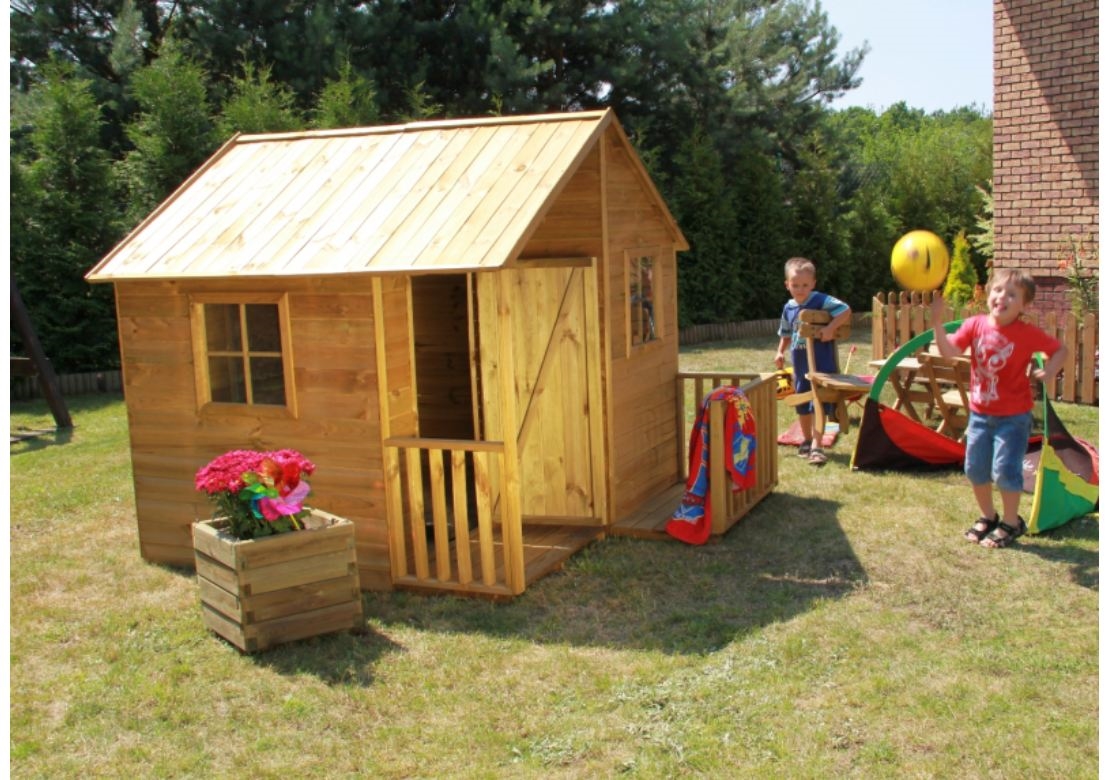 Dětský dřevěný domeček Chalupa je vyroben z borovice. Disponuje podlahou a střechou. Střecha je chráněna bitumenovým pásem. Dřevo je tlakově impregnováno. Domeček je určen pro venkovní použití.
