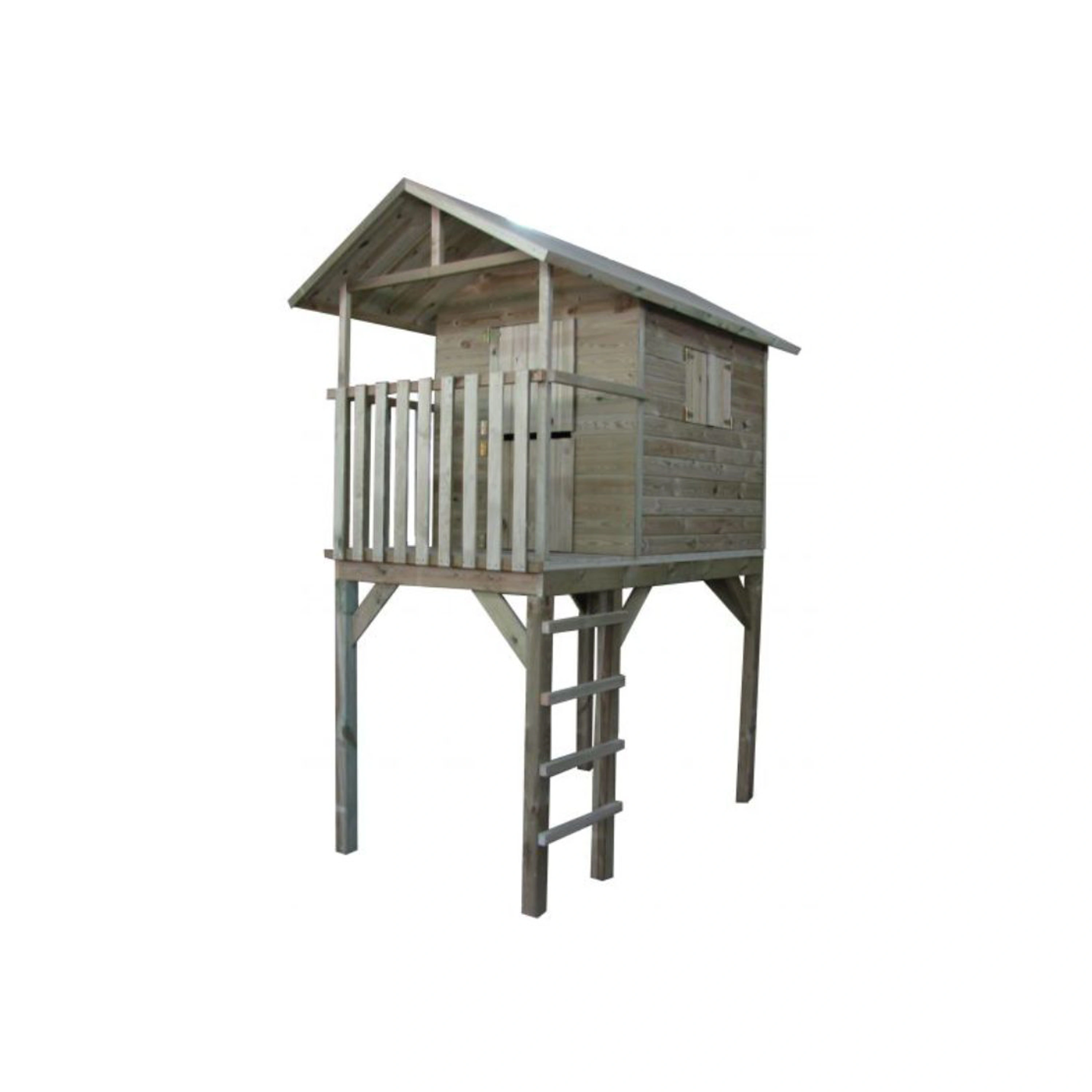 Dětský dřevěný domeček "Vyhlídka" na vyvýšené podestě s krytou verandou a včetně žebříku.