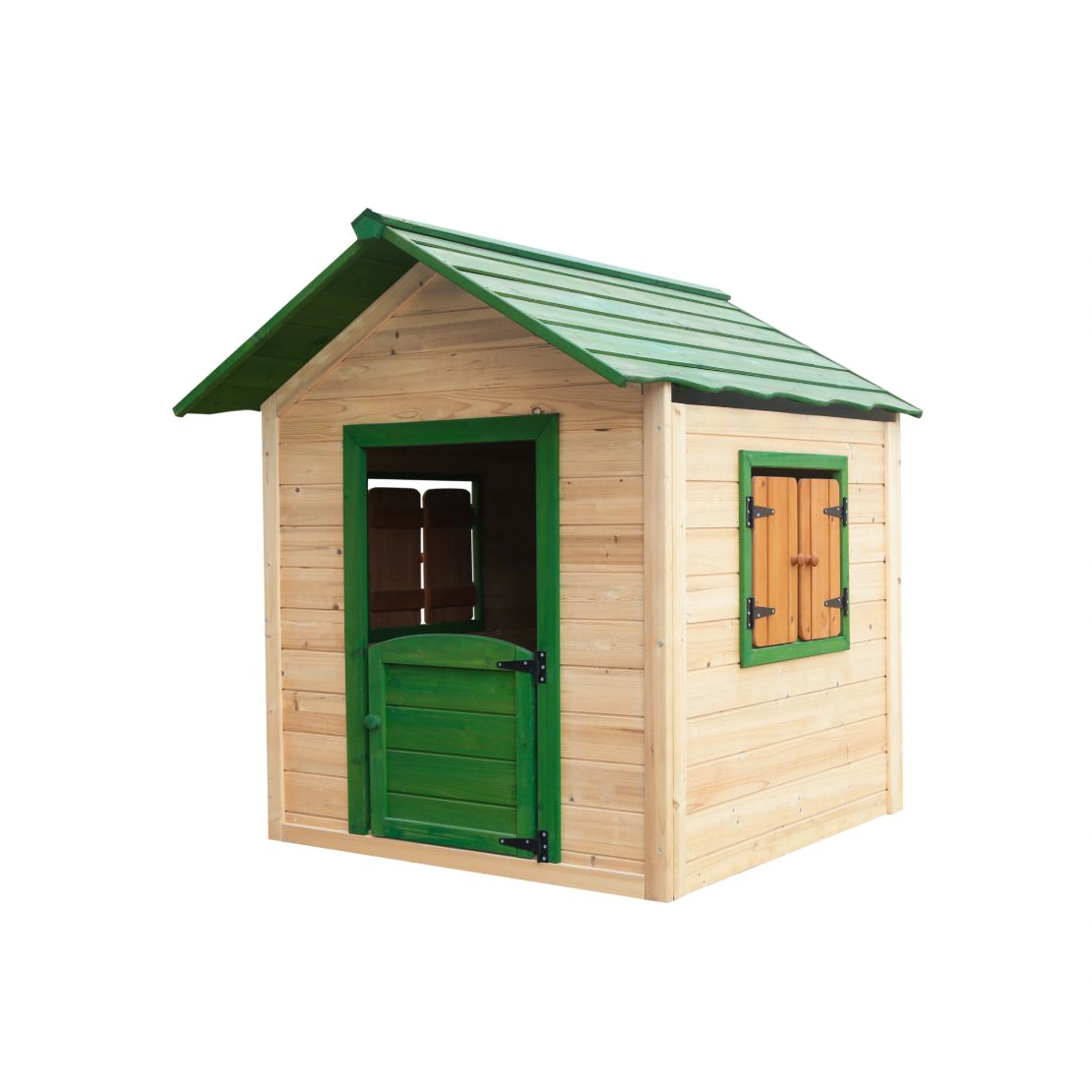 Domeček neobsahuje podlahu. Okolo dveří je bezpečnostní mezera proti skřípnutí prstů. Dům Stáj má dřevěnou střechu, otevíratelné okenice a poloviční dveře.