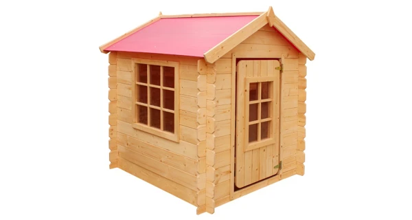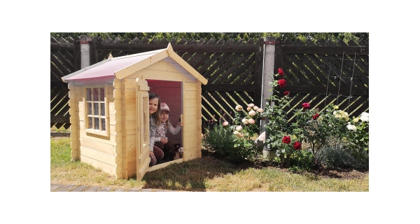 Dětský dřevěný domeček s plastovou střechou pro spoustu bezpečné zábavy na zahradě.
