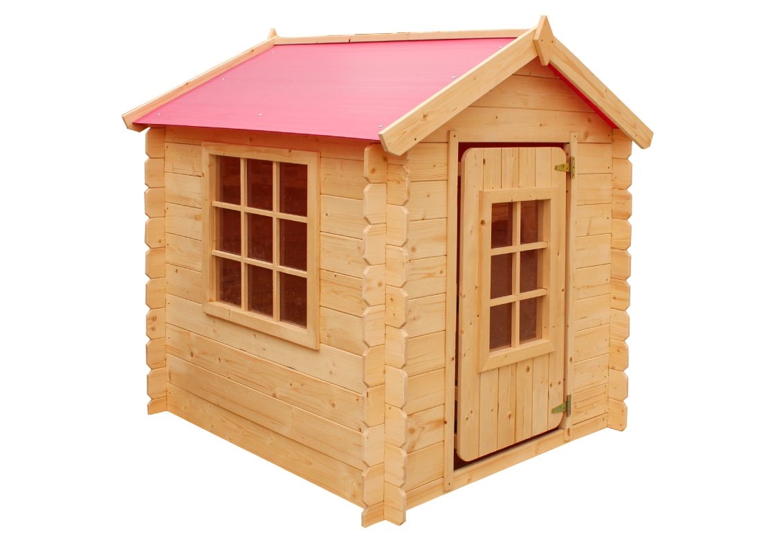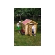 Dětský dřevěný domeček s plastovou střechou pro spoustu bezpečné zábavy na zahradě.