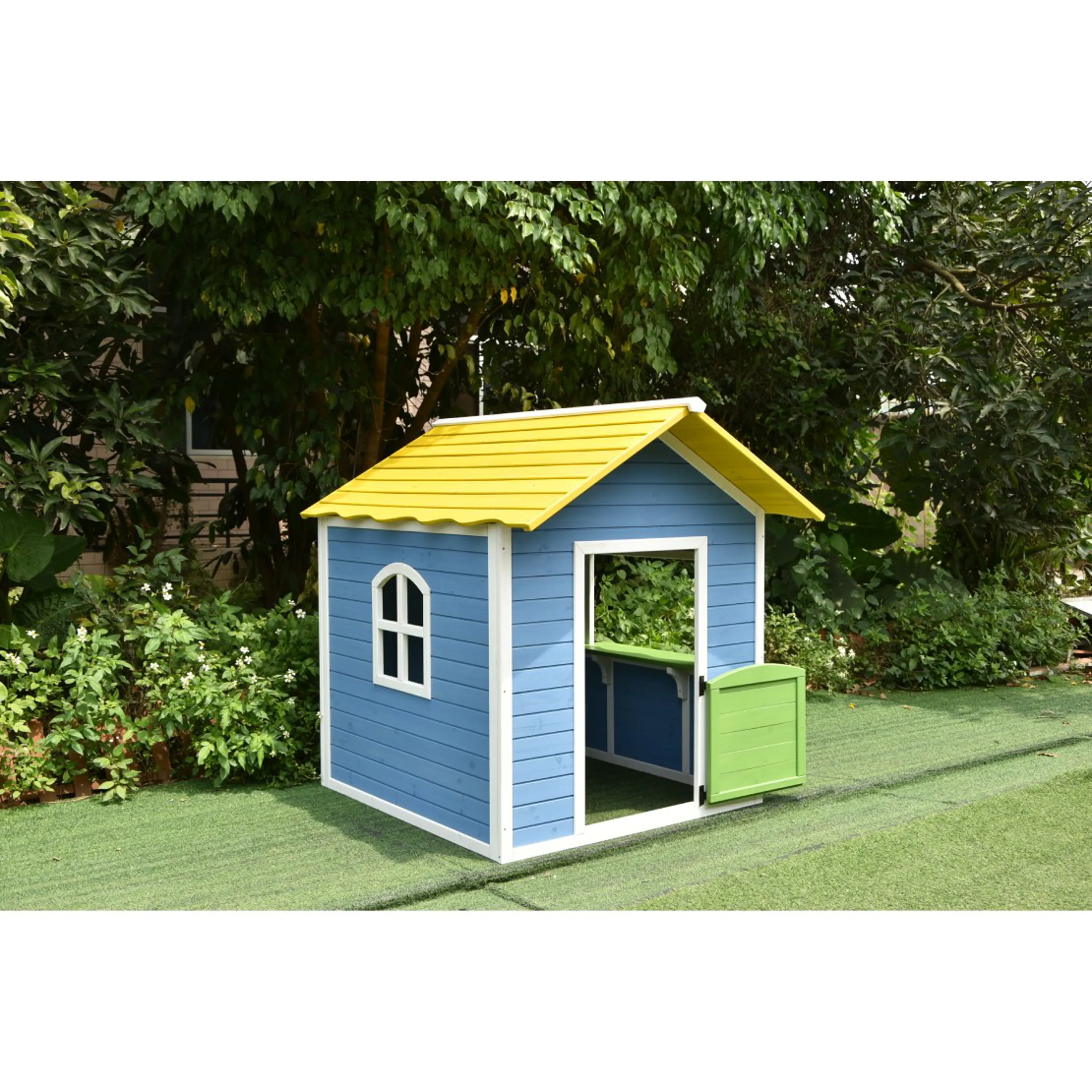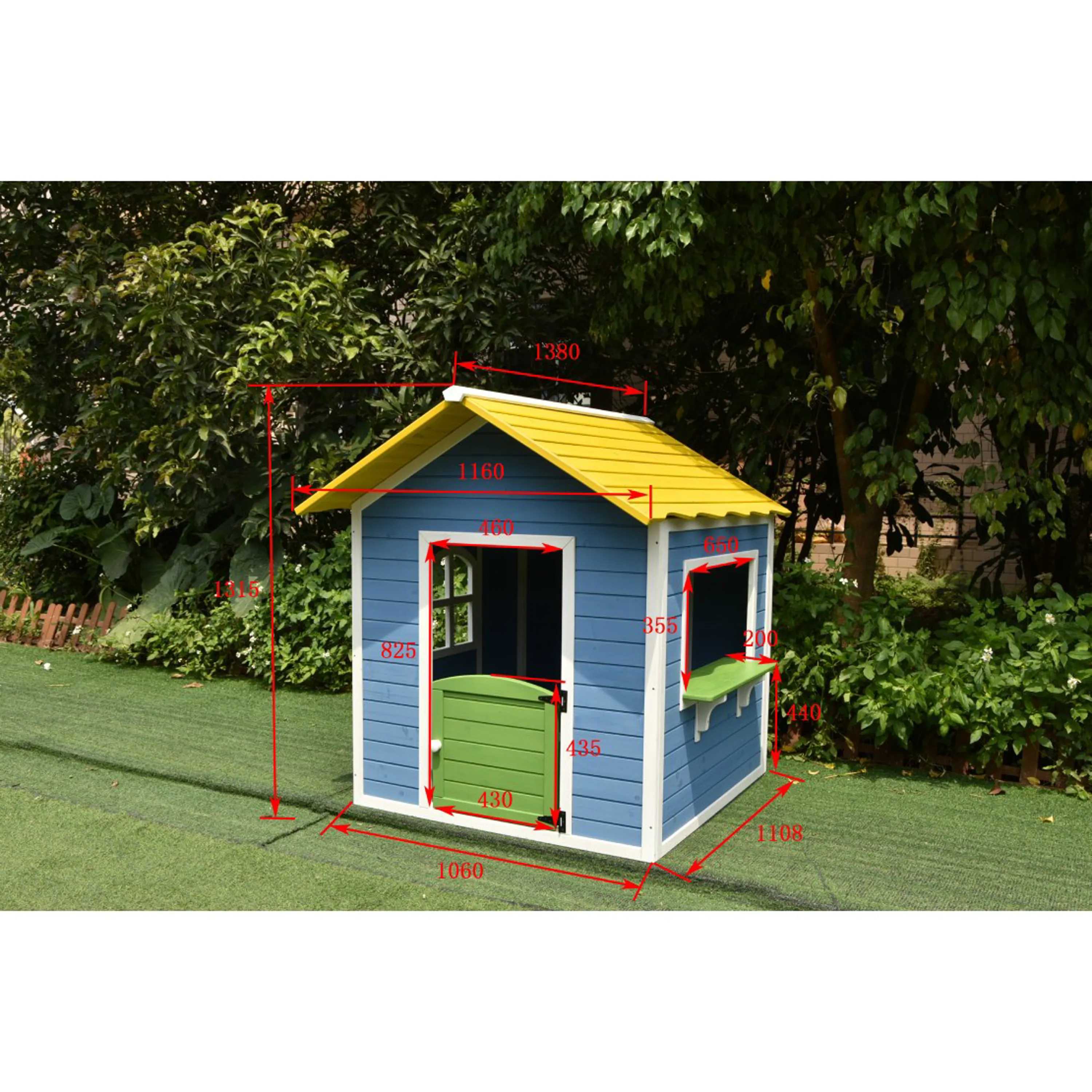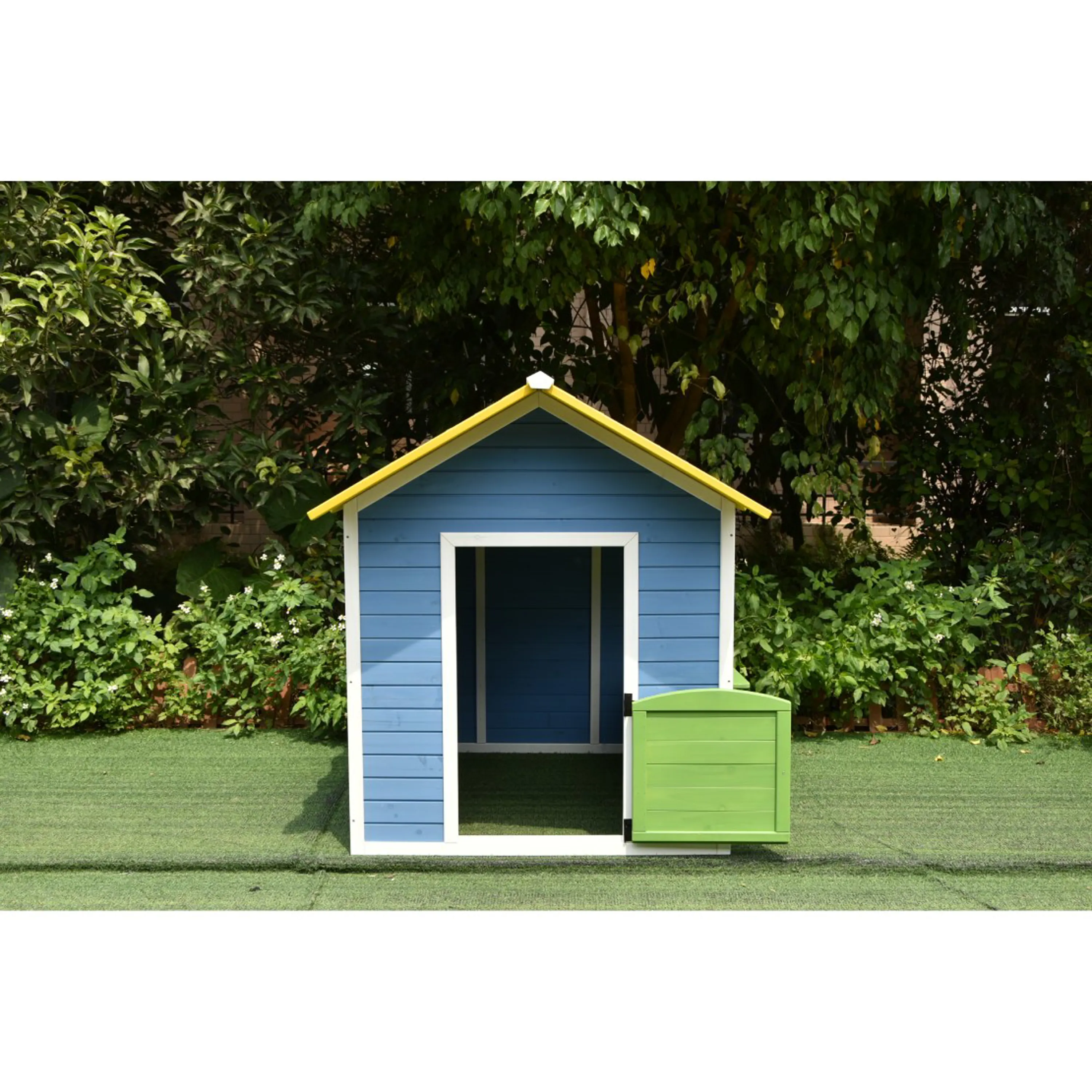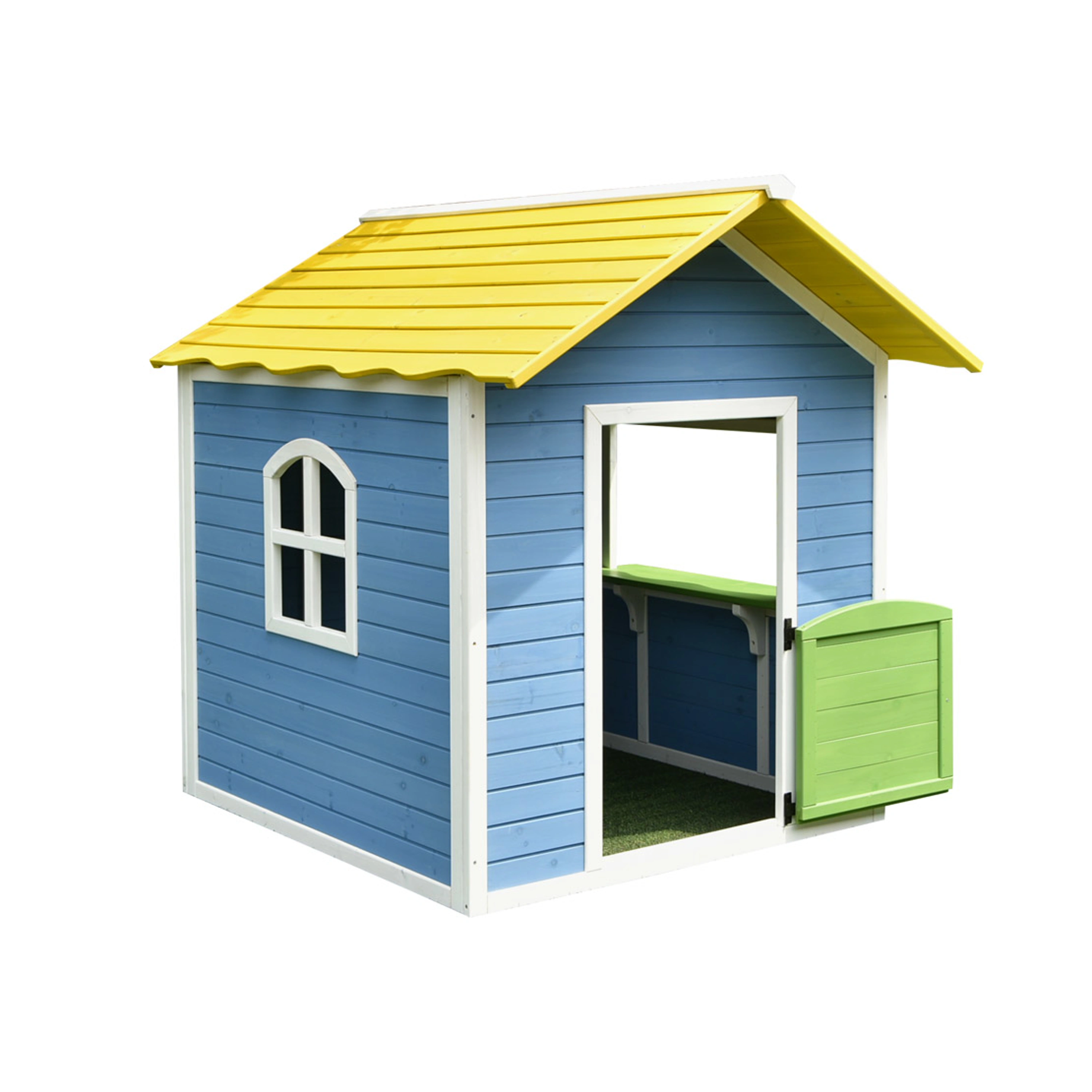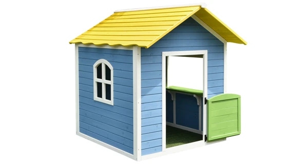 Dřevěný domeček s dveřmi a velkým oknem s parapetem. Domeček je z kvalitního jedlového dřeva. Obsahuje poloviční dveře s bezpečnostní mezerou a výdejní okénko s parapetem. Ve výbavě není podlaha.