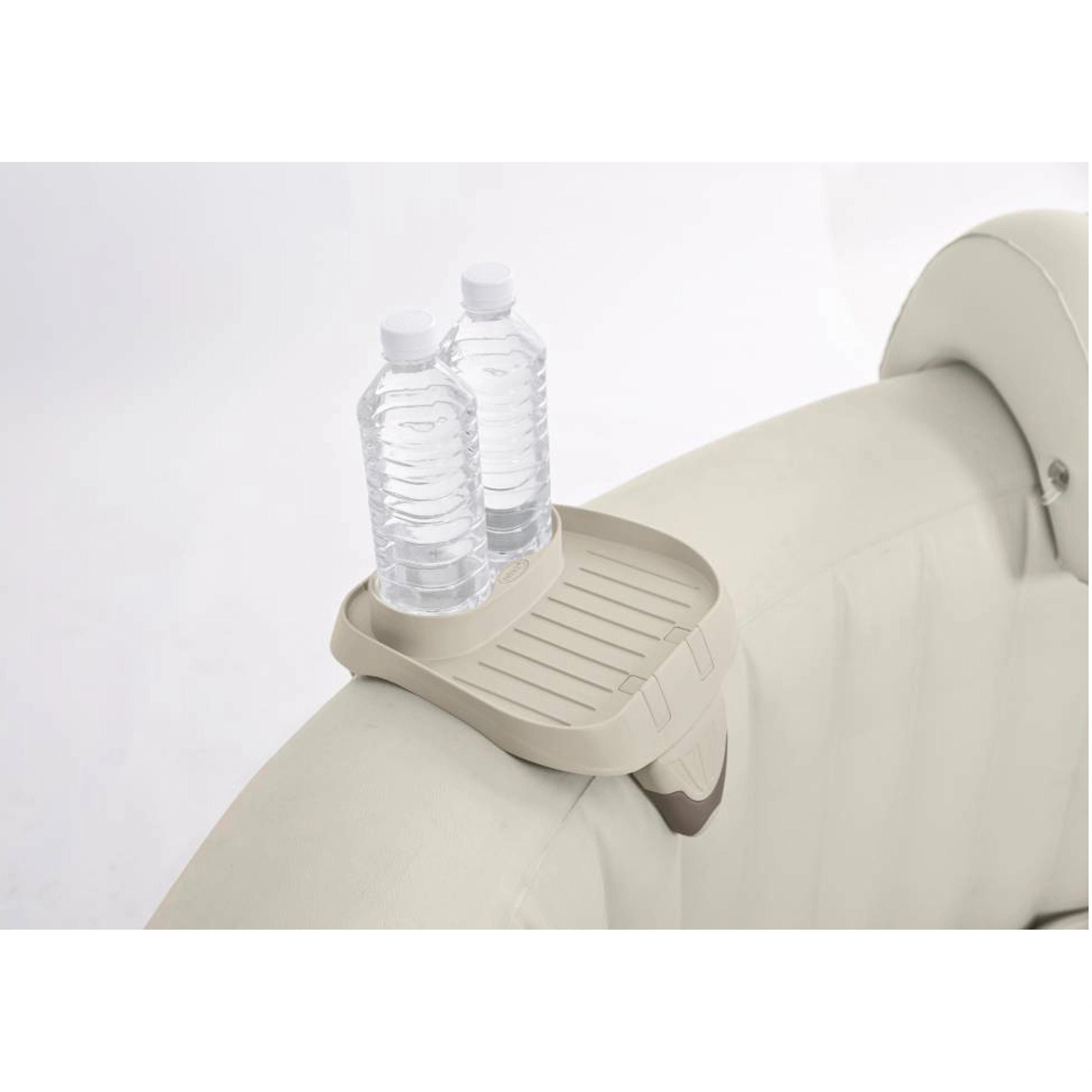 Praktický držák nápojů, který slouží k odkládání drobností nebo malého občerstvení a má dva otvory na lahve. Držák je určen pro pro nafukovací vířivky Intex Pure Spa. Hodí pro všechny nafukovací vířivky s tloušťkou stěny mezi 20-24 cm.