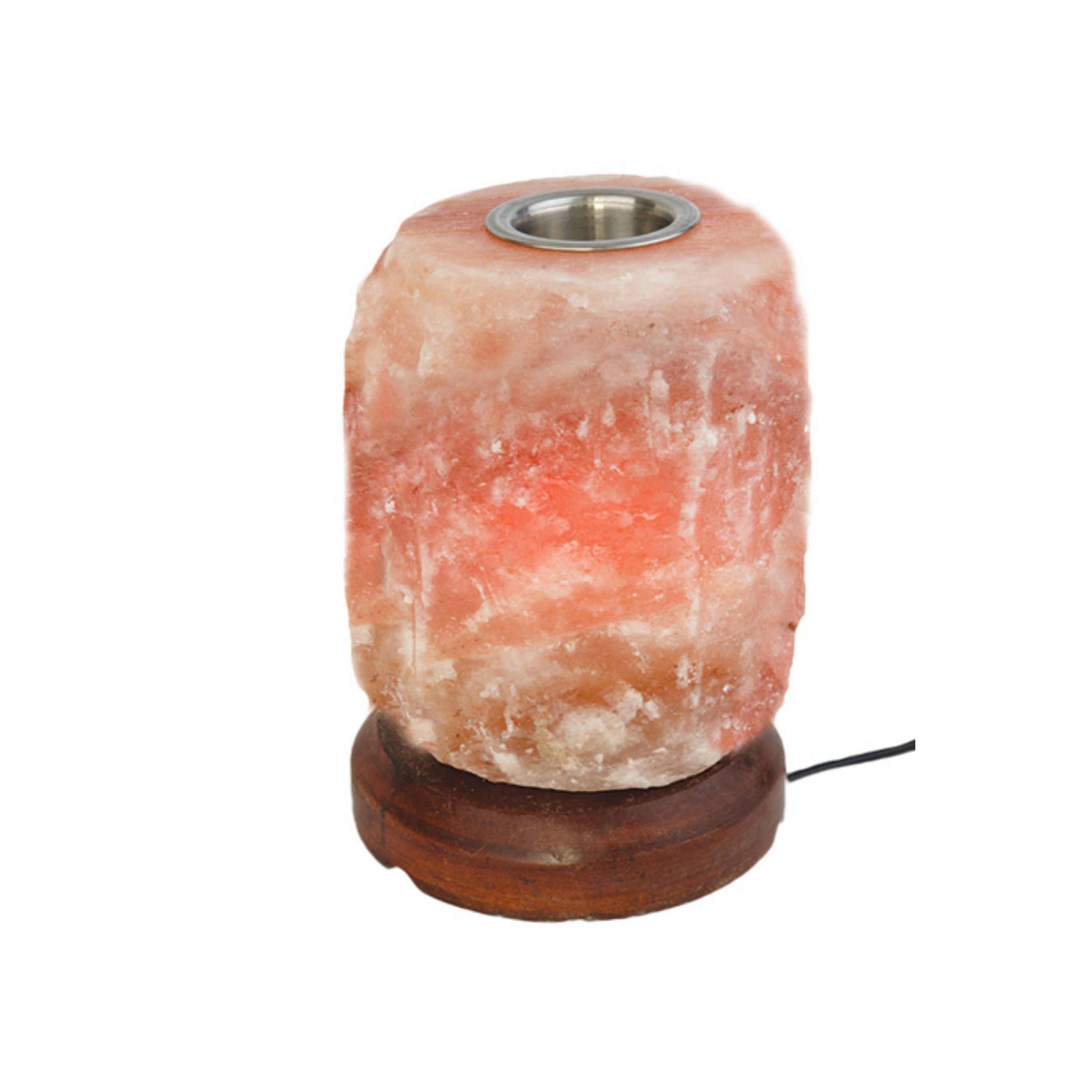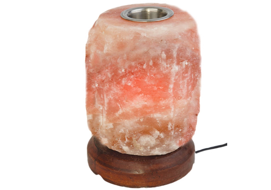 Solná aroma lampa z podhůří Himaláje na dřevěném podstavci, doplněná nerezovou miskou pro aplikaci vonných olejů k umocnění relaxačního prožitku. Ionizuje vzduch, odbourává elektromagnetické záření vydávané elektropřístroji. Navozuje příjemnou a relaxační atmosféru.