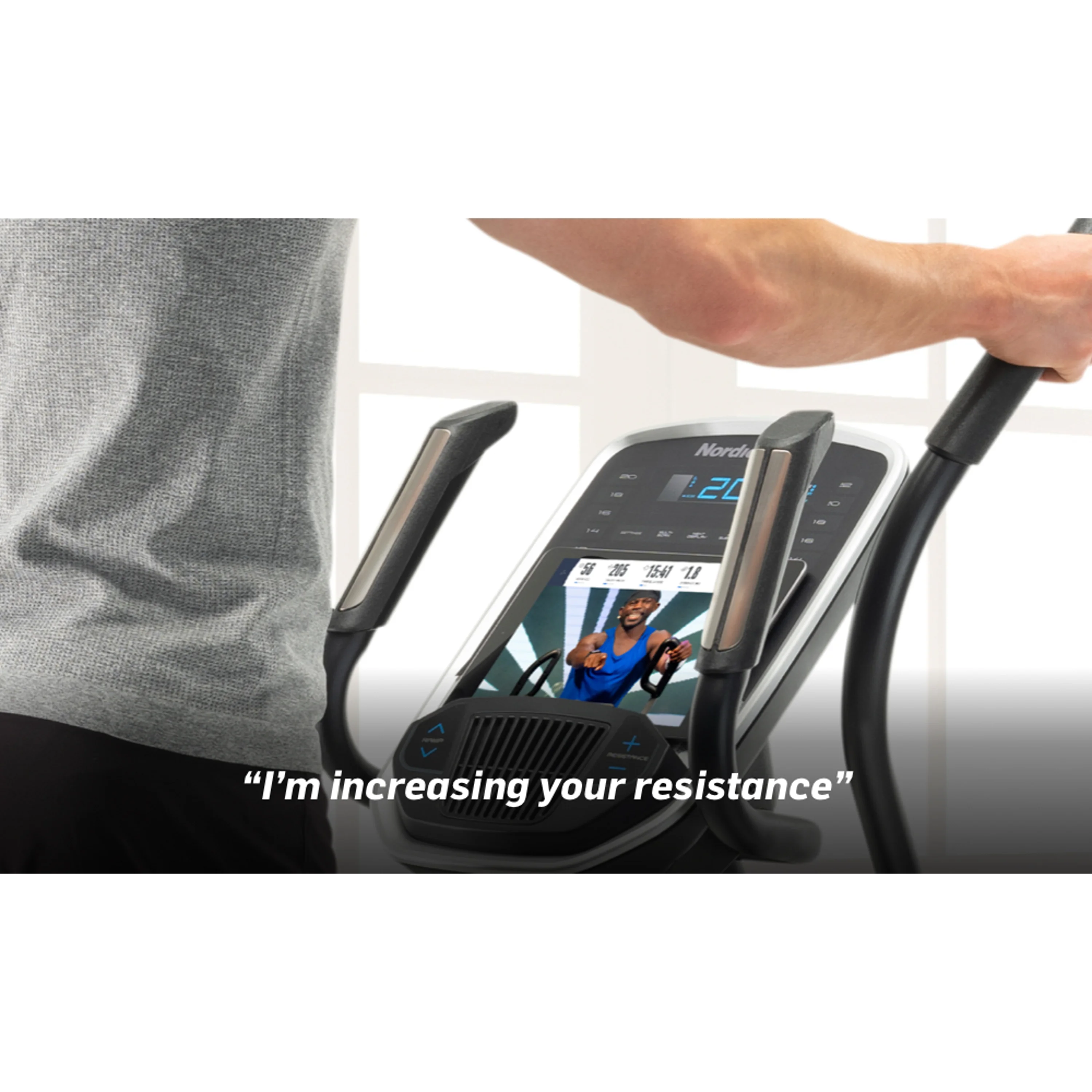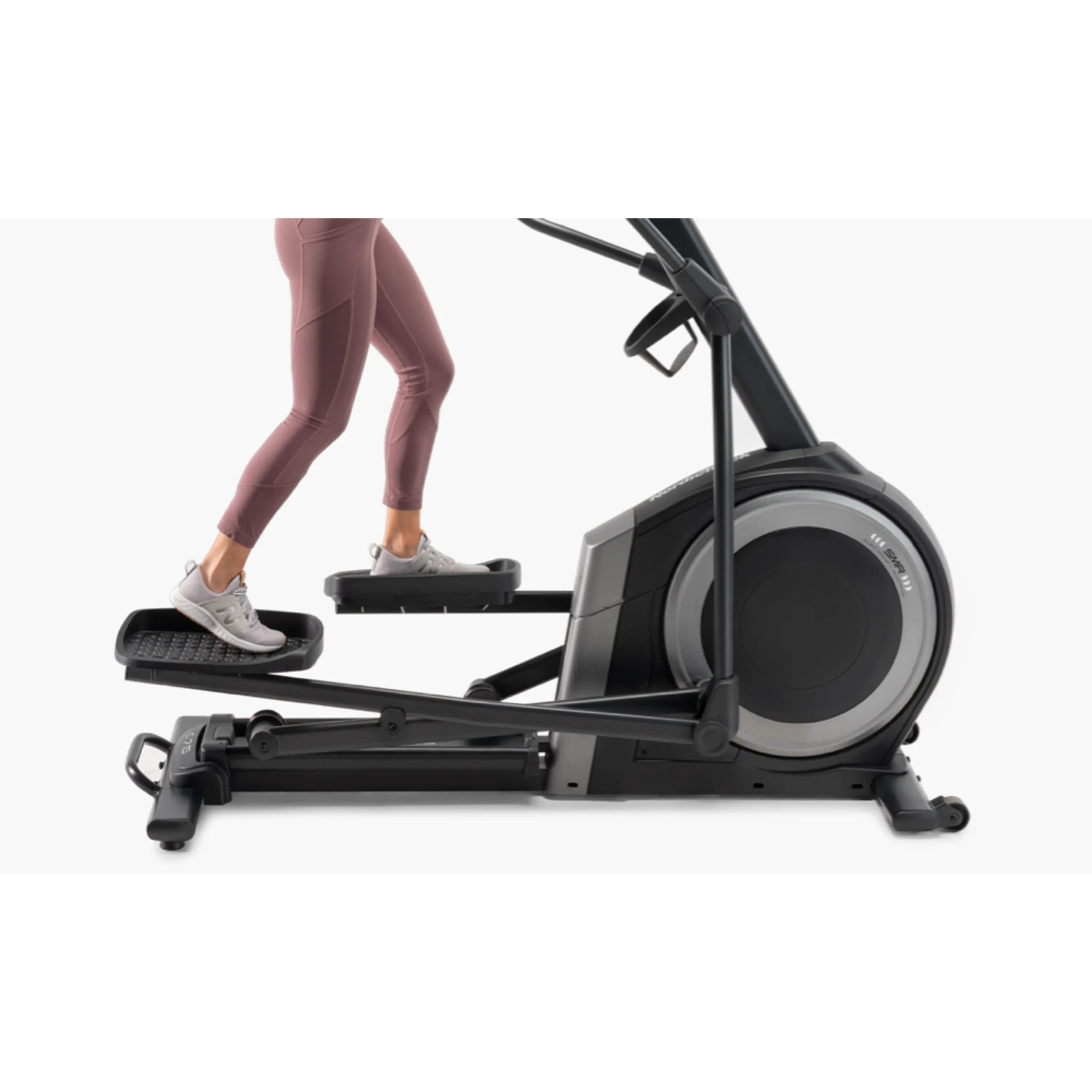 Eliptický trenažér NORDICTRACK C7.5 má elektronicky ovládanou magnetickou brzdu SM Resistance, zátěž se nastavuje elektronicky v rozsahu 1-22. Nastavitelný sklon lze manuálně regulovat v 5 pozicích. Oproti klasickým eliptickým trenažérům se setrvačníkem v přední části má značně menší nároky na prostor, výhodou je délka kroku a rozteč.