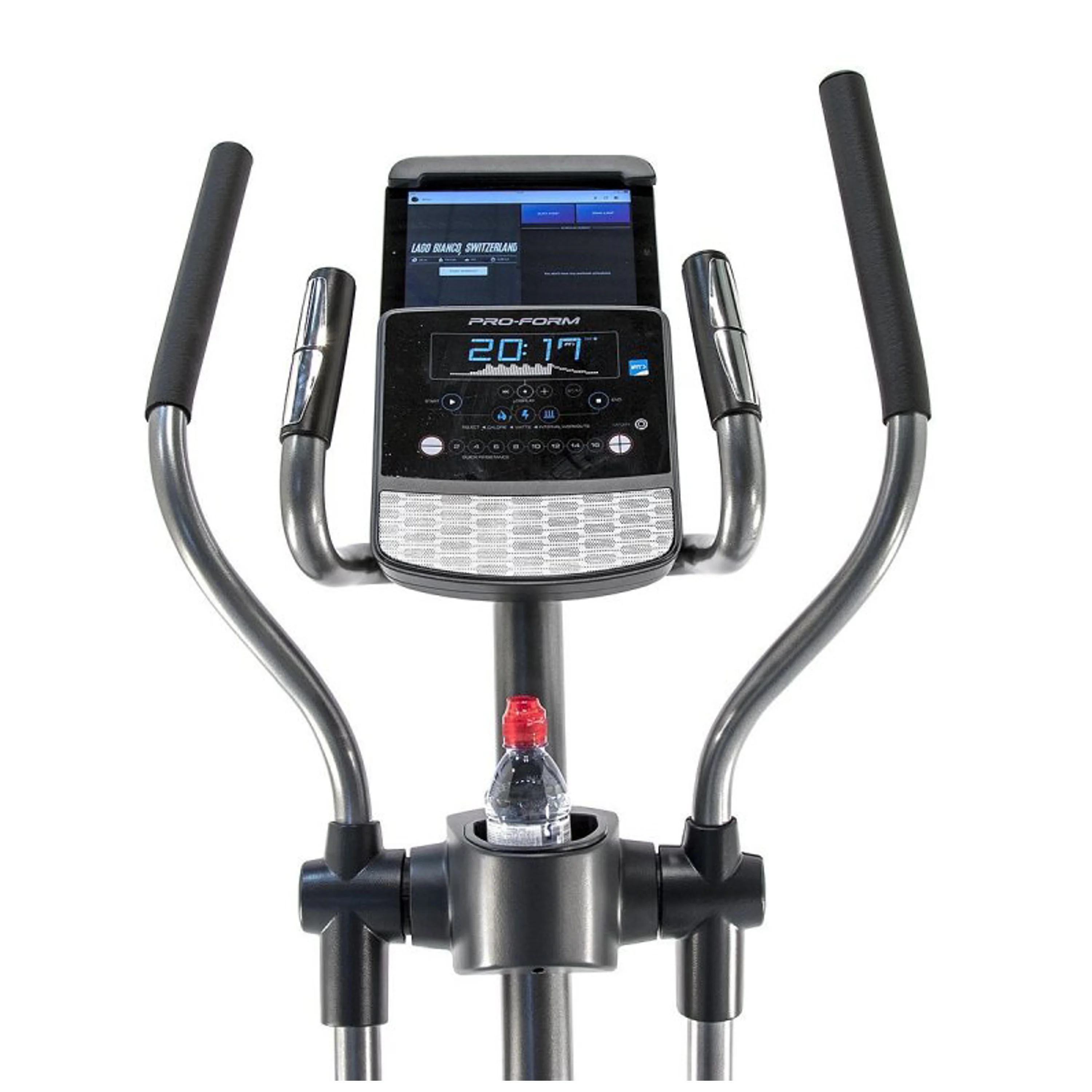 PRO-FORM eliptický trenažér 525 CSE+ nabídne svému majiteli kardiovaskulární a vytrvalostní trénink společně se silovým tréninkem v jednom stroji. Pomůže s hubnutím i kondičním tréninkem. Bez ohledu na počasí můžete trénovat v teple domova. Zapojením dolní a horní poloviny těla máte o komplexní trénink postaráno. Eliptikaly se vyznačují tím, že nezatěžují kloubní aparát. Cvičit tak můžete bez obav o kolena a kyčle. Intenzitu tréninku ovládáte elektronicky ve 20 stupních odporu, který je tvořen magnetickým brzdným systémem. Hmotnost setrvačníku je 14 kg, veškeré kloubní spoje jsou osazeny ložisky. Trenažer bude vhodný pro drobné i vyšší postavy. Nosnost stroje je 125 kg.