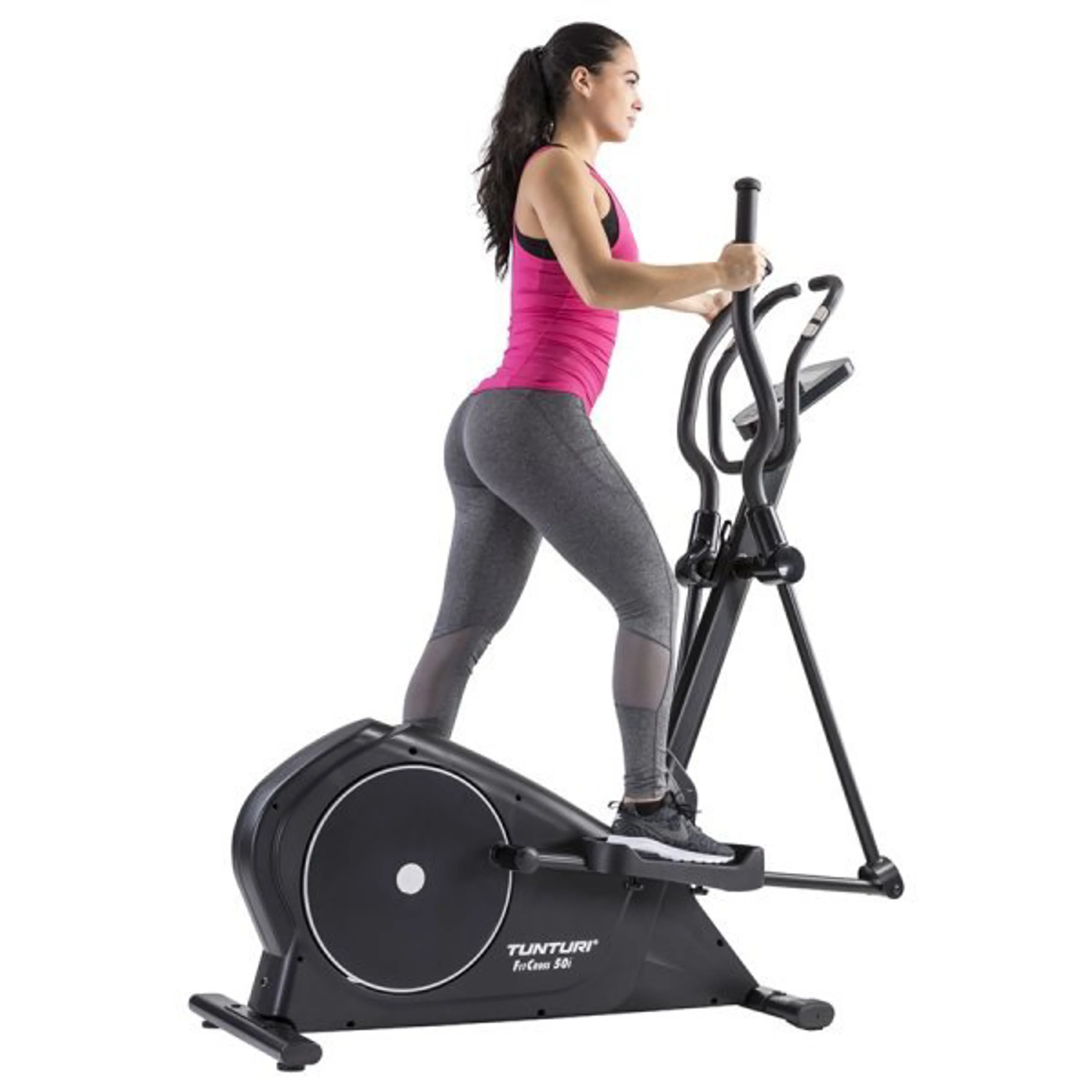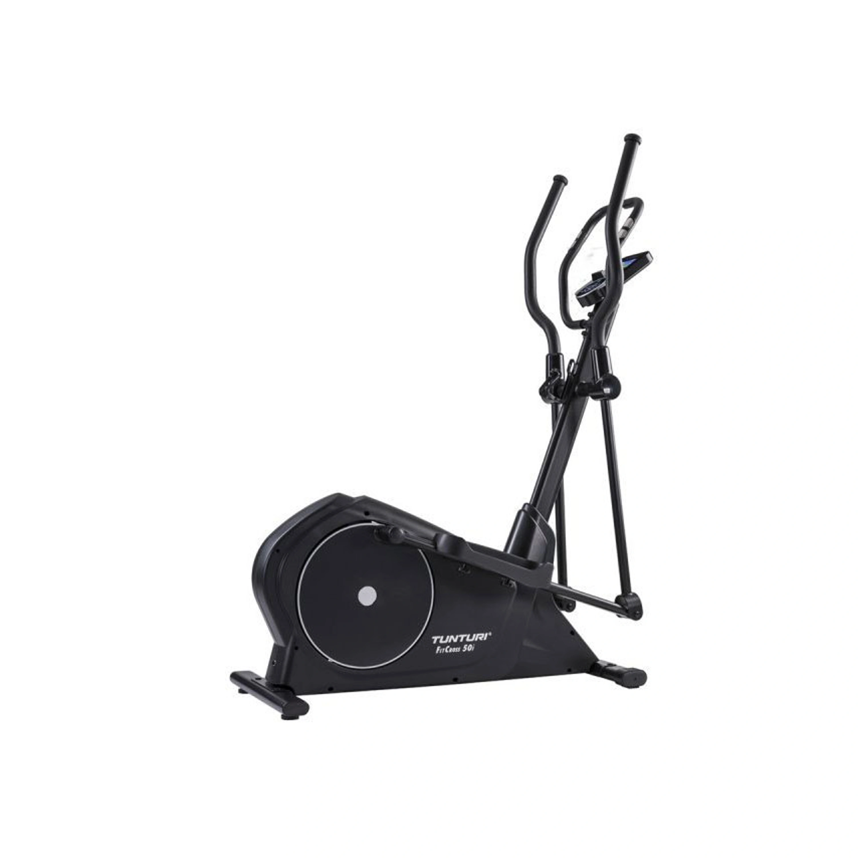 TUNTURI FitCross 50i patří mezi tzv. eliptické trenažéry se setrvačníkem v zadní části stroje. Kombinuje kvalitní mechaniku a ergonomii rámu s nosností do 150 kg. Právě díky důmyslné ergonomii trenažéru a dobré mechanice je zaručen pohodlný a správný pohyb při tréninku. Masivní konstrukce spolu s kvalitními komponenty prodlužuje životnost stroje i při využití těžšími osobami a je bezproblémový i při pravidelném domácím tréninku. Setrvačníková hmota s kalibrovaným setrvačníkem o hmotnosti 14 kg, plochý řemen s dopínací kladkou a moderní magnetická brzda zaručuje u TUNTURI FitCross 50i komfortní, plynulý a zcela tichý chod i při větších zátěžích při tréninku.
