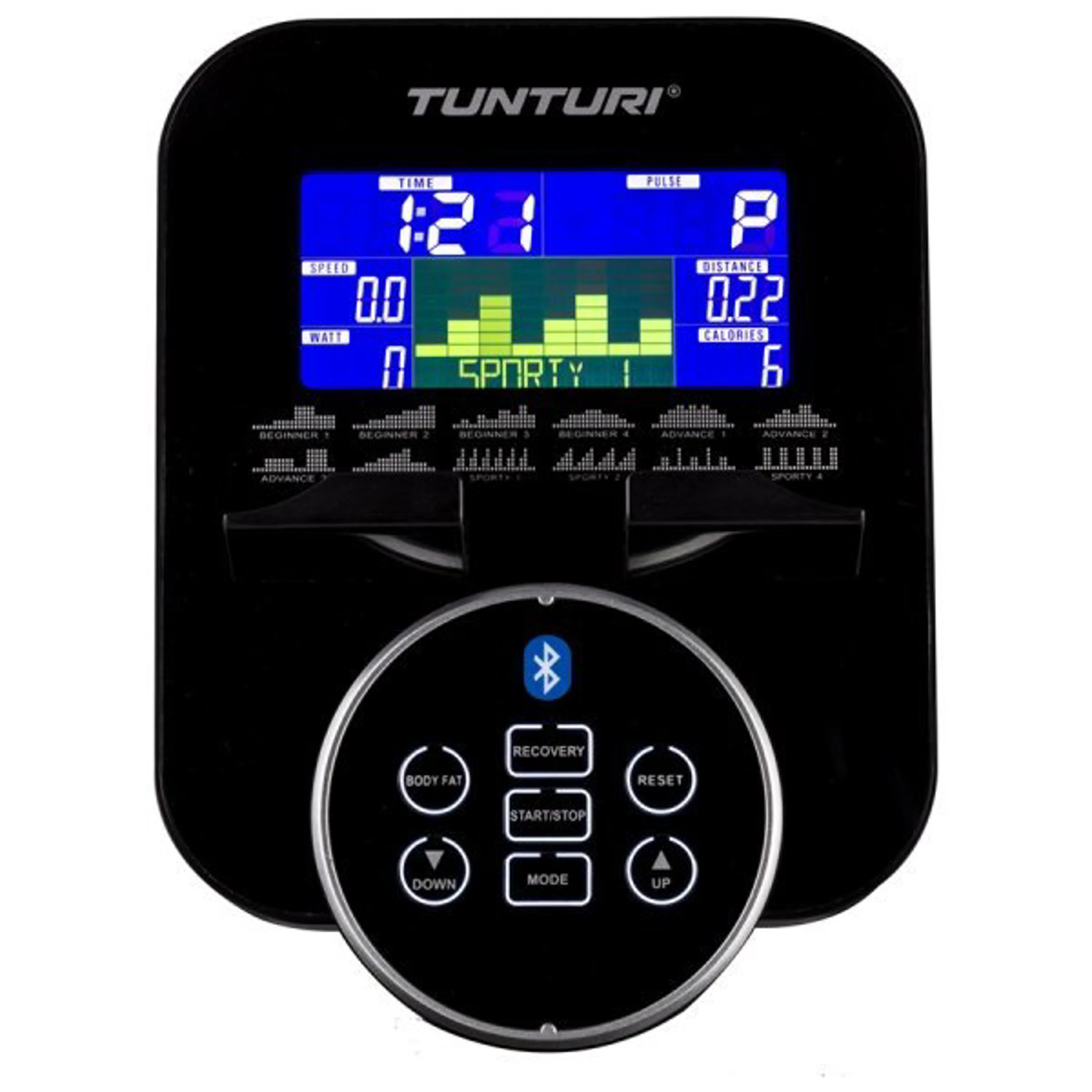 Trenažér disponuje barevně podsvíceným LCD monitorem, který vyobrazuje základní hodnoty jako: čas, vzdálenost, tepovou frekvenci apod. Součástí je 20 přednastavených programů pro zlepšení kondice a spalování tuků.
