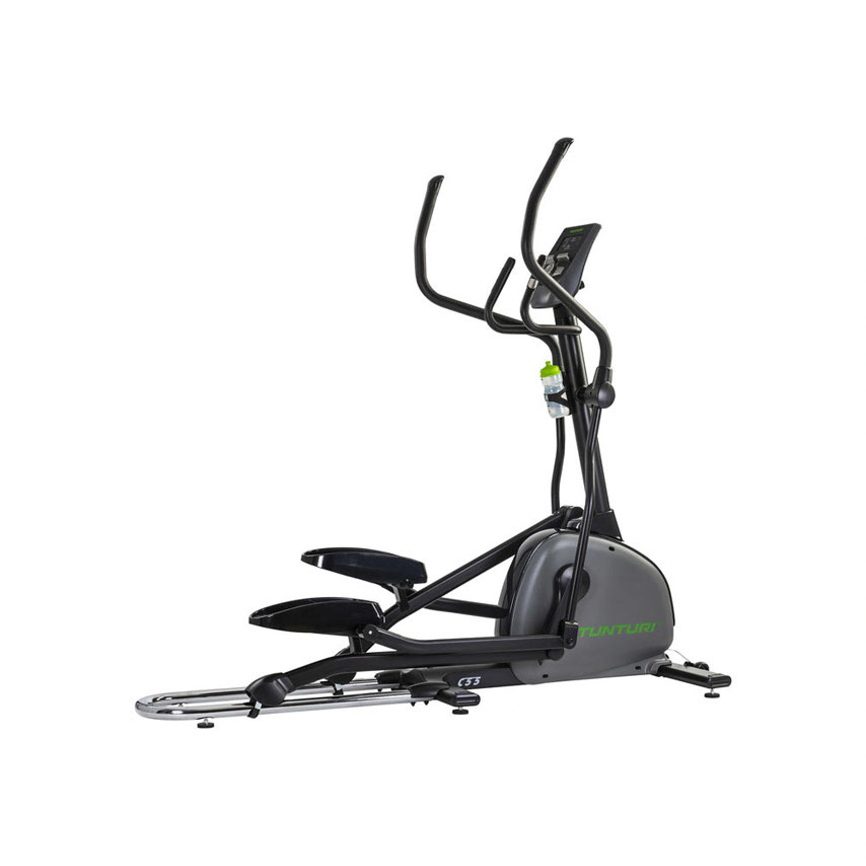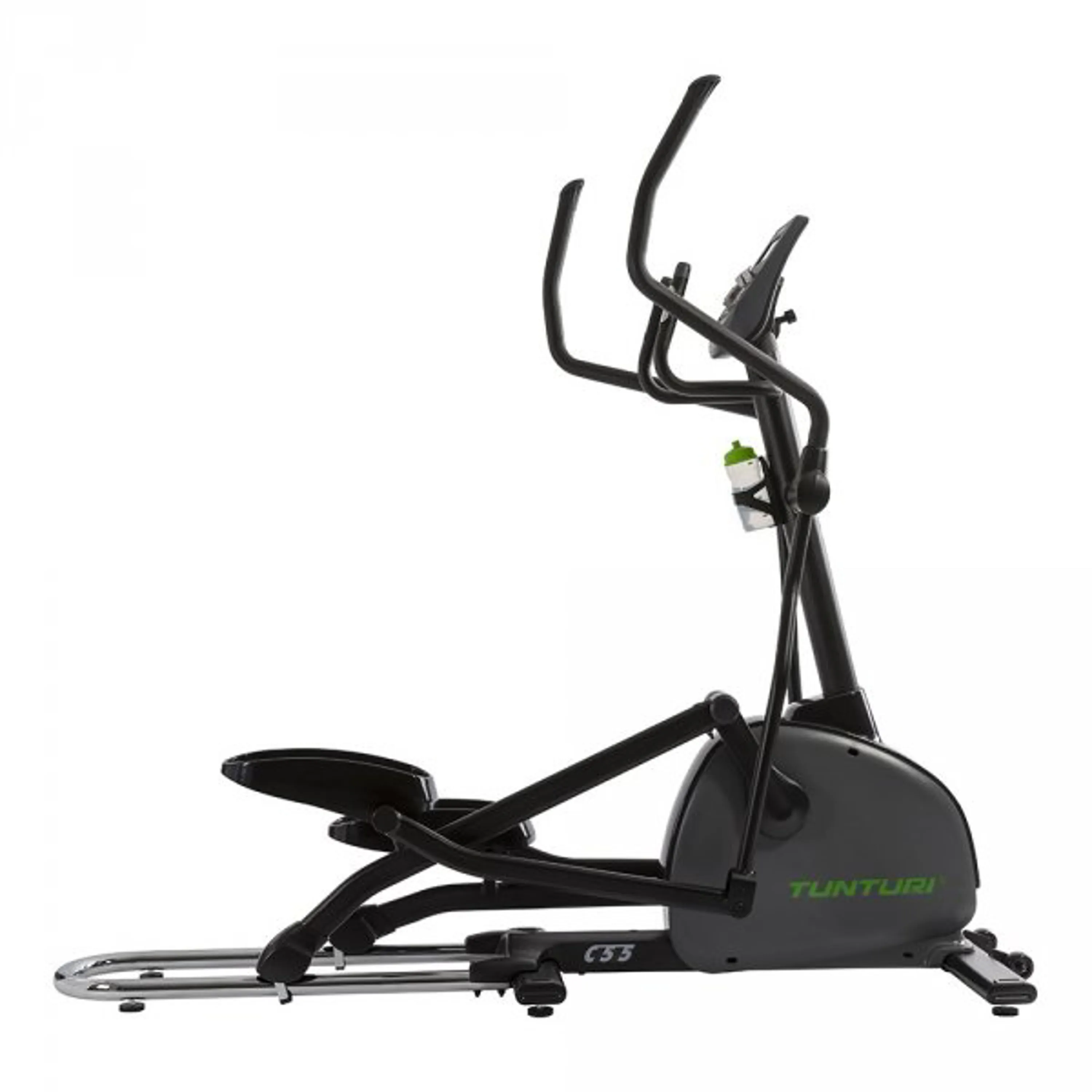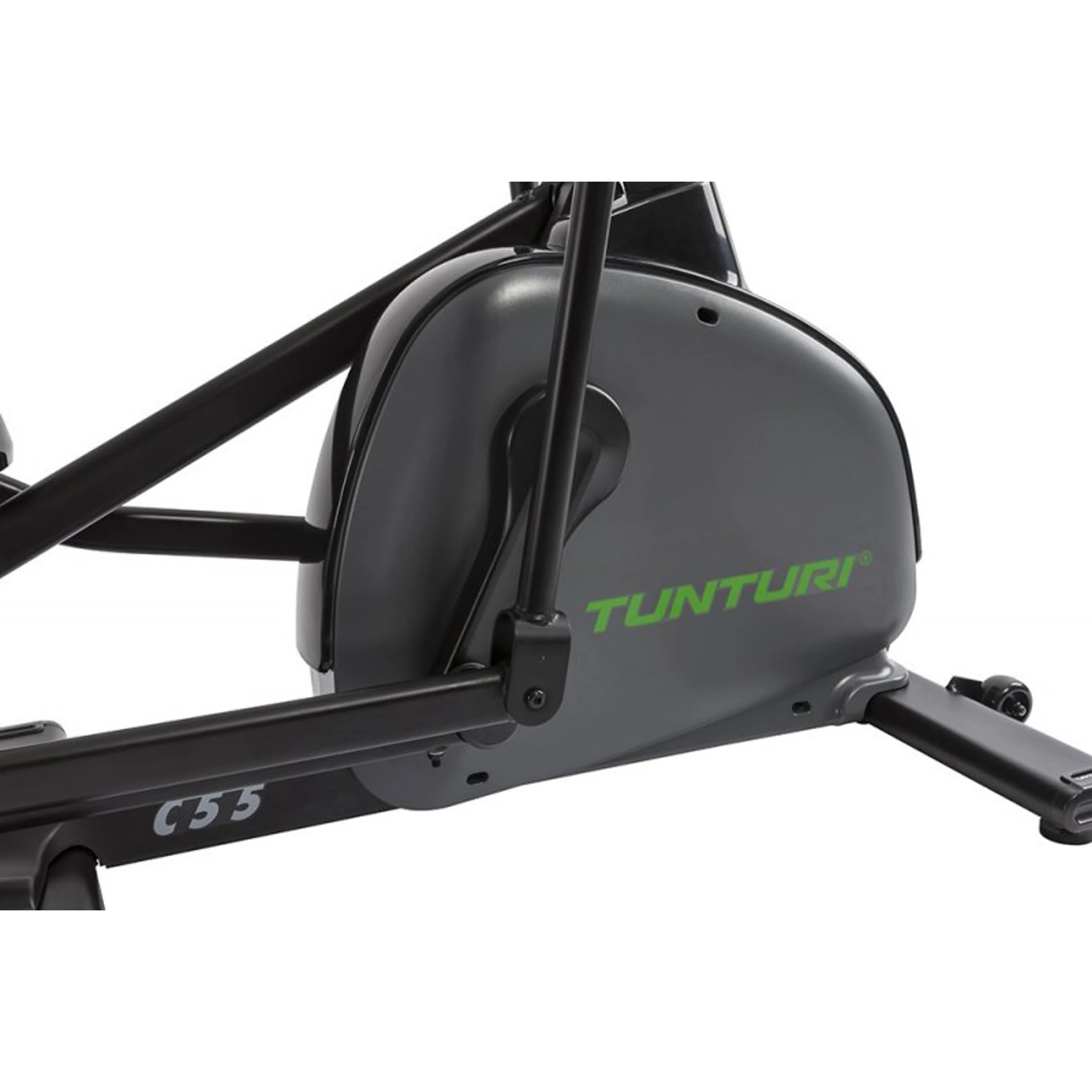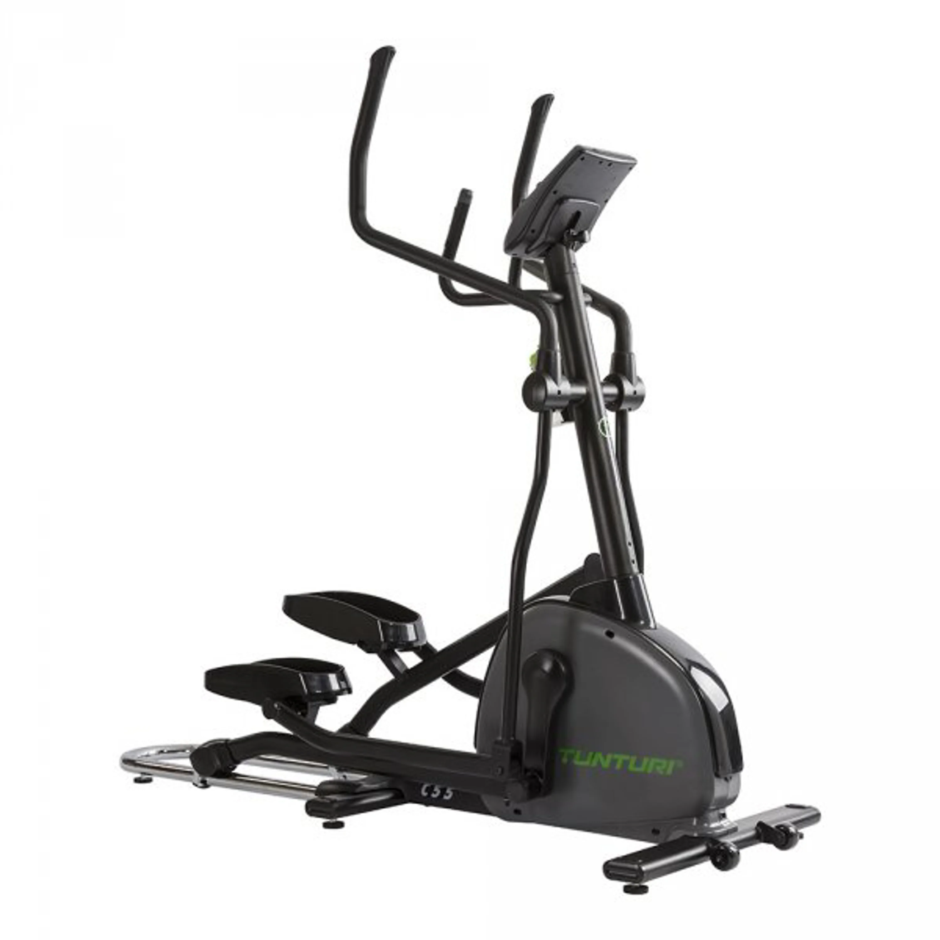 Eliptický trenažér TUNTURI Performance C55 F se setrvačníkem v přední části stroje nabízí zákazníkům kombinaci kvalitní mechaniky a ergonomie rámu s nosností až do 135 kg. Stroj disponuje standardně dlouhým krokem o délce 50 cm a díky optimální ergonomii je zaručen pohodlný a správný pohyb jak drobným, tak vyšším postavám. Stabilní a masivní konstrukce spolu s kvalitními komponenty zaručuje dlouhou životnost stroje a předurčuje model pro pravidelný trénink.