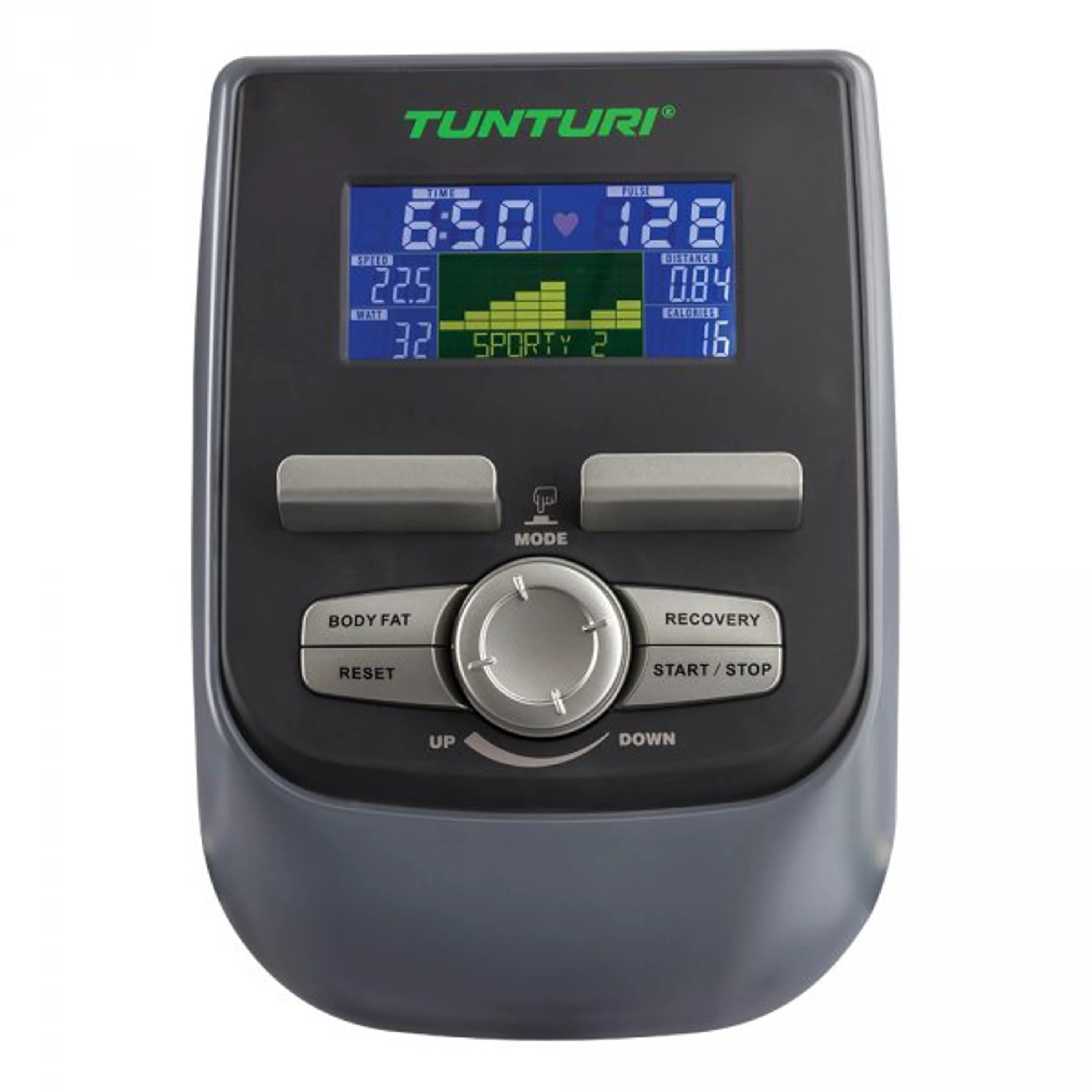 Crossový trenažér nabízí přehledný a snadno ovladatelný počítač s podsvíceným 5,5" LCD displejem s držákem na tablet. Displej zobrazuje všechny běžné hodnoty jako je čas, rychlost šlapání, ujetá vzdálenost, spálené kalorie a hodnotu tepové frekvence (pomocí dlaňových snímačů nebo hrudního pásu). Programová nabídka nabízí dohromady 21 programů pro zvyšování kondice, spalování kalorií apod., včetně Recovery testu, HRC programu nebo Watt programu.