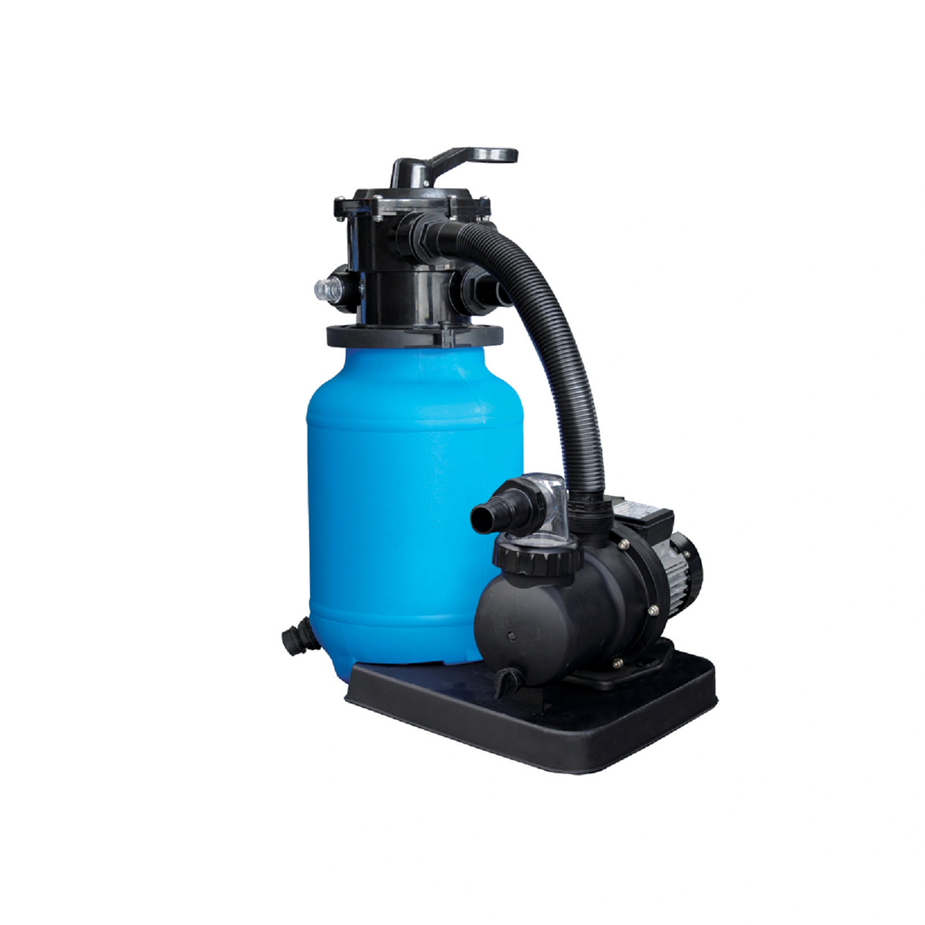 Filtrace je vybavena odvodňovacím ventilem, tlakoměrem, vestavěnými komponenty filtrační nádoby včetně snadno ovladatelného 6-ti cestného ventilu (který je zabudován do víka filtrační nádoby), motorem čerpadla o příkonu 250W, plastovou základnou pro montáž v místě instalace. Systém je vyroben z vysoce kvalitních materiálů při přísném dodržování technických norem a prochází výstupní kontrolou.