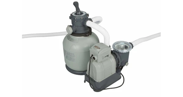 Bazénová voda je nasávána skrz filtr čerpadlem a vháněna do šesticestného ventilu a poté do vrchního prostoru nádoby. Voda je pak protlačena do spodního prostoru nádoby. Přes ventil se voda vrací zpět do bazénu. Do tohoto filtračního zařízení je potřeba 50 kg pískové náplně. Písková náplň není součástí balení