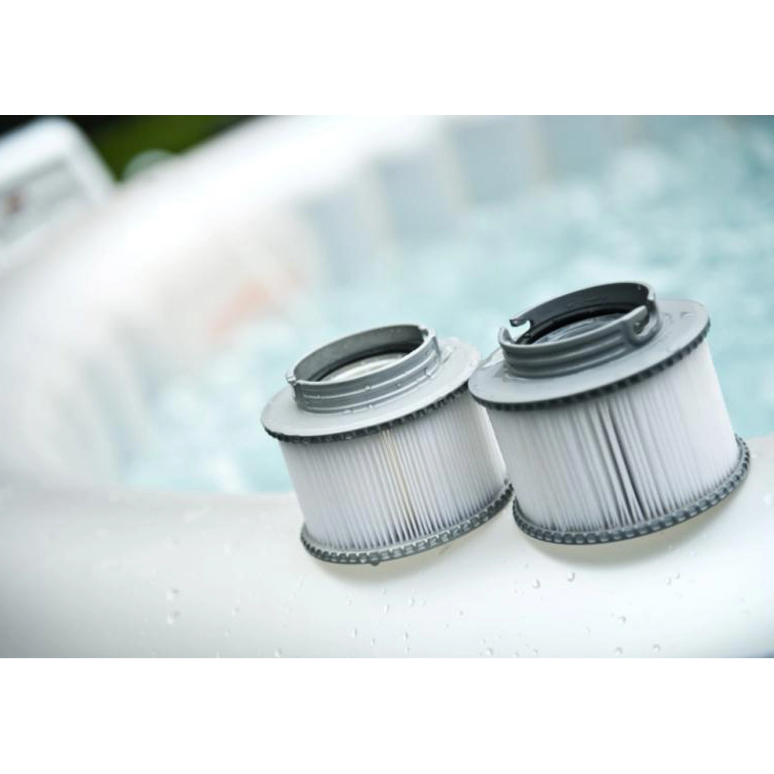 kartušových filtrací pro mobilní vířivé vany zaručuje udržení požadované čistoty a průzračnosti vody. Filtry doporučujeme čistit a měnit pravidelně. Toto dvojbalení je vhodné pro všechny modely nafukovacích vířivek řady MSpa.