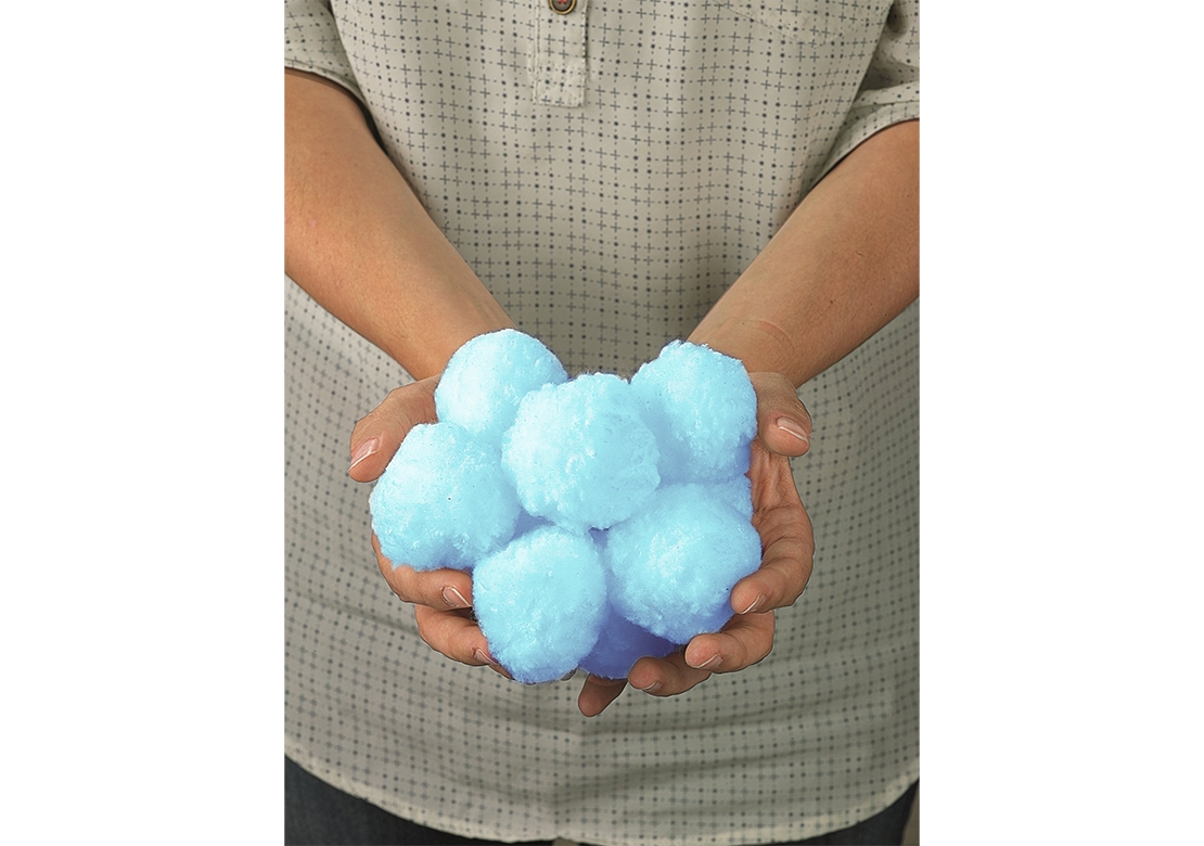 - polyetylenové modré pěnové kuličky s průměrem cca 55-60 mm