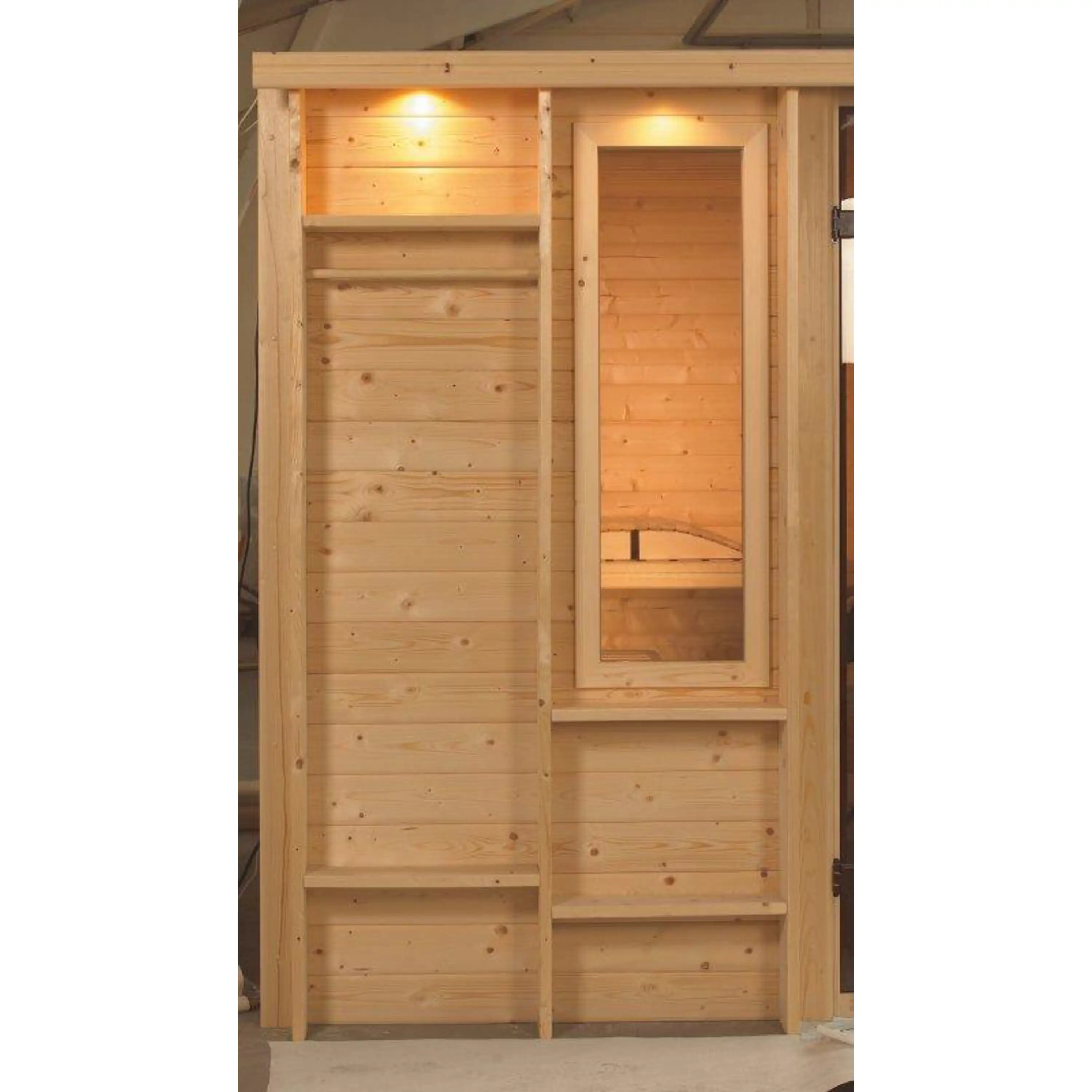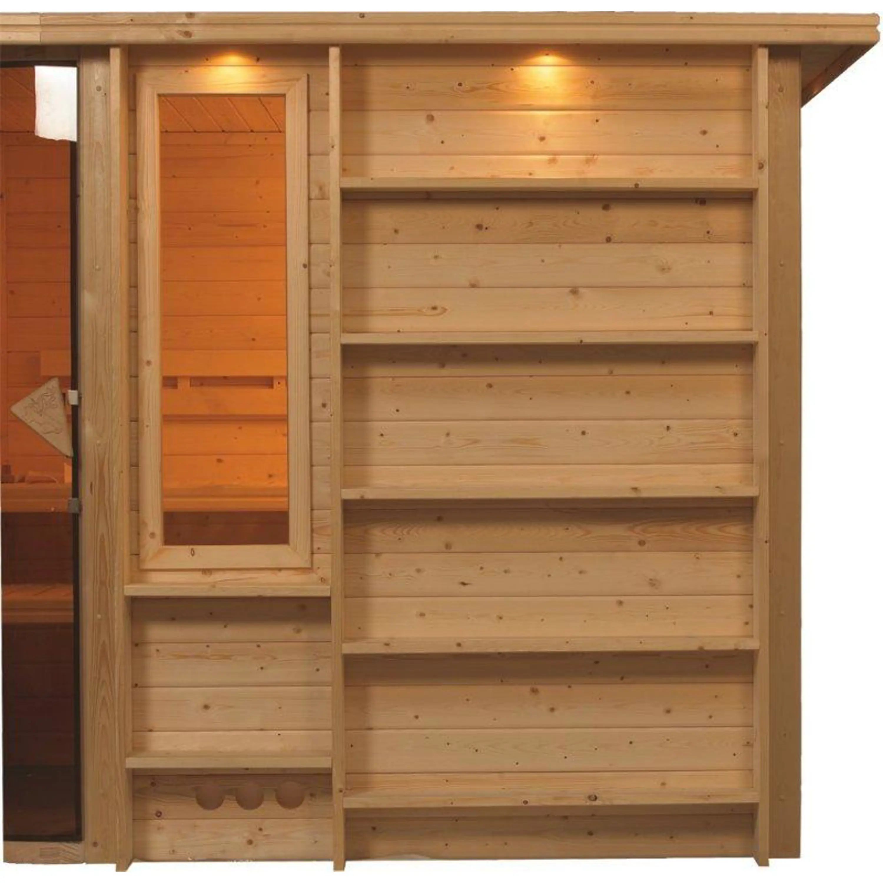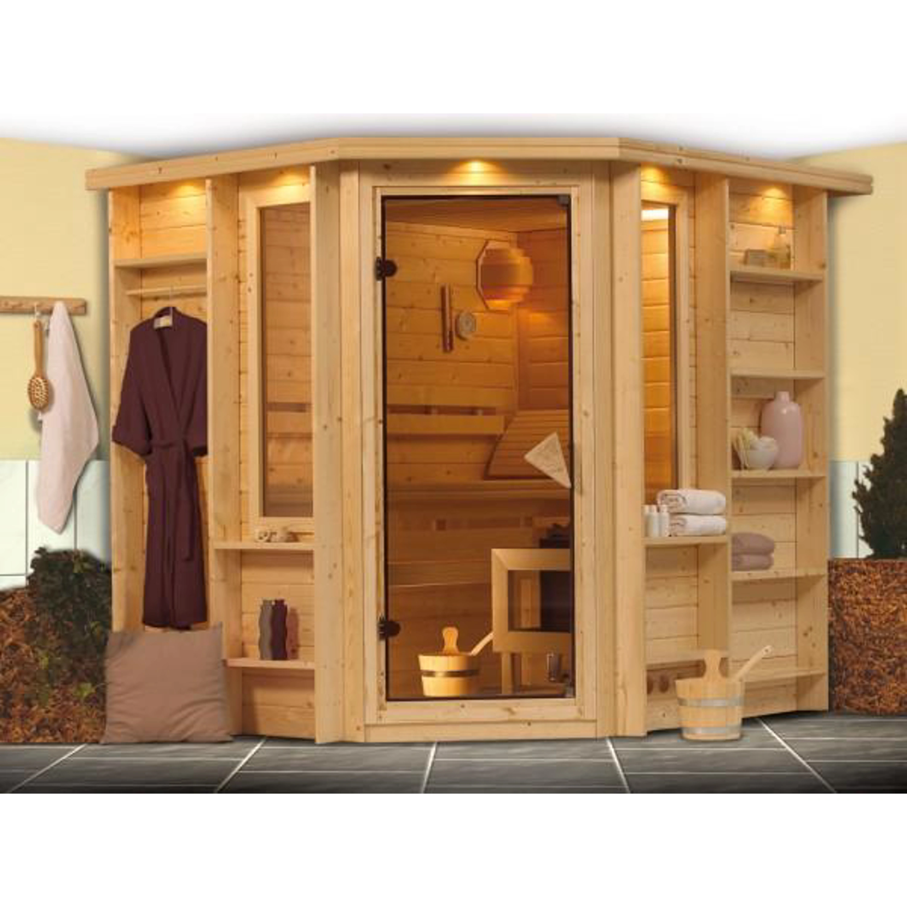 Finská sauna Karibu Cortona umožňuje naplno si vychutnat kouzlo saunování v soukromí domova. Vyniká dokonalým dílenským zpracováním a použitím mimořádně kvalitních materiálů. Cortona splní náročné požadavky na design, jednoduchou montáž i funkčnost. Sauna Cortona má obdélníkový půdorys, dovnitř se vstupuje rohovými prosklenými dveřmi. Umožňuje saunování až tří osob najednou. Součástí balení nejsou saunová kamna, je třeba je dokoupit zvlášť.