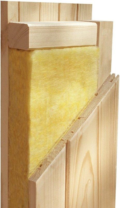 - Předpřipravené stavební prvky stěn se skládají z oboustranně svisle zpracovaného profilového dřeva, ve kterém je uložena izolační vrstva.