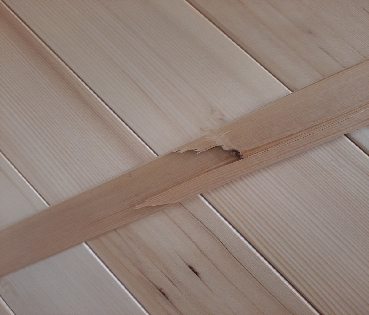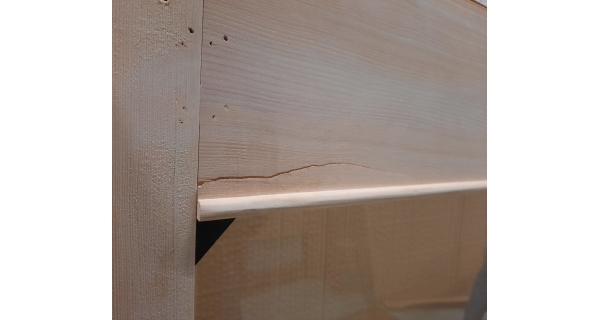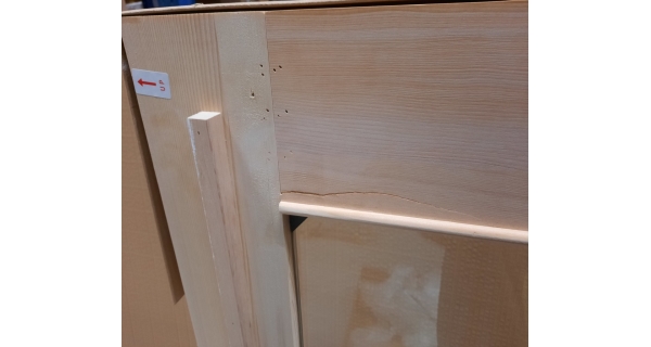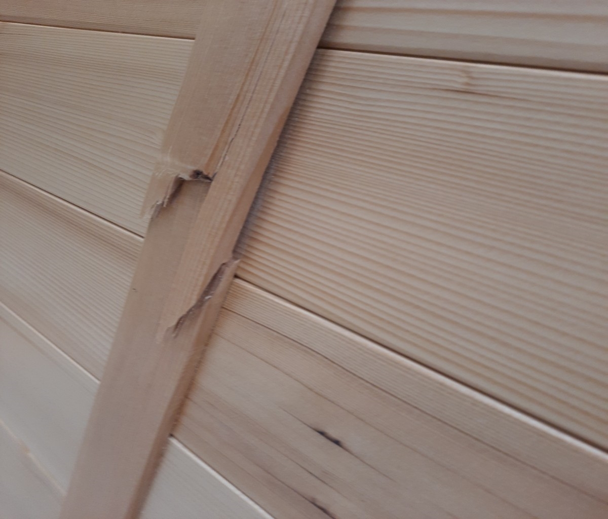 • Přední stěna - odlomená lišta + z venkovní strany promáčknuté dřevo