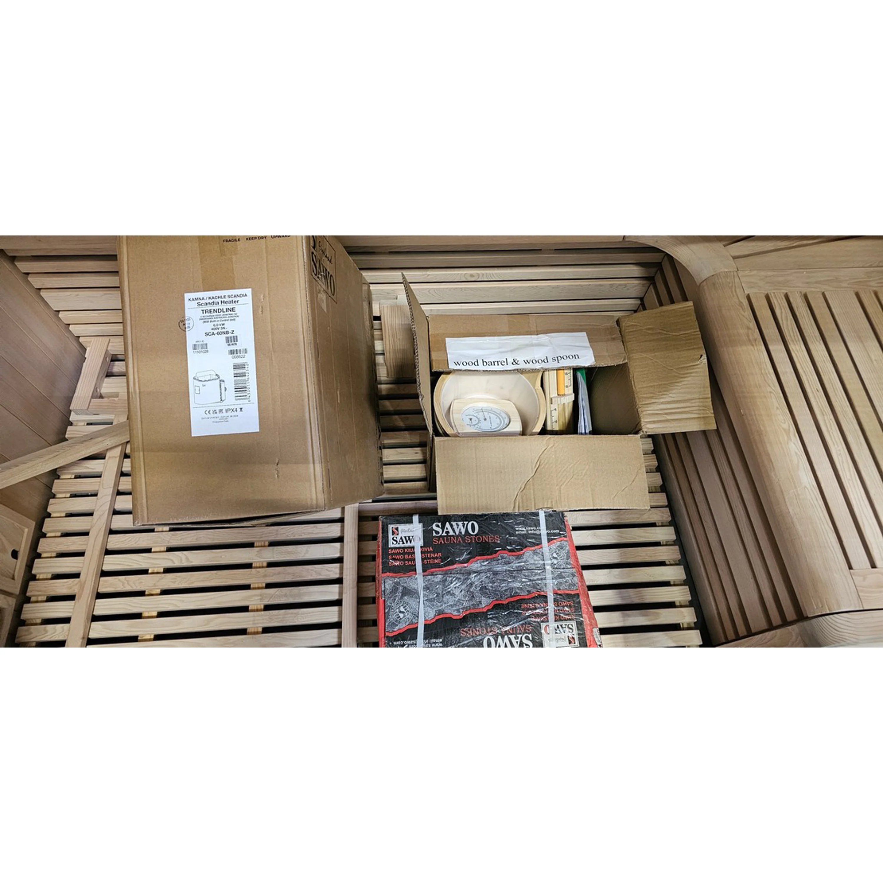 • Korpus sauny pro tři osoby včetně lavic a podlahového roštu