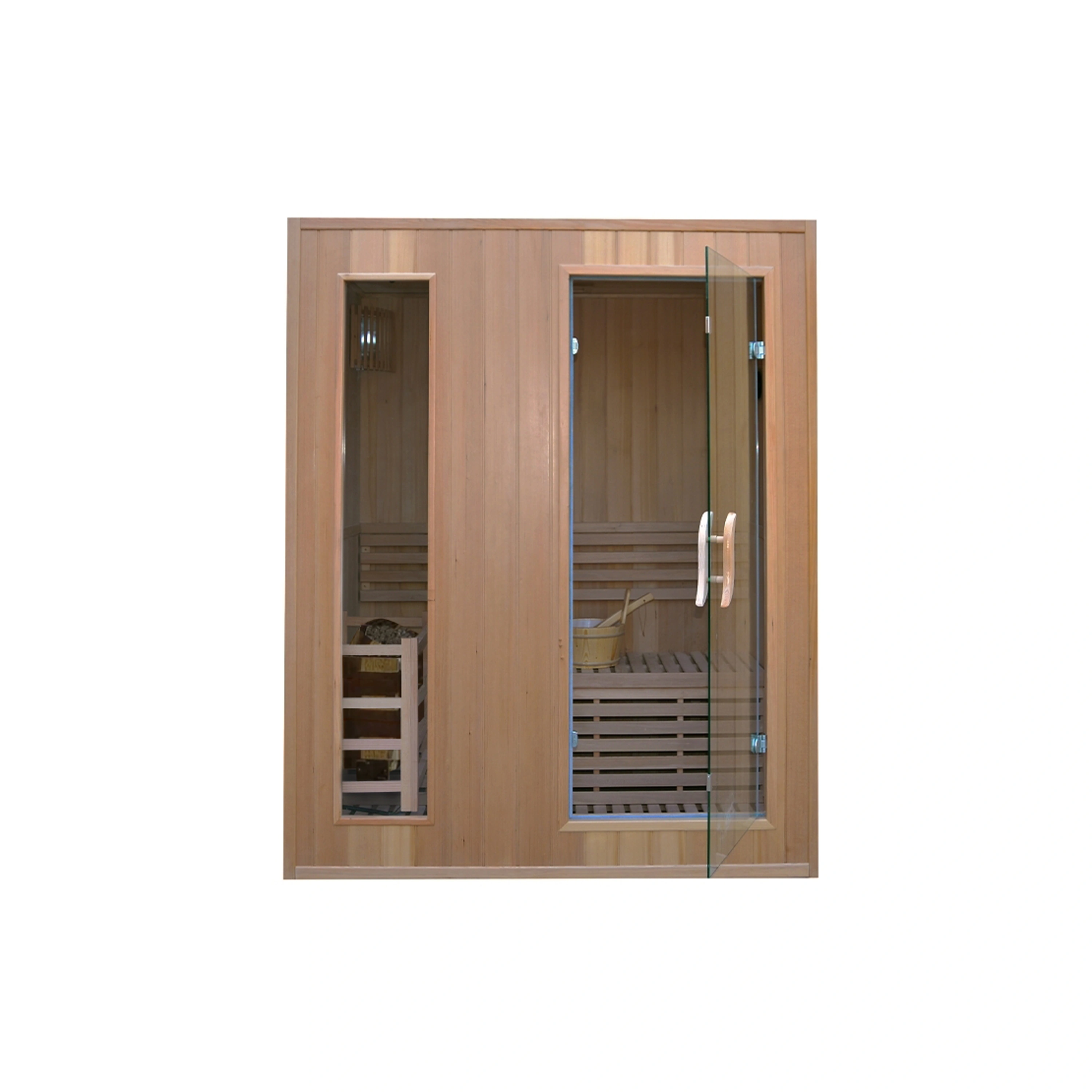 Vlastnosti materiáluSauna je vyrobena z dřeva kanadského jedlovce – hemlocku. Mezi jeho hlavní přednosti patří odolnost, bezsukovost a vynikající tepelněizolační vlastnosti. |