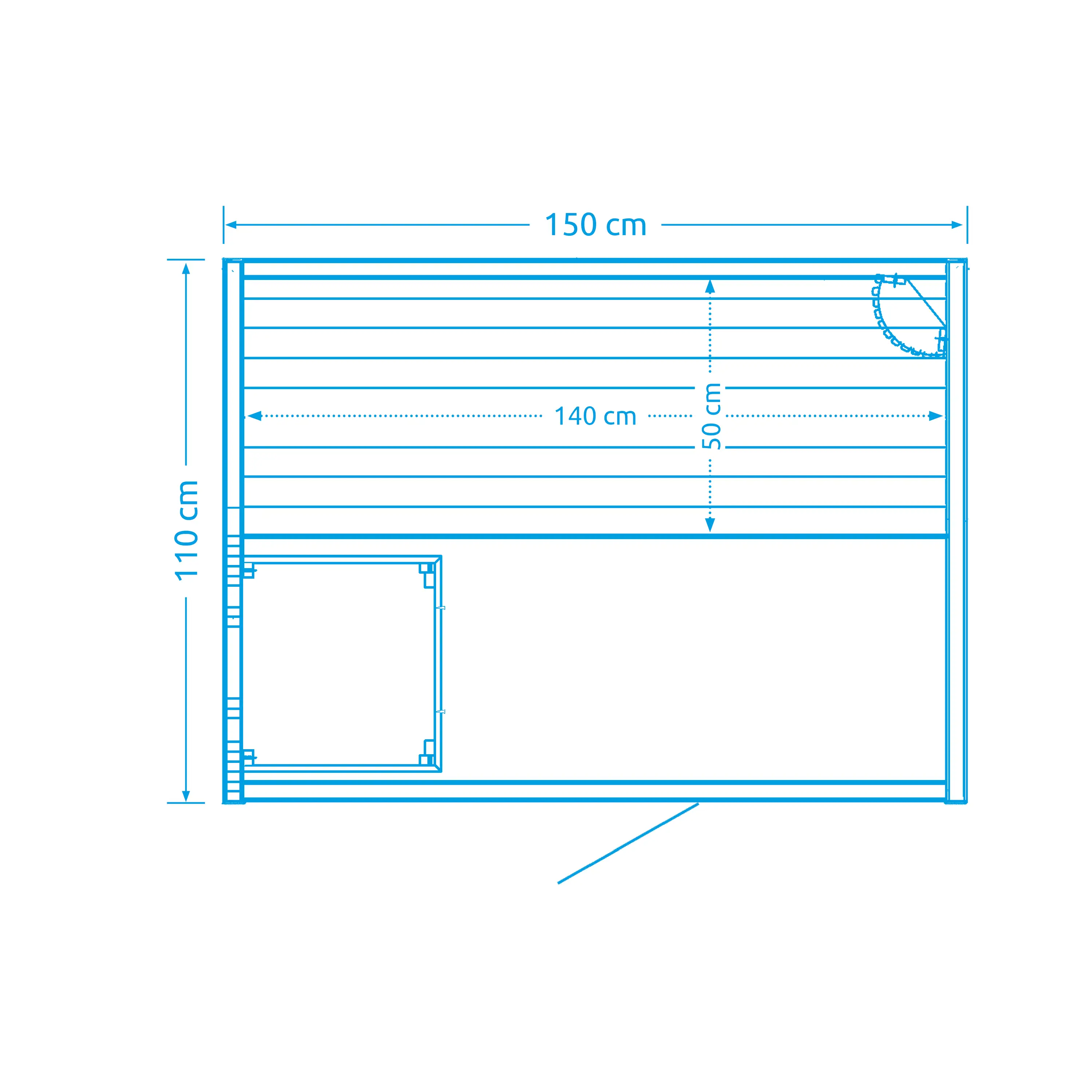 - Korpus sauny pro 2-3 osoby včetně lavice a podlahového roštu