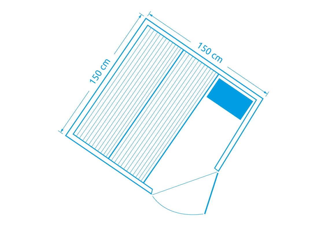 - Korpus sauny pro 2 osoby včetně lavice a podlahového roštu