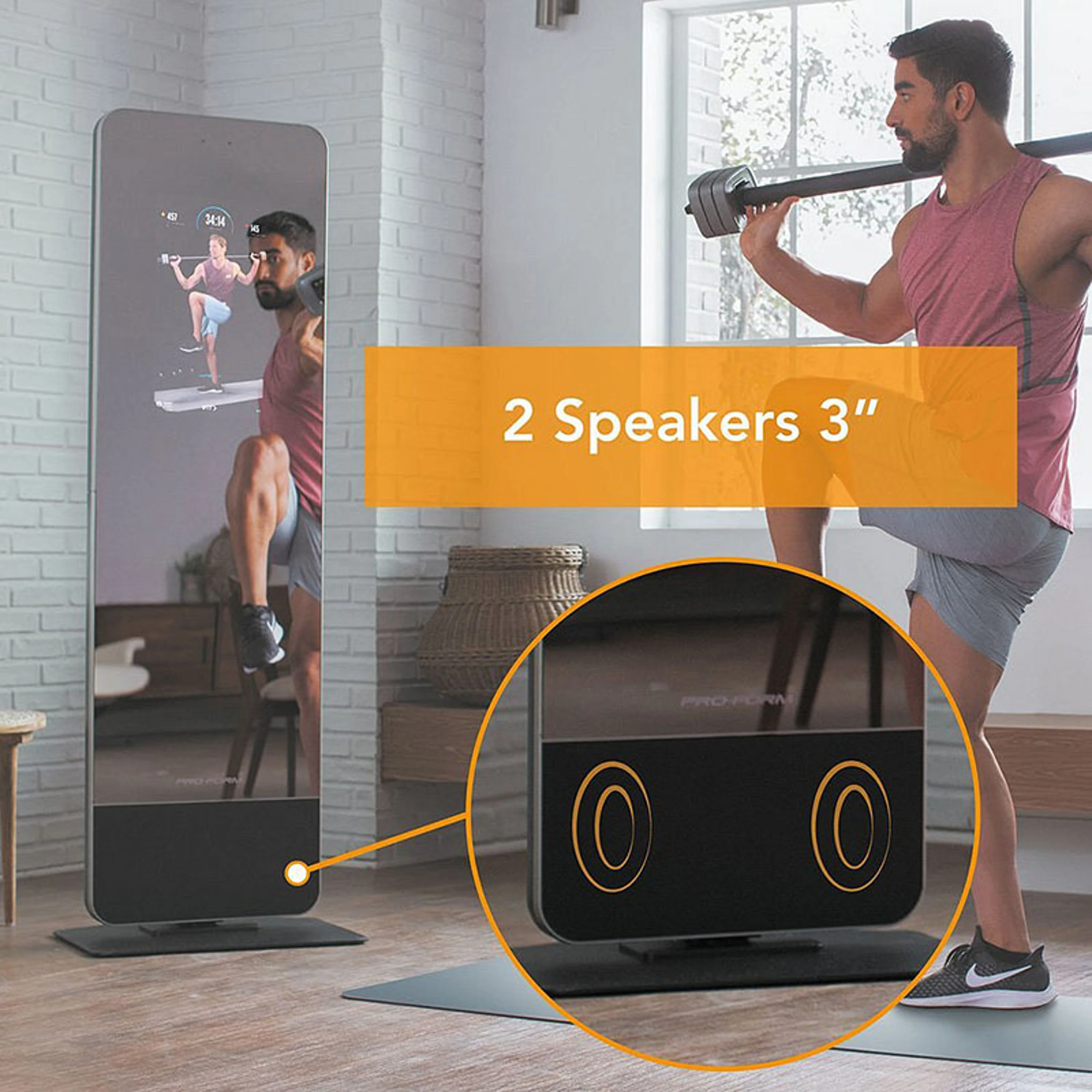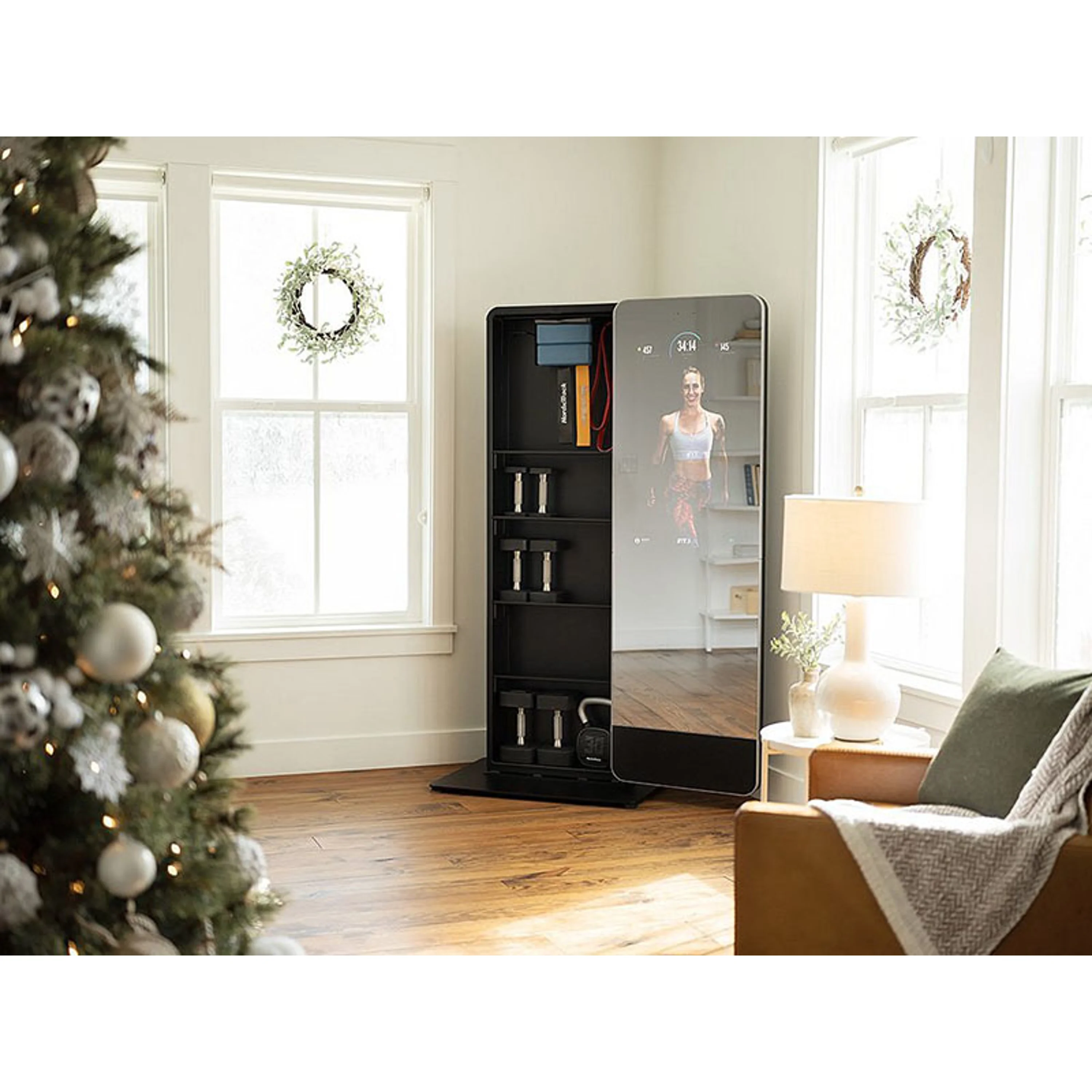 Zrcadlo má 32" dotykový displej s přístupem k široké škále iFit tréninků, aby vaše cvičení bylo efektivnější a zábavnější. Celé zrcadlo je otočné o 180° a za ním je prostor s policemi, kam můžete úhledně uložit všechny cvičební pomůcky a šetříte tak váš obytný prostor.