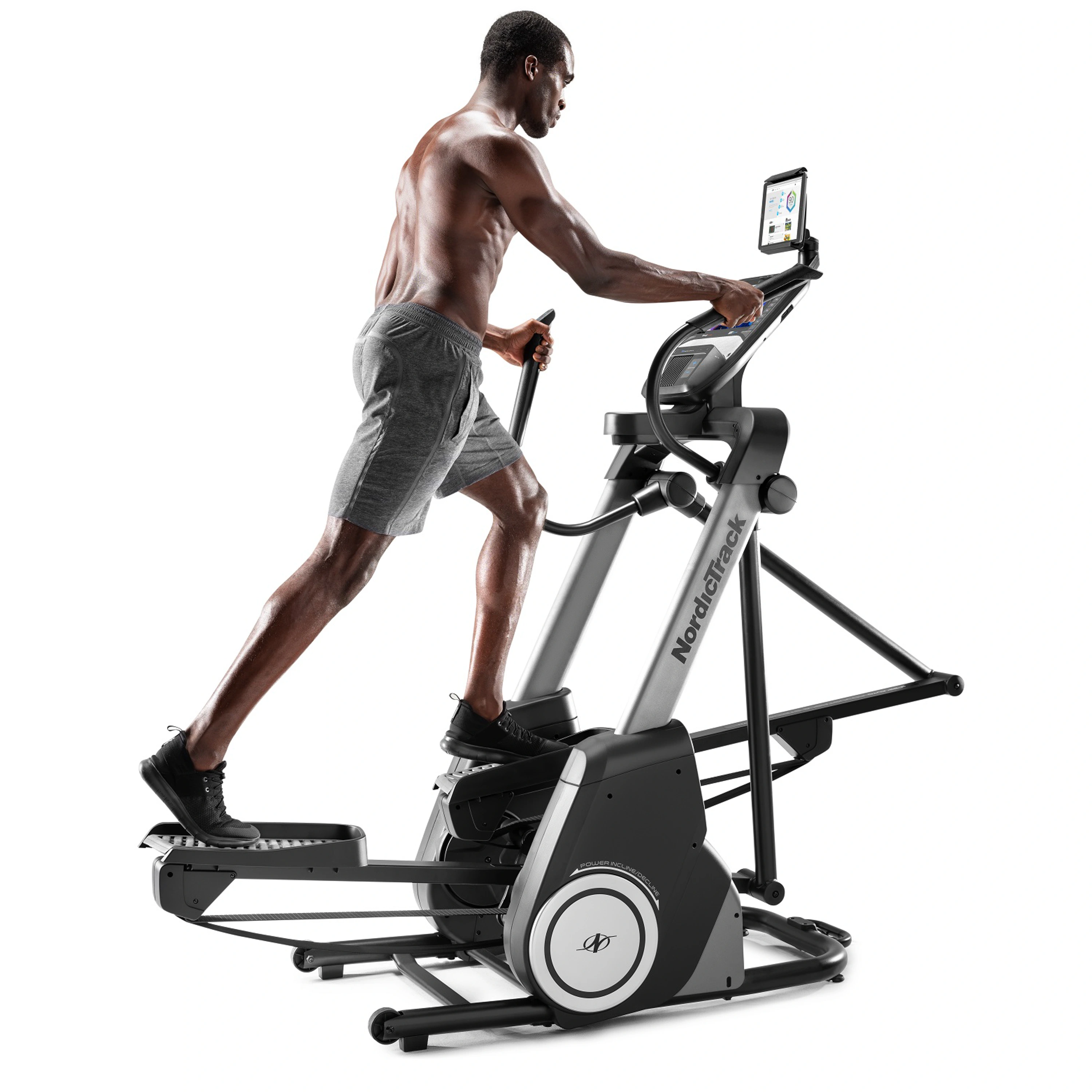 NordicTrack FreeStride Trainer FS9i je multifunkční trenažér, který podporuje práci tří posilovacích strojů a to steppru, běžeckého pásu a eliptikalu. Díky volně nastavitelnému kroku do 81 cm je pouze na vás, jakou dráhu pohybu budete opisovat při tréninku. Mezi další výhody trenažéru patří i speciální funkce automatického sklonu / poklesu (v rozmezí -10 % - 10 %), která pomáhá simulovat trénink venku a vy tak zapojujete různé svalové skupiny. Vyvážený setrvačníkový systém o hmotnosti 9 kg a moderní magnetická brzda zajišťují komfortní, plynulý a tichý chod trenažéru i při maximálním zatížení. Zátěž se nastavuje elektronicky v 26 stupních. Trenažér NordicTrack FreeStride Trainer FS9i je vybaven 10" dotykovým Smart HD displejem s vestavěnou aplikací iFit, jejíž členství máte na 1 rok zdarma. Díky aplikaci můžete cvičit se světovými osobními trenéry nebo soupeřit se svými přáteli.