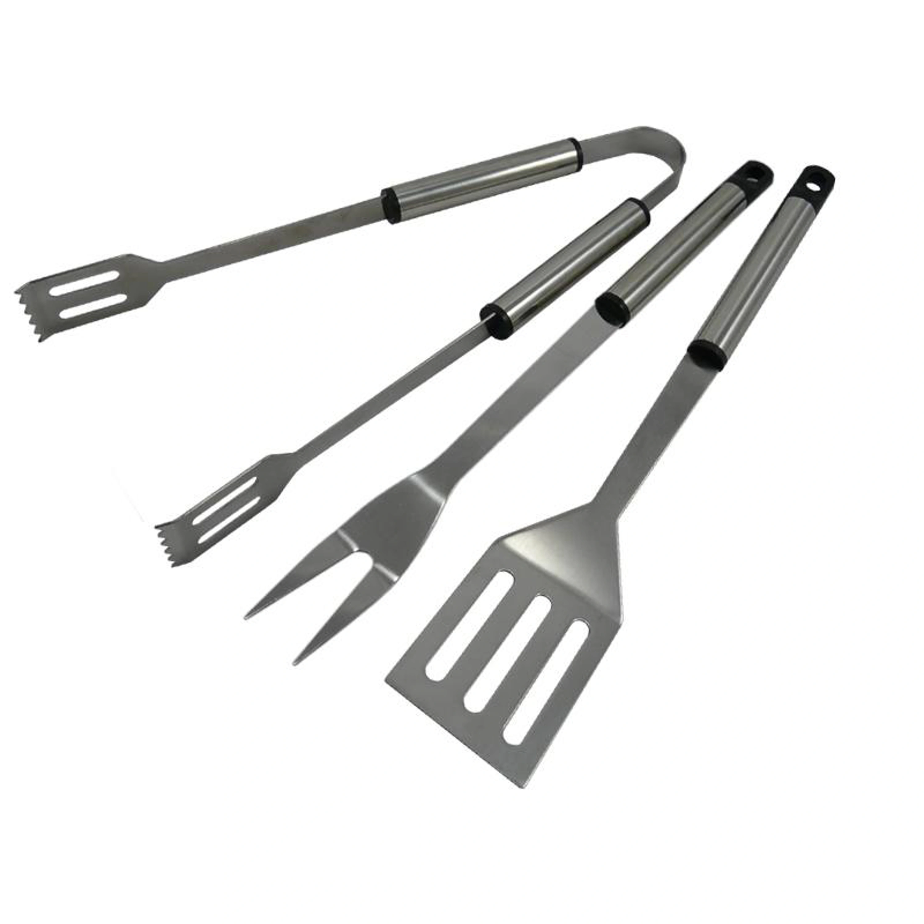 Trojdílná grilovací sada umožní mít každý zahradní gril zcela pod kontrolou. Sada je vyrobená z kvalitní nerezové oceli, každý nástroj je vybaven poutkem pro snadné zavěšení. Délka každého nástroje je 38 cm.