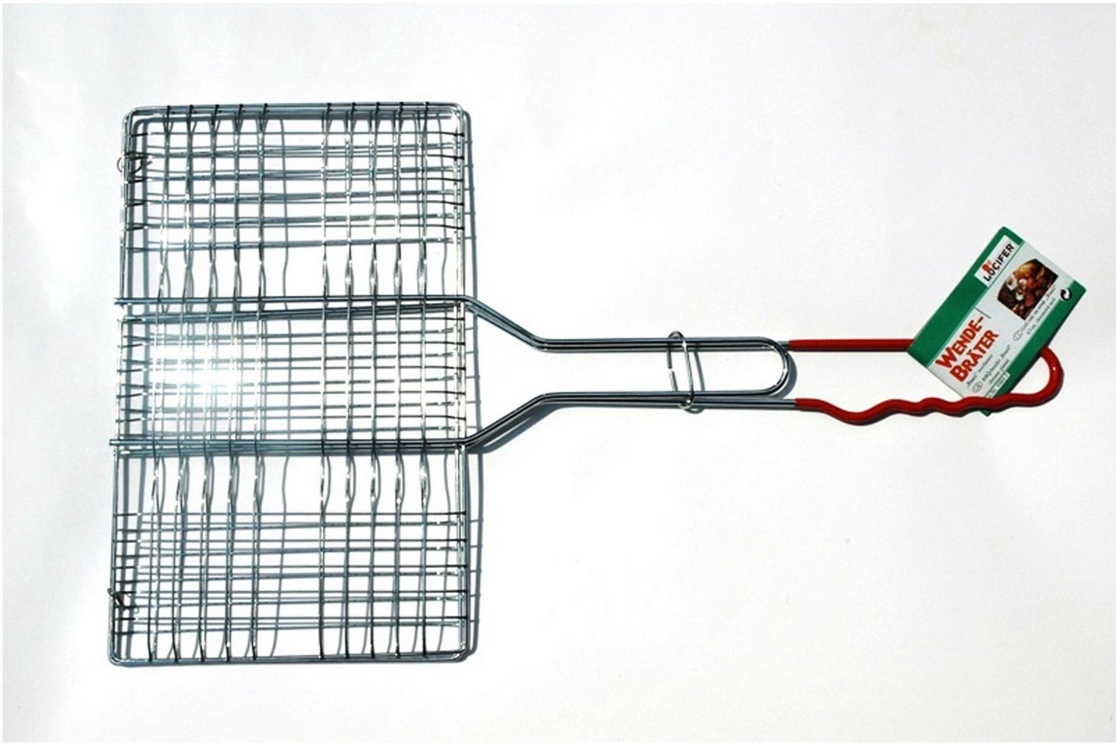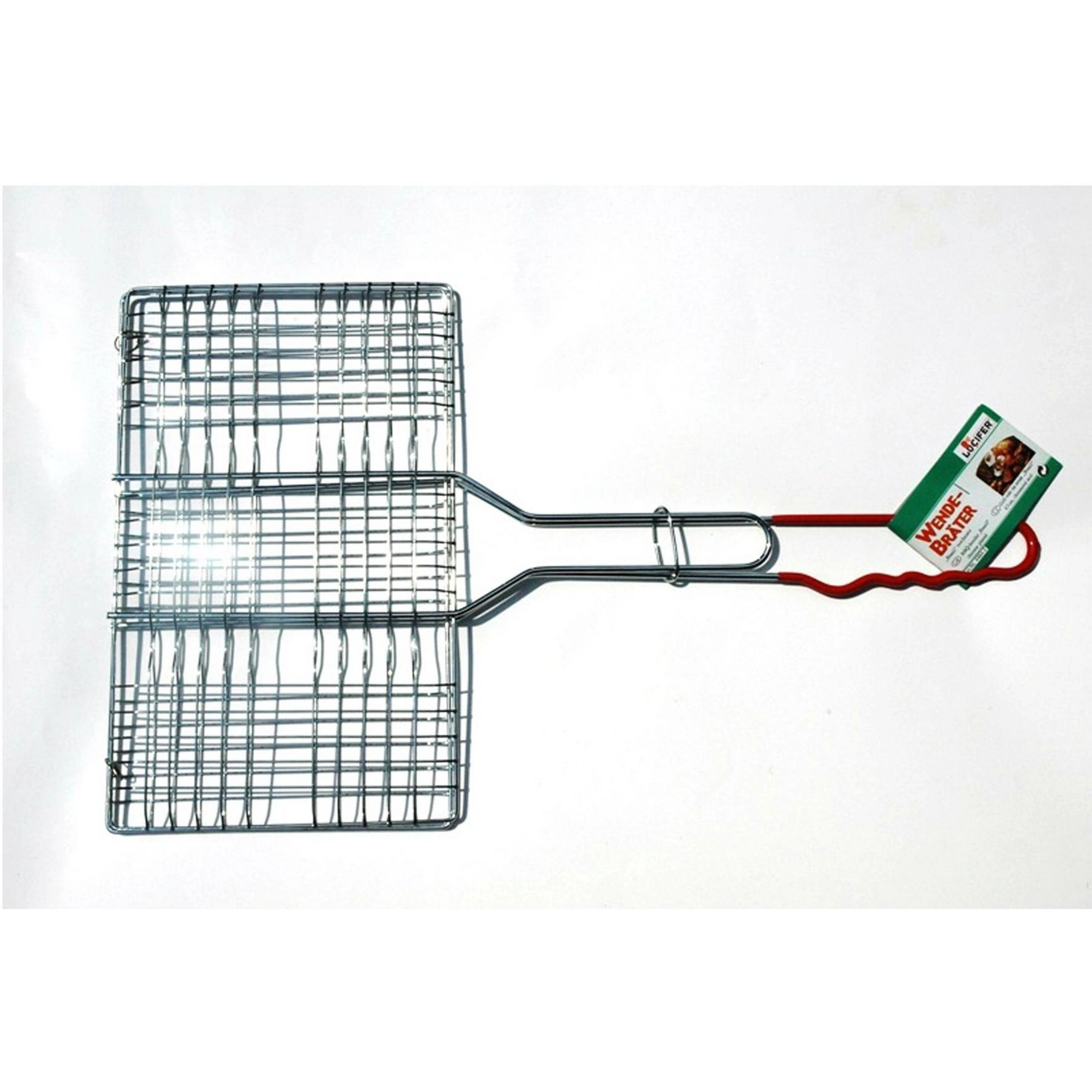 Grilovací rošt Brazil - obdélník je šikovný pomocník při opékání steaků, masa, klobás nebo zeleniny. Usnadňuje manipulaci při grilování. Je vyrobený z pochromované oceli, rukojeť je pogumovaná. Rozměry roštu jsou 34x21 cm, délka je 60 cm.