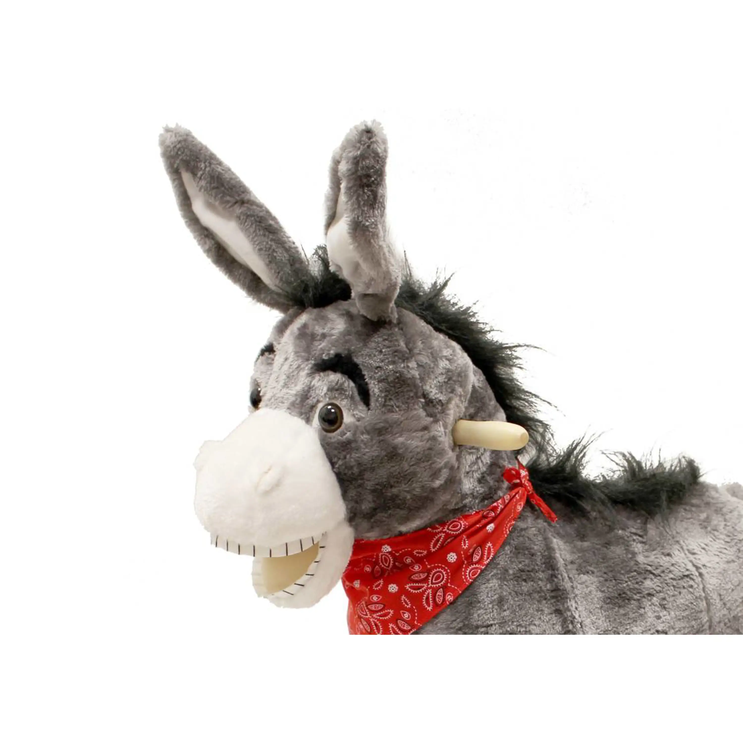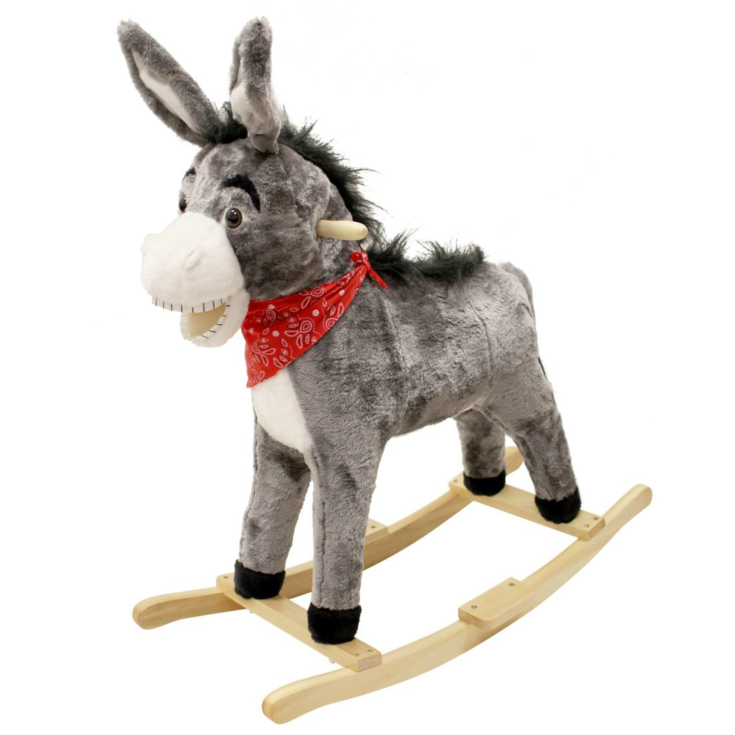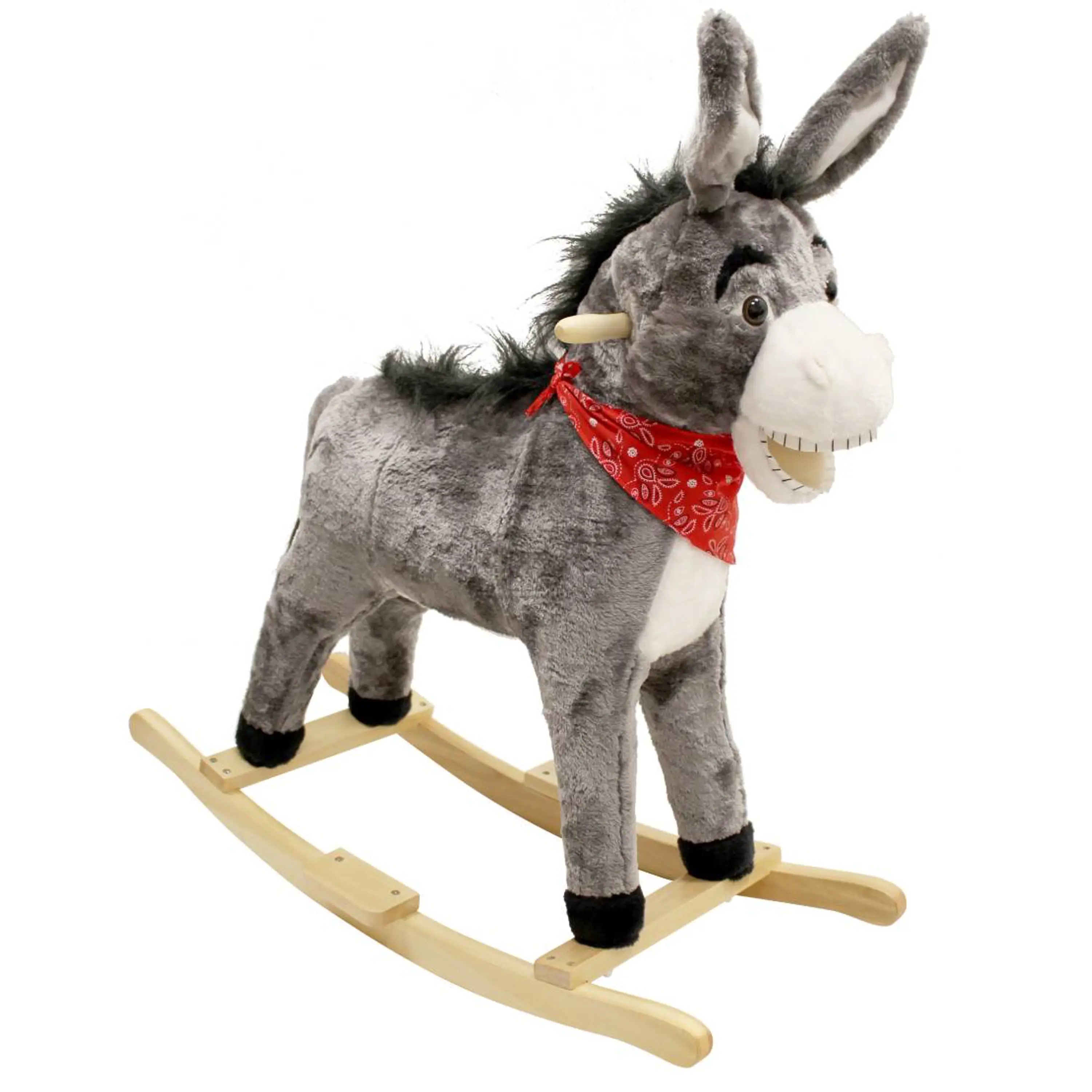Plyšový houpací osel na dřevěném rámu, který disponuje zvukem. Aktivace zvuku je stiskem tlačítka v uchu. Houpací osel je vyroben z měkkého plyšového materiálu. Oslíka je možné z houpacího rámu sundat.