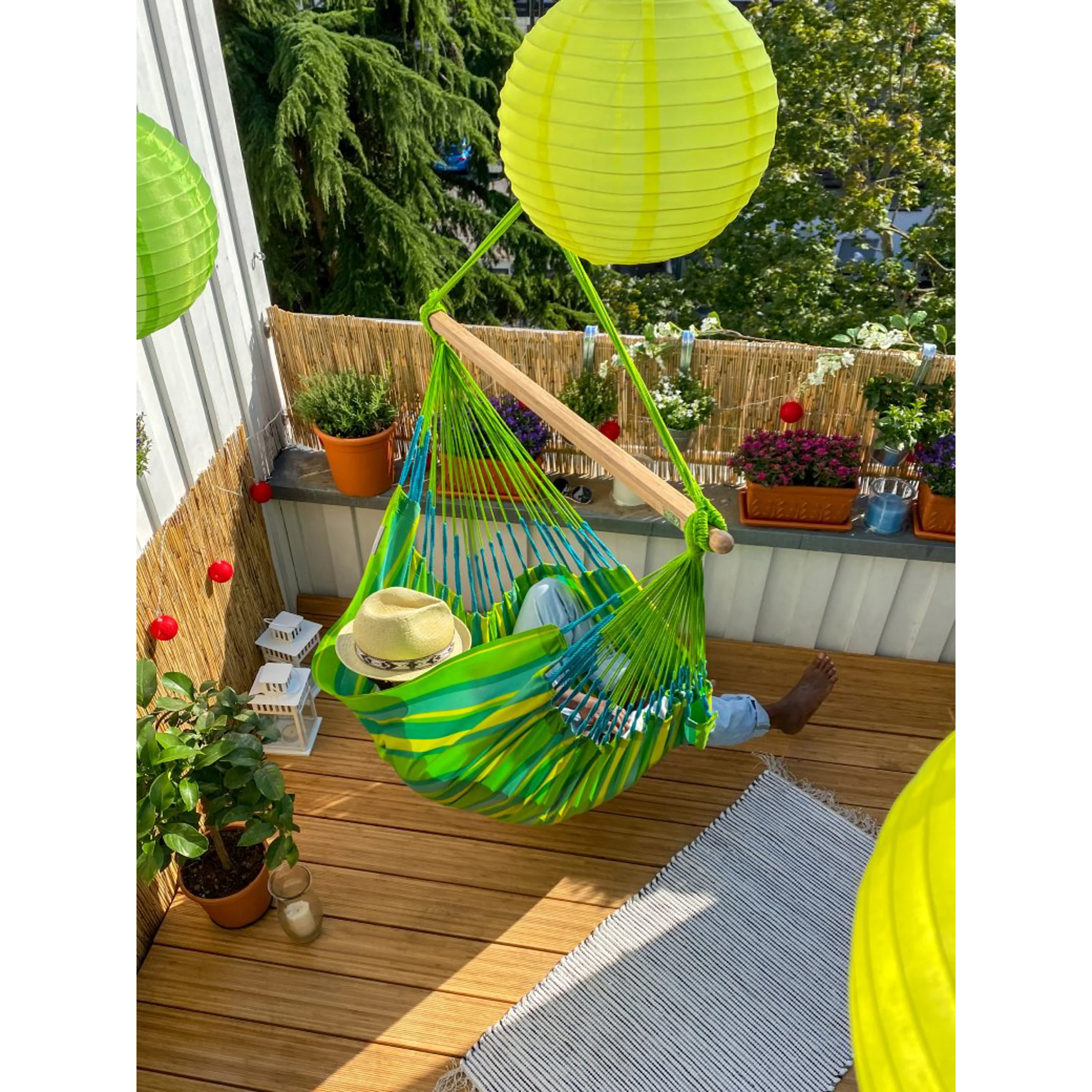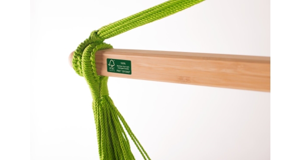 Vydrží intenzivní zatížení, až 130 kg, stejně jako rozmary počasí. Funkční tkanina, vyvinutá přímo na míru houpacím sítím a sedačkám, je příjemná na dotek, rychle schne a snadno se udržuje. Vysoký počet závěsných vláken zaručí rovnoměrné rozložení váhy, integrovaný pojistný čep zase bezpečnou 360° rotaci. Domingo Comfort má na délku rovných 180 cm, takže si v ní můžete pohodlně natáhnout nohy, číst si a relaxovat. Rozpěrná tyč je vyrobená z kvalitního bambusového dřeva z udržitelného lesního hospodářství. Díky speciální technologii zpracování má příjemně hladký povrch a také její odolnost proti povětrnostním vlivům je mimořádná.