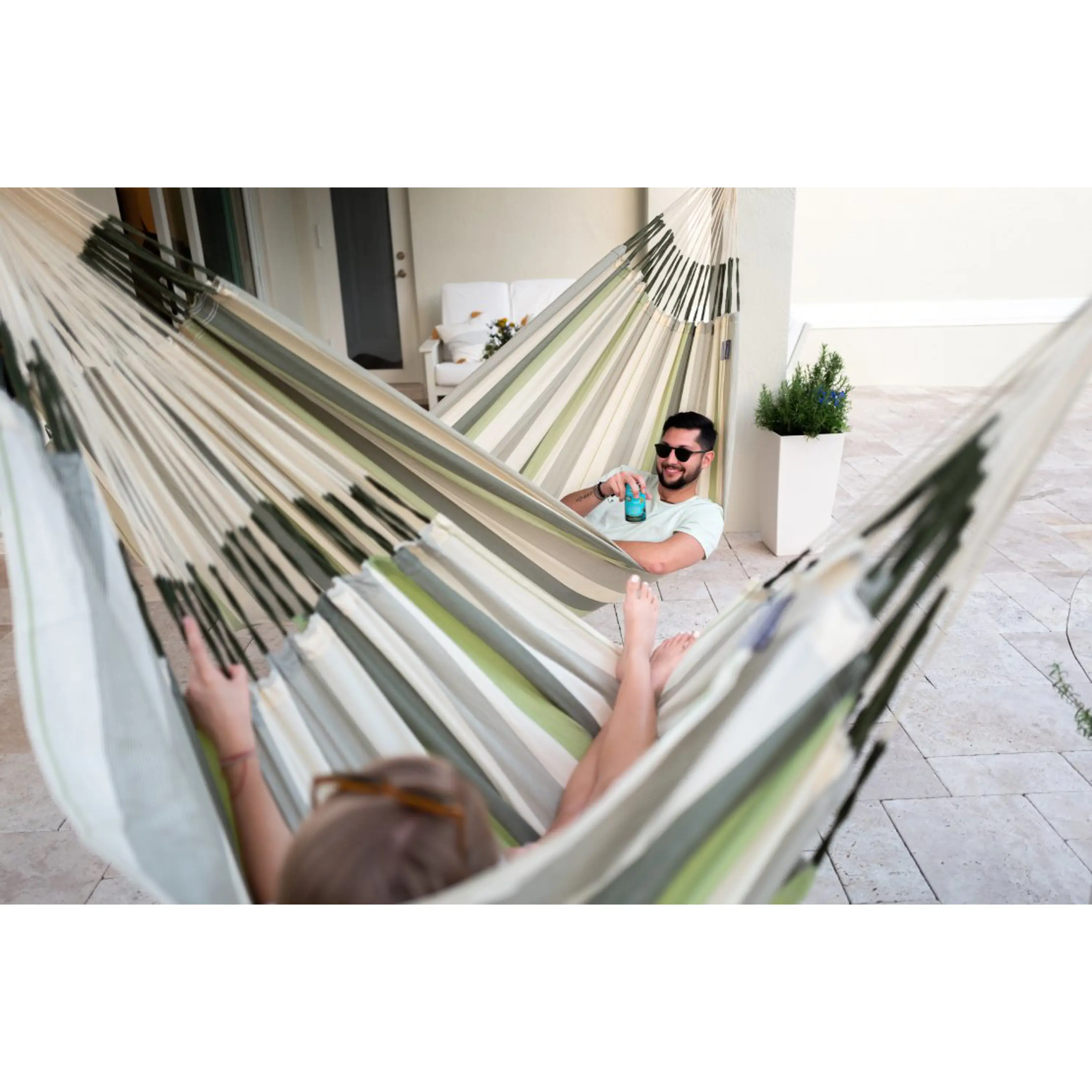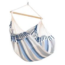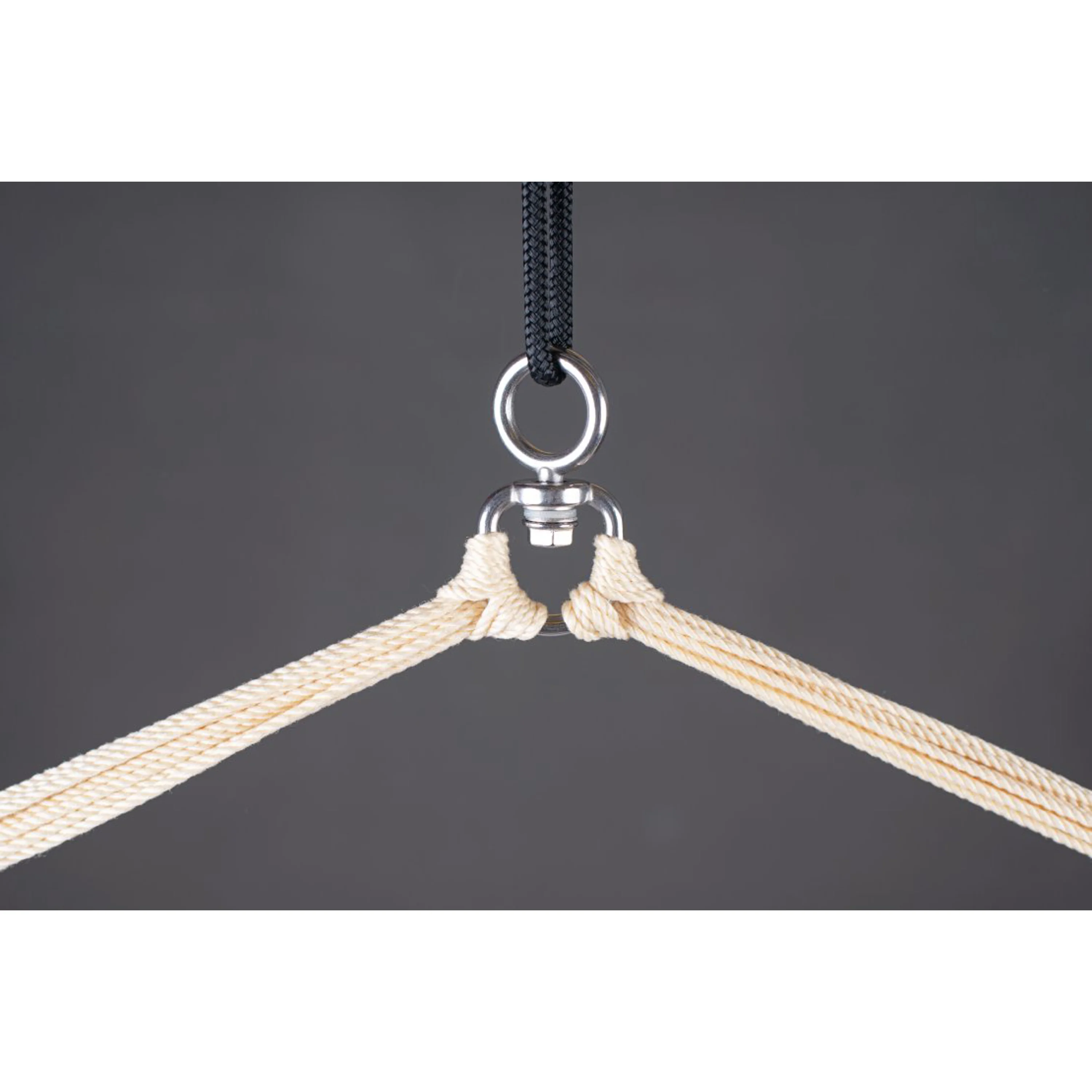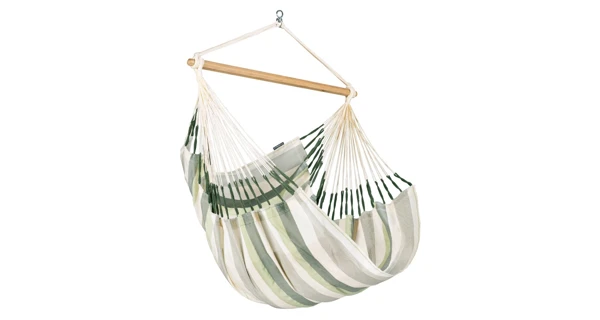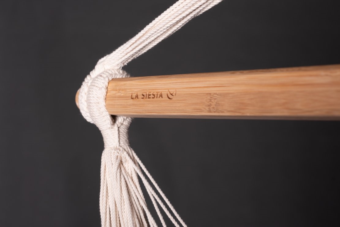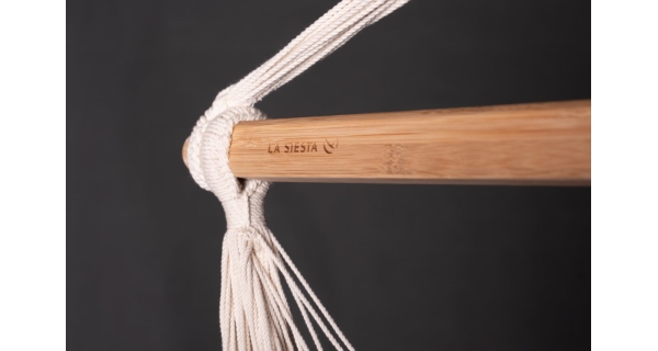 Vydrží intenzivní zatížení, až 130 kg, stejně jako rozmary počasí. Funkční tkanina, vyvinutá přímo na míru houpacím sítím a sedačkám, je příjemná na dotek, rychle schne a snadno se udržuje. Vysoký počet závěsných vláken zaručí rovnoměrné rozložení váhy, integrovaný pojistný čep zase bezpečnou 360° rotaci. Domingo Comfort má na délku rovných 180 cm, takže si v ní můžete pohodlně natáhnout nohy, číst si a relaxovat. Rozpěrná tyč je vyrobená z kvalitního bambusového dřeva z udržitelného lesního hospodářství. Díky speciální technologii zpracování má příjemně hladký povrch a také její odolnost proti povětrnostním vlivům je mimořádná.