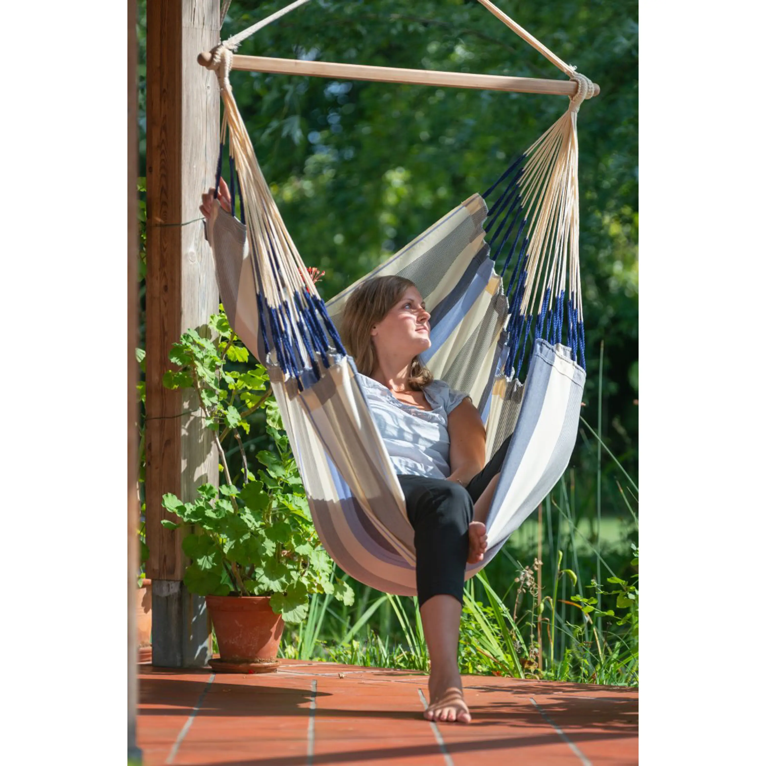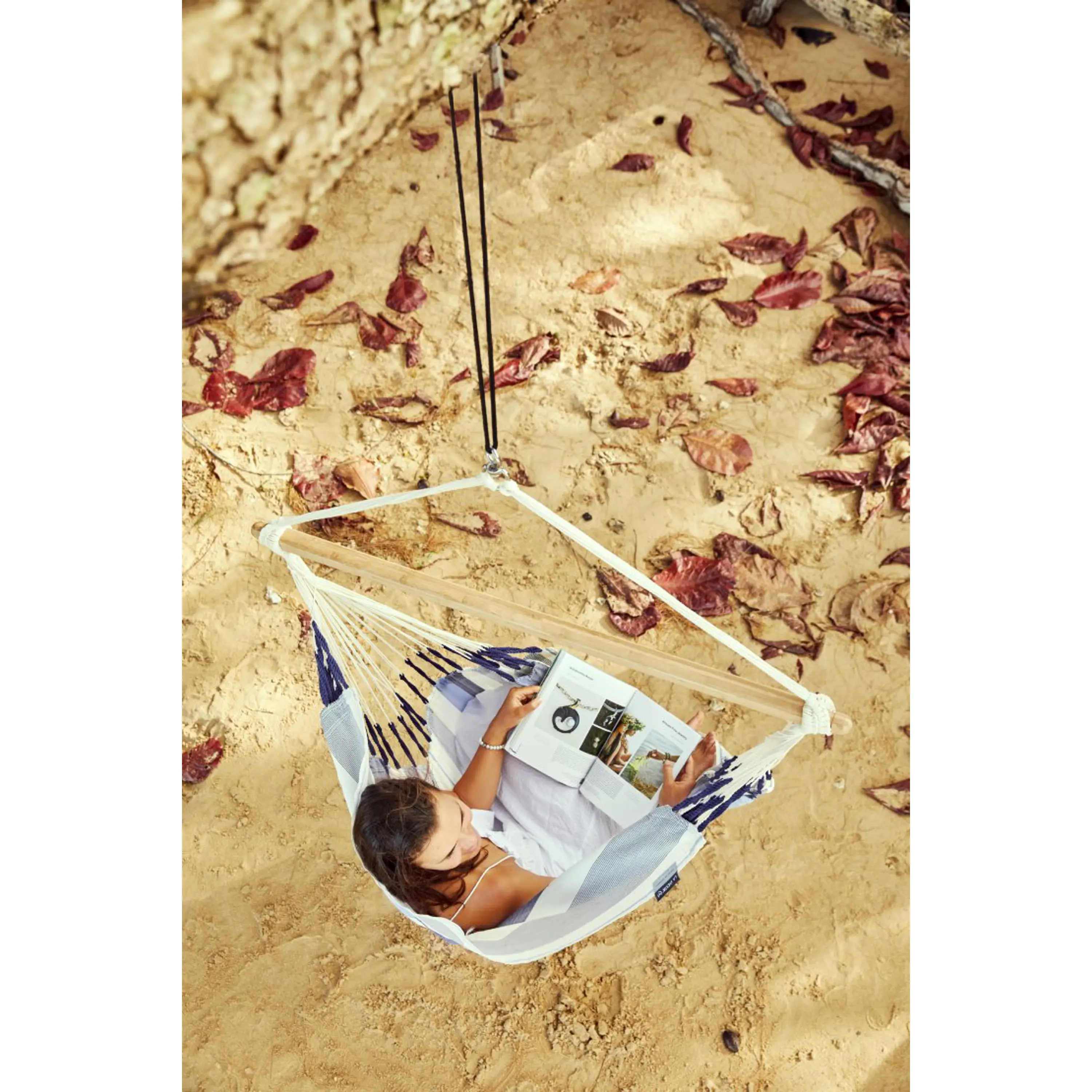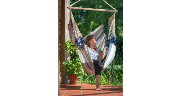 Prostorná houpací sedačka La Siesta Domingo Comfort, classic seasalt z funkční tkaniny je ideální společnicí do zahrady. Ať už v ní budete sedět nebo ležet, čekají vás hodiny slastné relaxace.
