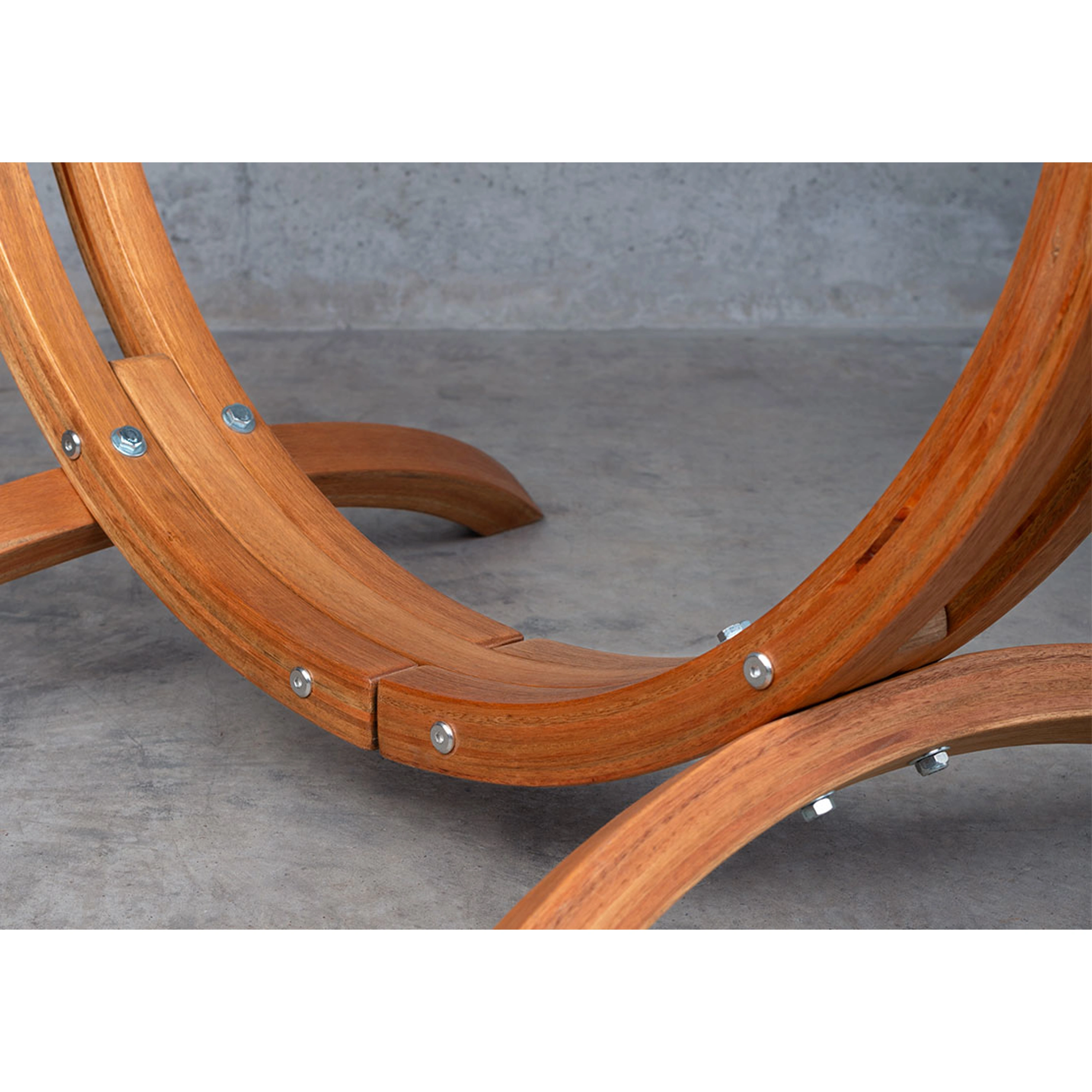 Úžasné kombo – závěsná sedačka s dřevěným stojanem – pro maximální relaxaci na minimálním prostoru – vaše oáza kdykoli a kdekoli si budete přát.