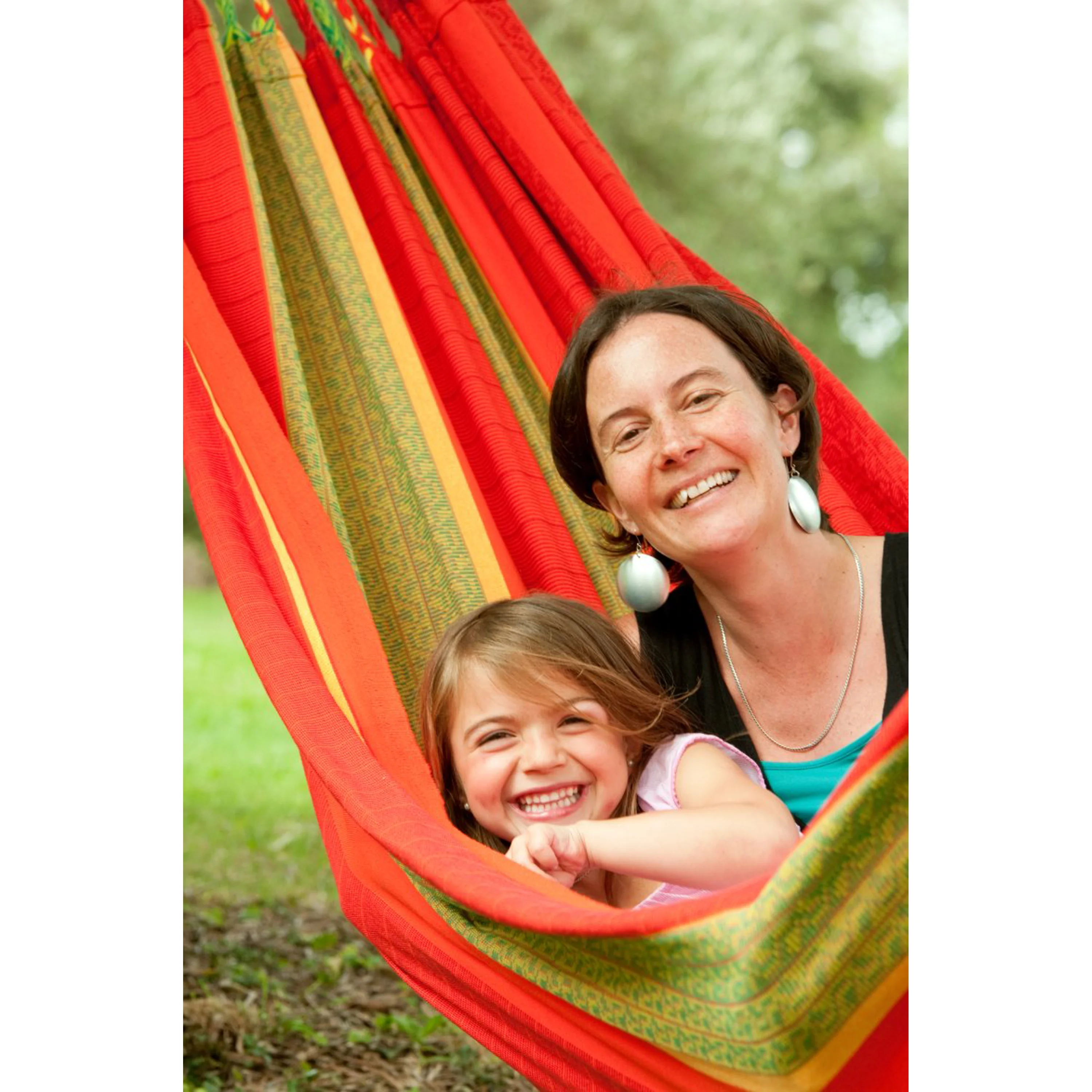 V prostorné síti La Siesta Flora Kingsize můžete odpočívat s celou svou rodinou. Díky příjemné látce z organické bavlny, jedinečnému způsobu tkaní a velkému počtu závěsných šňůr, zažijete bezkonkurenční stav beztíže.
