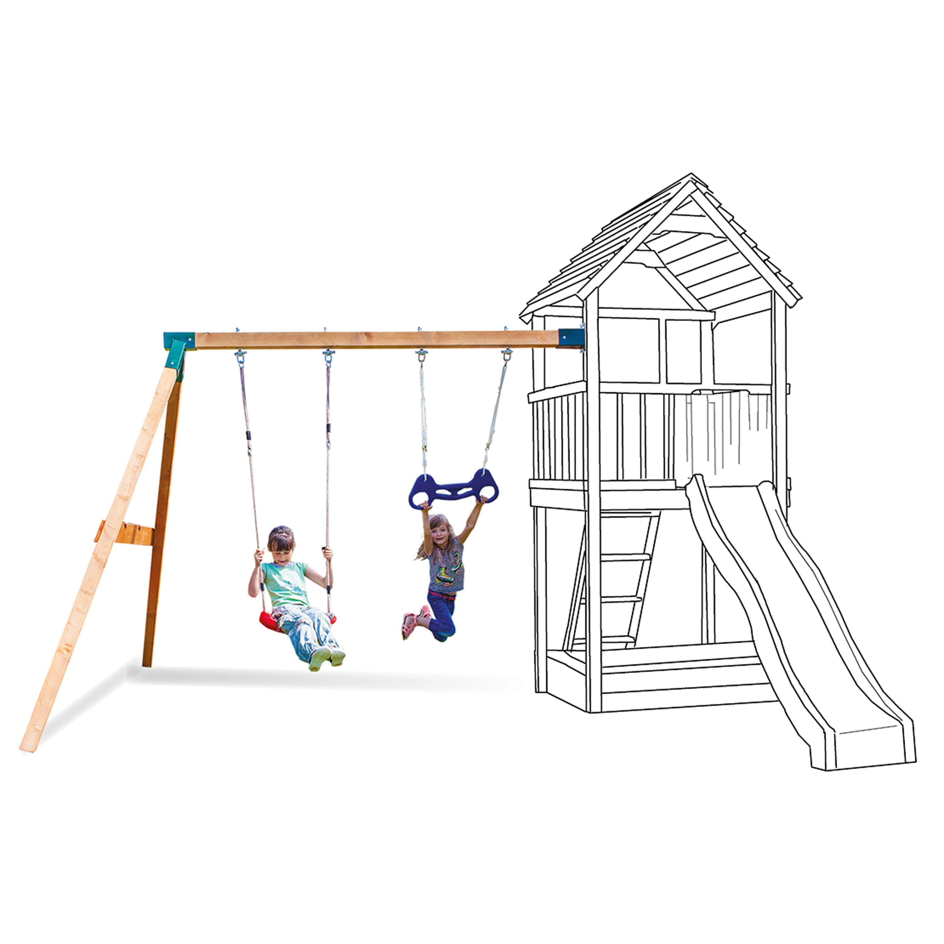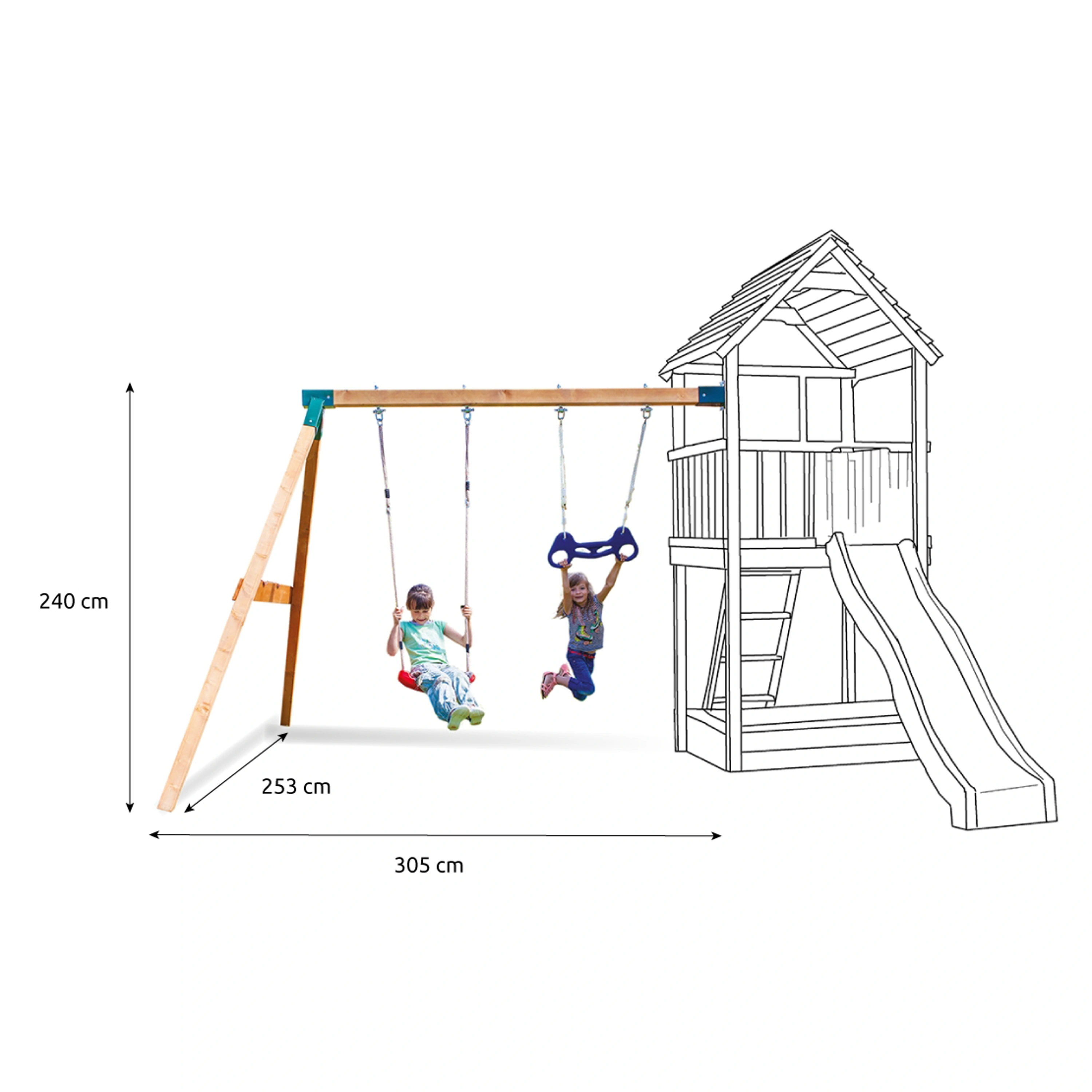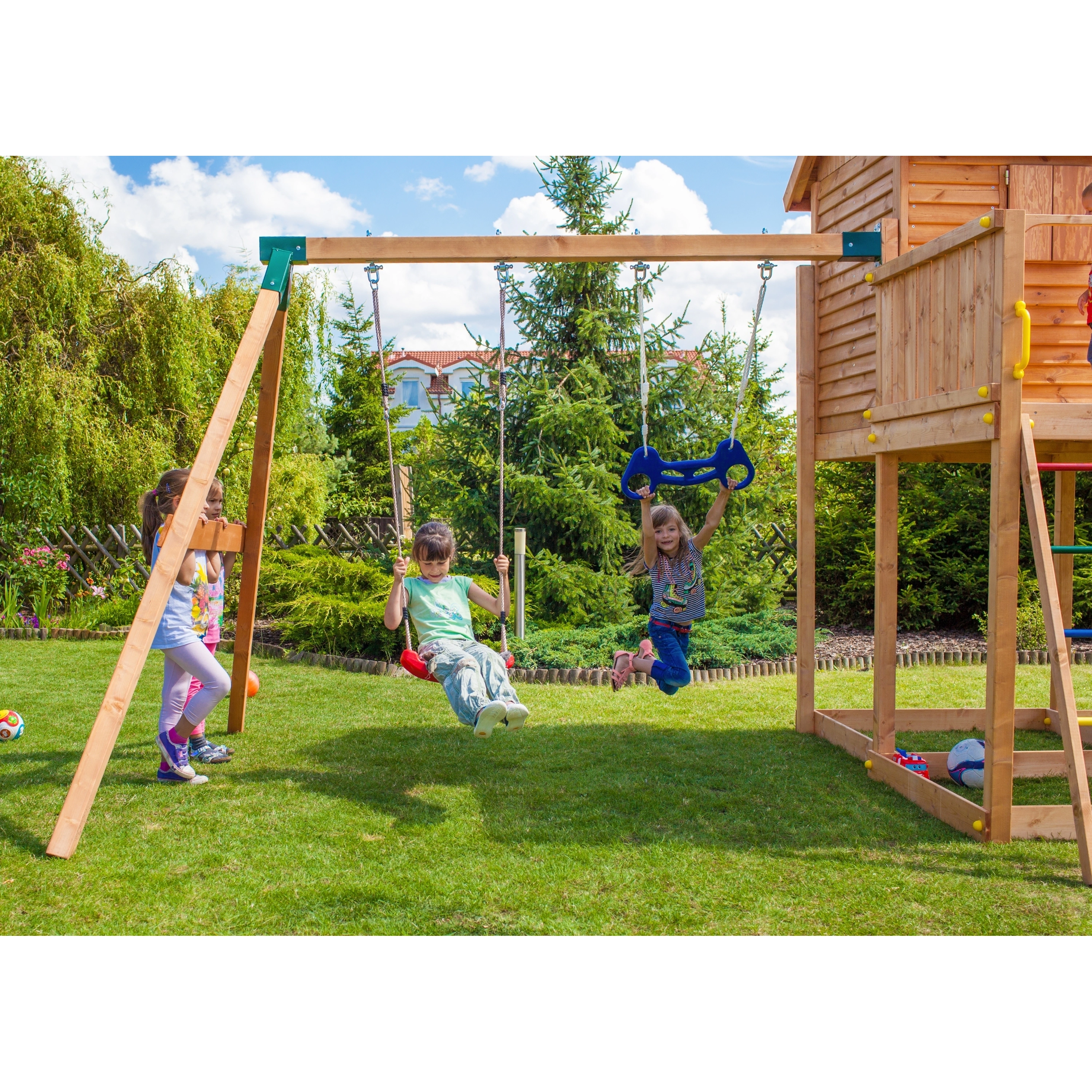 Kvalitní materiályVeškeré komponenty jsou vyrobeny z robustního plastu, odolného kovu a borovicového dřeva, které je povrchově ošetřeno proti nepříznivým vlivům počasí. |