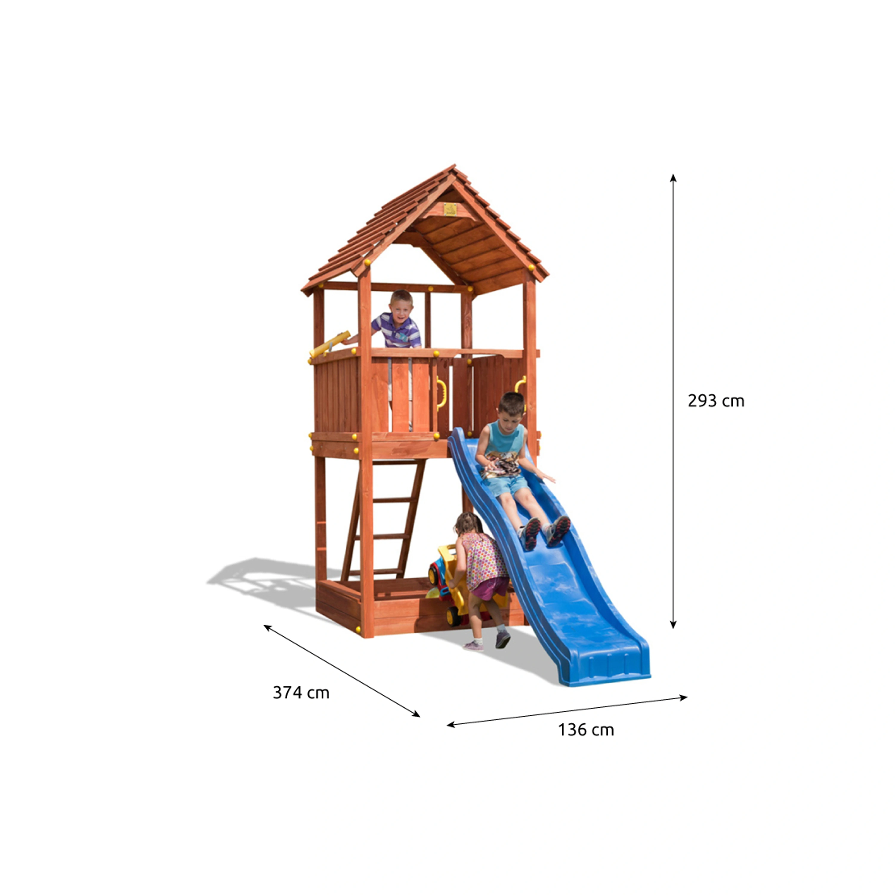 Kvalitní materiályVeškeré komponenty jsou vyrobeny z robustního plastu, odolného kovu a borovicového dřeva, které je povrchově ošetřeno proti nepříznivým vlivům počasí. |