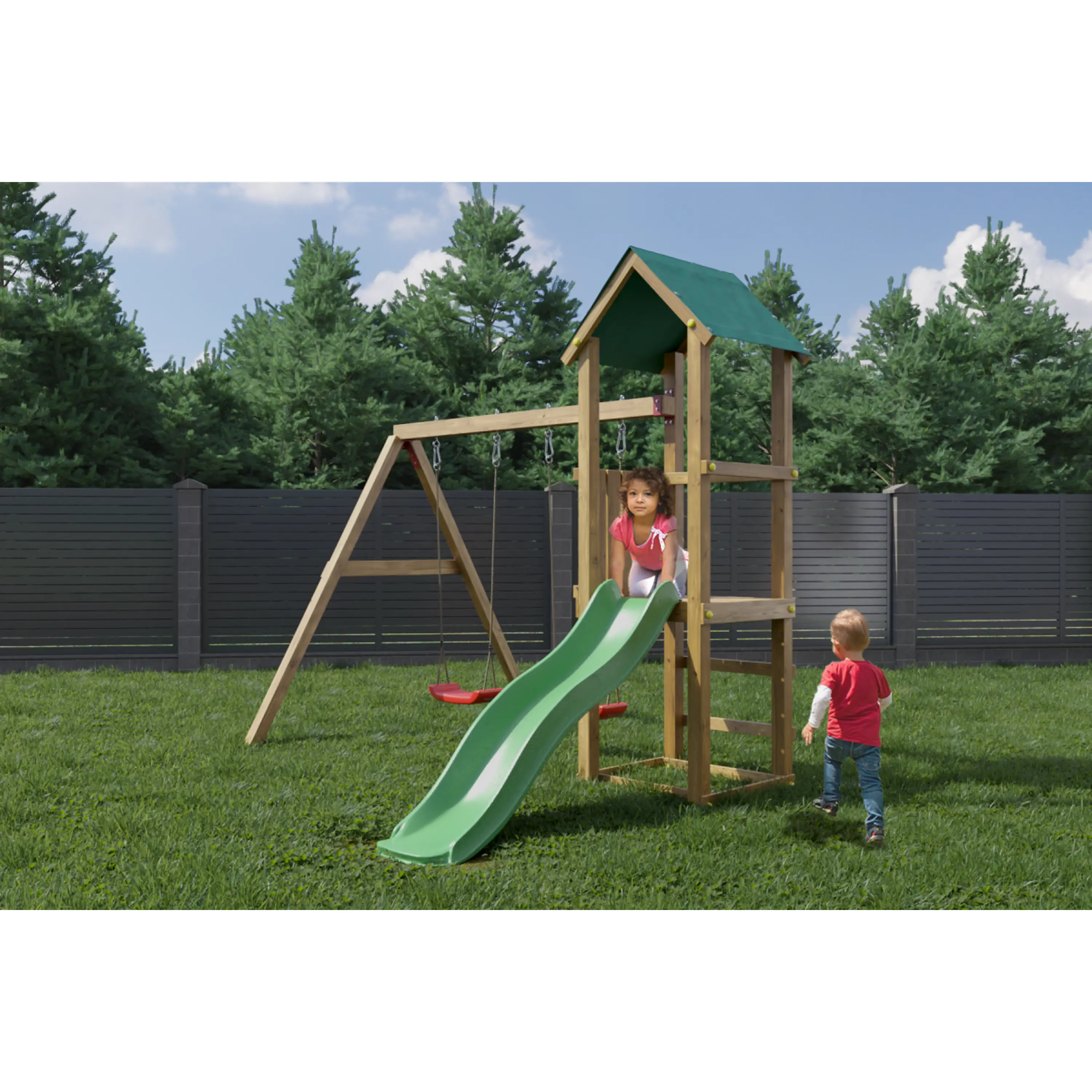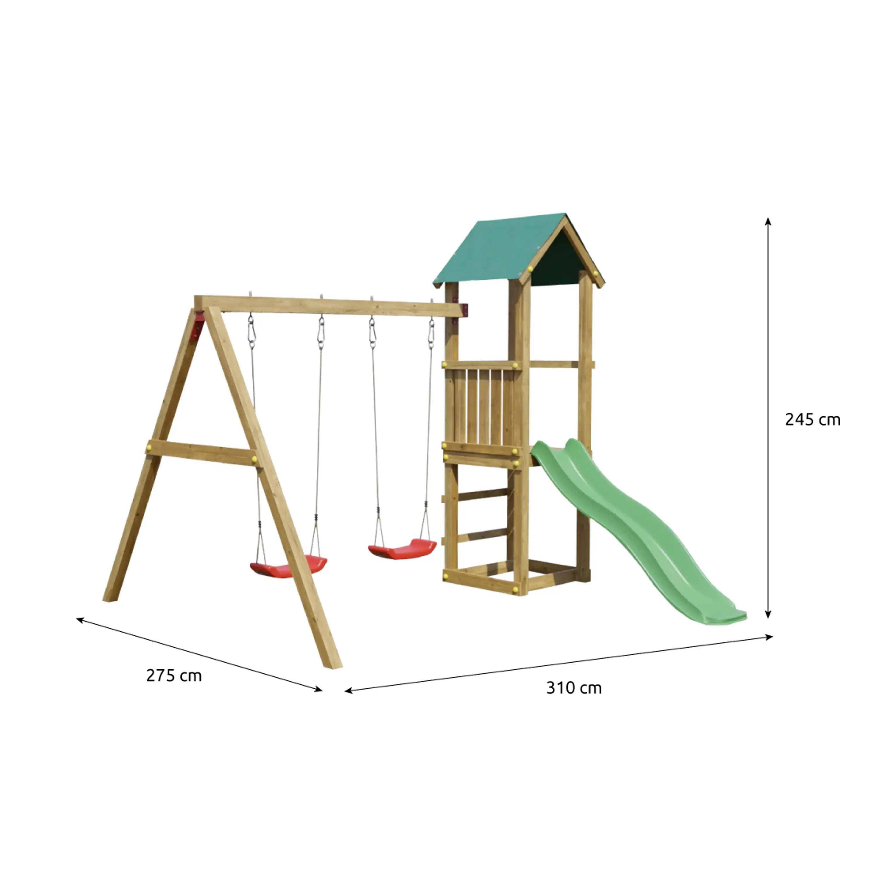 Kvalitní materiályVeškeré komponenty jsou vyrobeny z robustního plastu, odolného kovu a borovicového dřeva, které je povrchově ošetřeno proti nepříznivým vlivům počasí. |