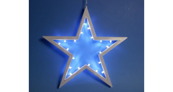 Dekorativní osvětlení 20 LED diod studená bílá, báječně podtrhne slavnostní a romantickou atmosféru o vánočních svátcích. Hvězdu je možné zavěsti do okna, na dveře nebo jen na stěnu. Vhodné pouze pro vnitřní použití.