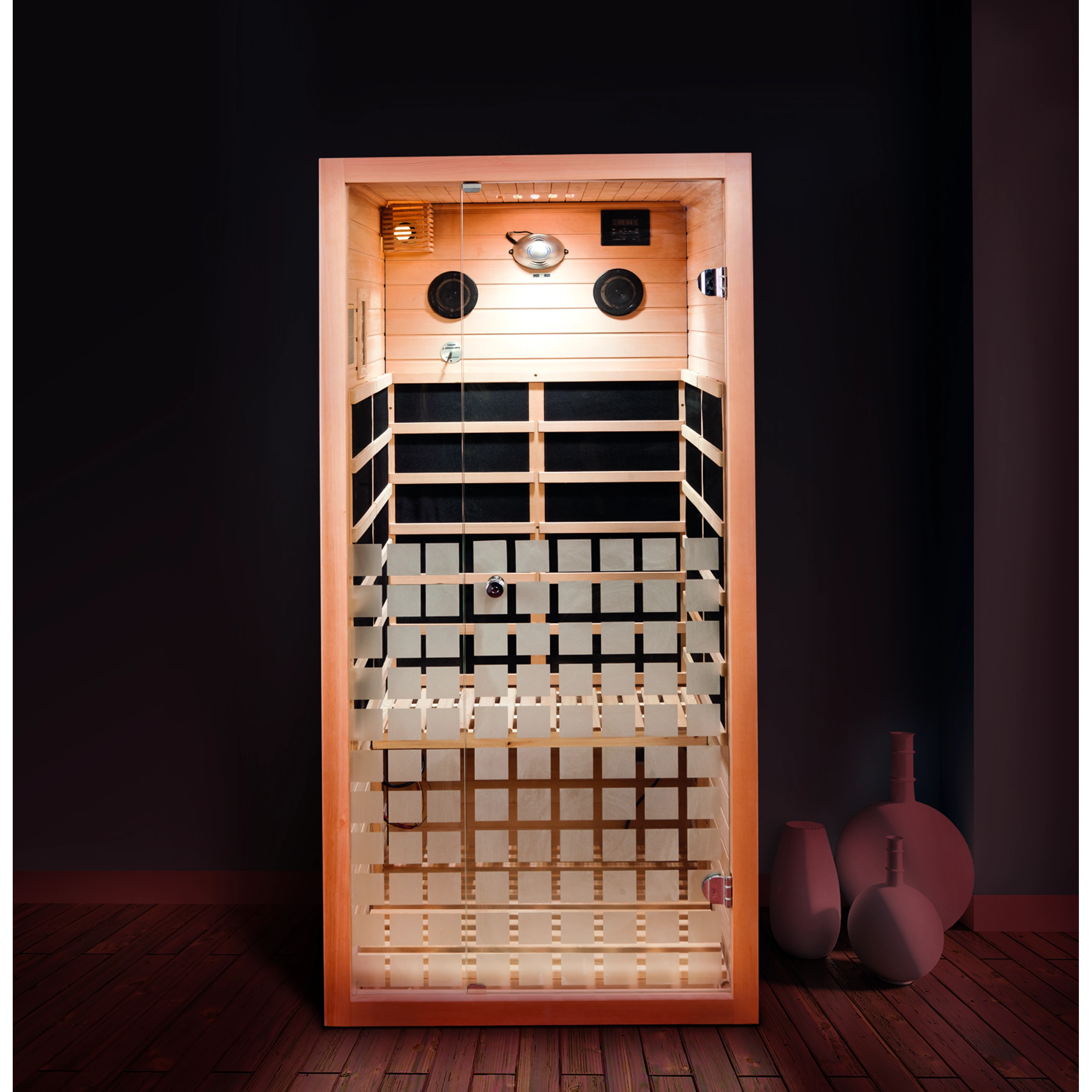Marimex Trendy 2001 M Plus patří mezi naše nejprodávanější typy infrasaun. Na první pohled zaujme neotřelým designem. Při výrobě bylo použito kvalitního dřeva kanadského jedlovce - hemlocku. Tento typ infrasauny je určený pro saunování jedné osoby. Malé rozměry dovolují umístění téměř do každého interiéru. Skleněné dveře dokonale ladí s designem a zároveň umožňují výhled saunované osoby po okolí infrasauny. Součástí výbavy je ionizér a rádio/mp3 přehrávač.