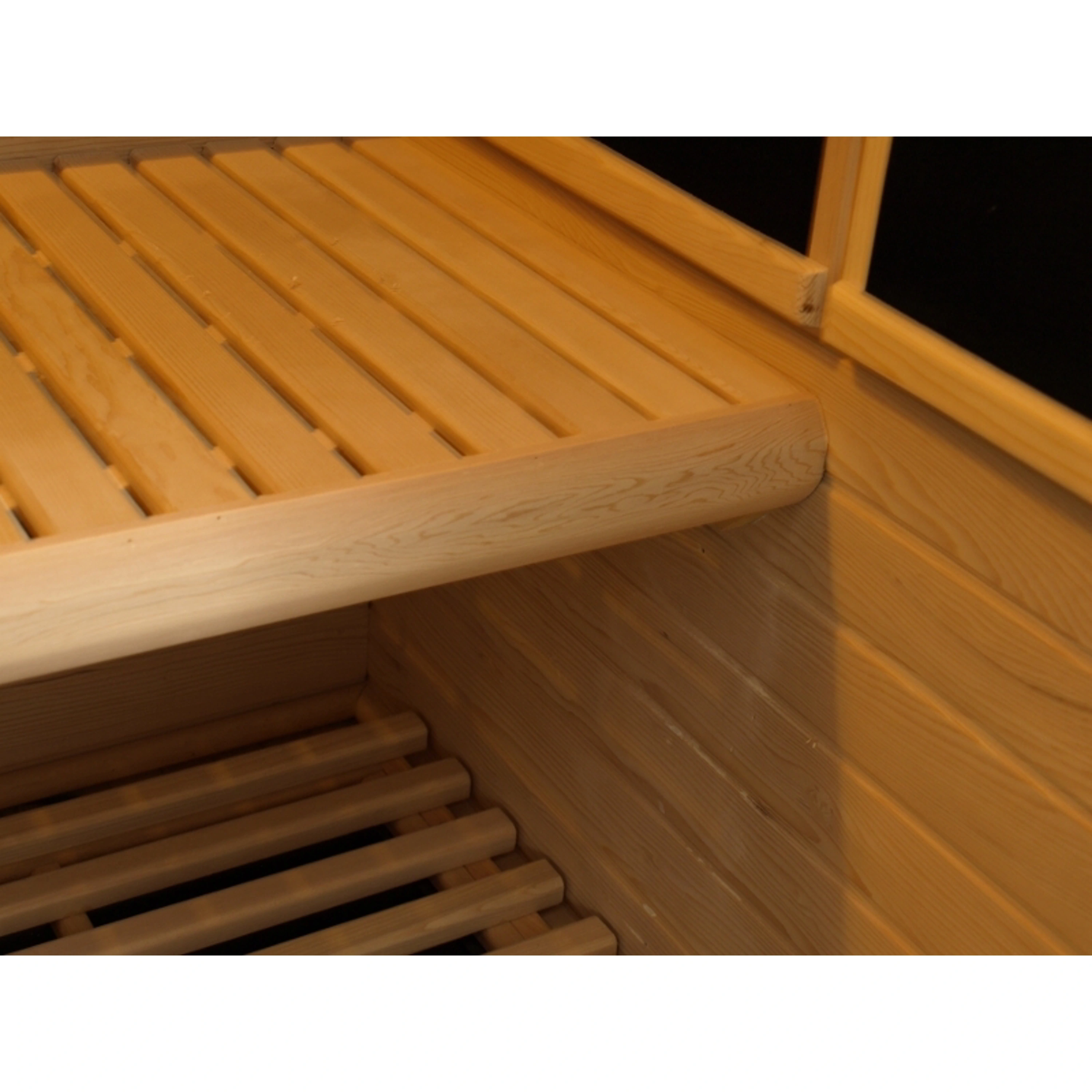 Montáž infrasauny je rychlá a jednoduchá. K přichycení jednotlivých částí se používají kufrové spony, čepy nebo klasické šrouby. Elektroinstalace je již namontovaná od výrobce, pouze stačí propojit kabeláž pomocí zásuvek a konektorů. Vše je přehledně označené.
