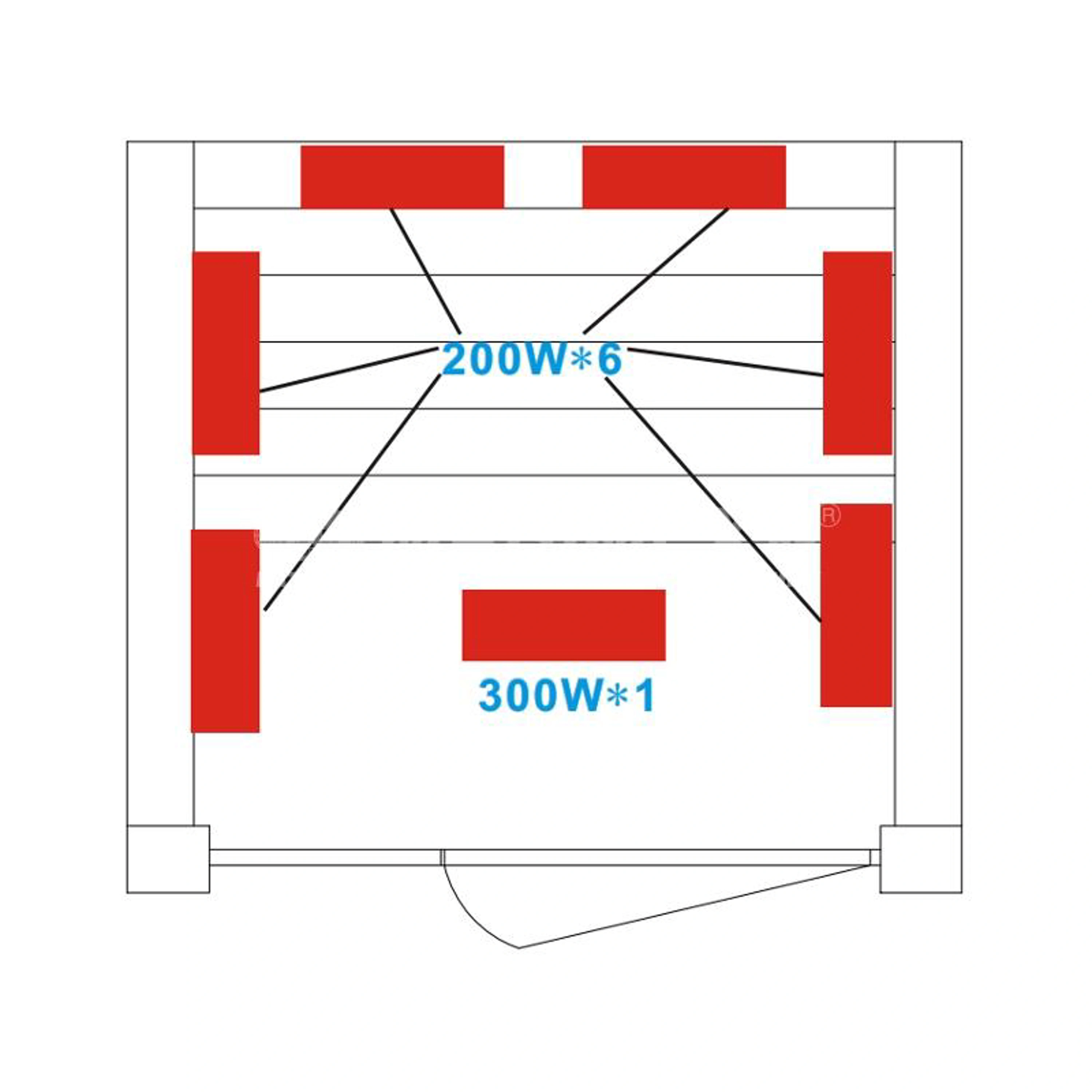 V infrasauně je rozmístěno sedm karbonových topidel. Ve srovnání s jinými typy karbonové zářiče tvoří tenké pásy, které vyvinou povrchovou teplotu 70 - 170 stupňů Celsia. Karbonové zářiče dosáhnou maximální teploty pomaleji, naproti tomu mají delší životnost (při saunování 3x týdně cca 90 let). Tento typ zářičů prohřeje lidské tělo rovnoměrně a do hloubky.
