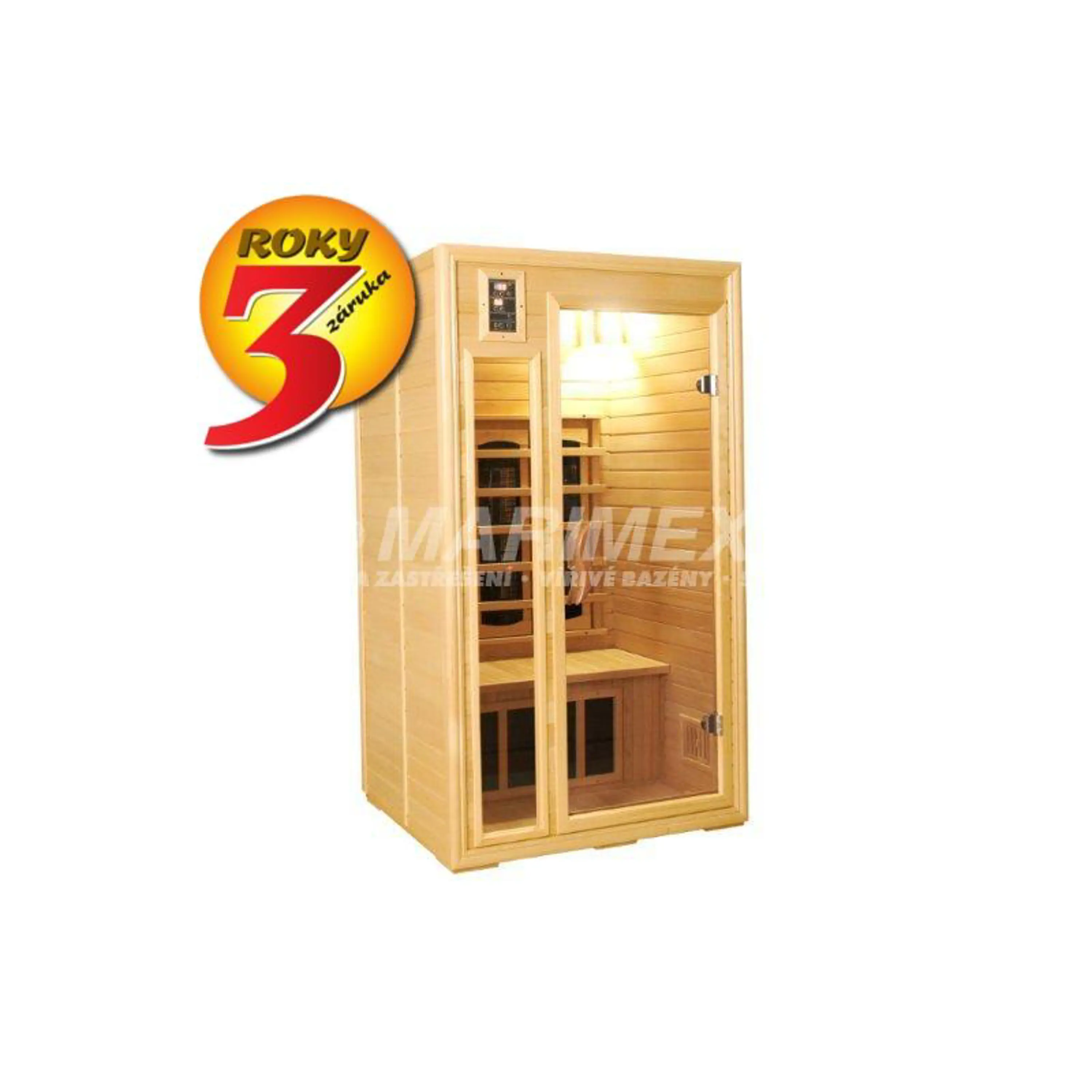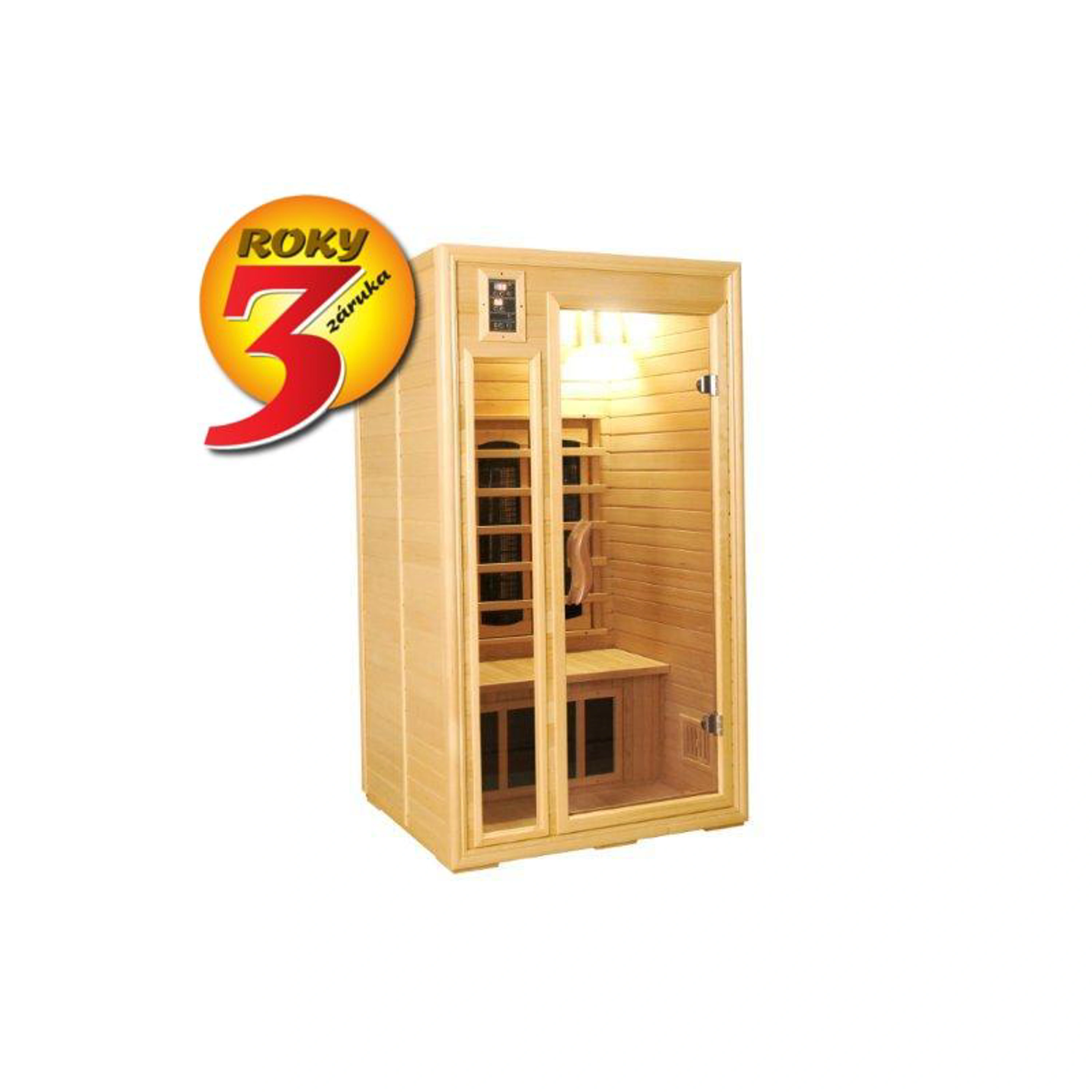kvalitního dřeva kanadského jedlovce - hemlocku. Fit & Fun 1 umožňuje vychutnat kouzlo saunování jedné osobě. Malé rozměry dovolují infrasaunu umístit v rodinném domě i prostornějším bytě. Skleněné dveře umožňují