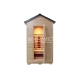 Infrasauna Garden S je vhodná pro dvě osoby. Infrasauna vydrží venkovní teploty -20 °C až 66 °C. Vnější dřevěná plocha je ošetřena venkovním nátěrem chránícím proti povětrnostním vlivům (doporučujeme tento nátěr každých 6 měsíců obnovovat standardním venkovním nátěrem na dřevo).
