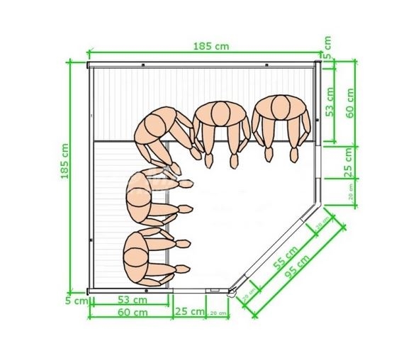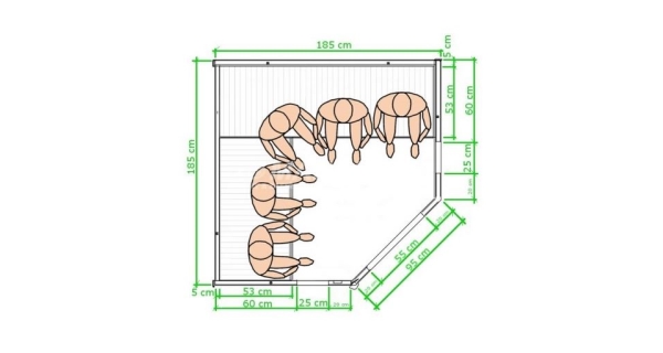 Konstrukce infrasauny Grand R dovoluje saunování až šesti osob najednou. Celá rodina si tak najednou může vychutnat kouzlo této zdraví prospěšné aktivity. Při výrobě bylo použito kvalitního cedrového dřeva. Dveře z tvrzeného skla se zeleným odstínem umožňují výhled do okolí.