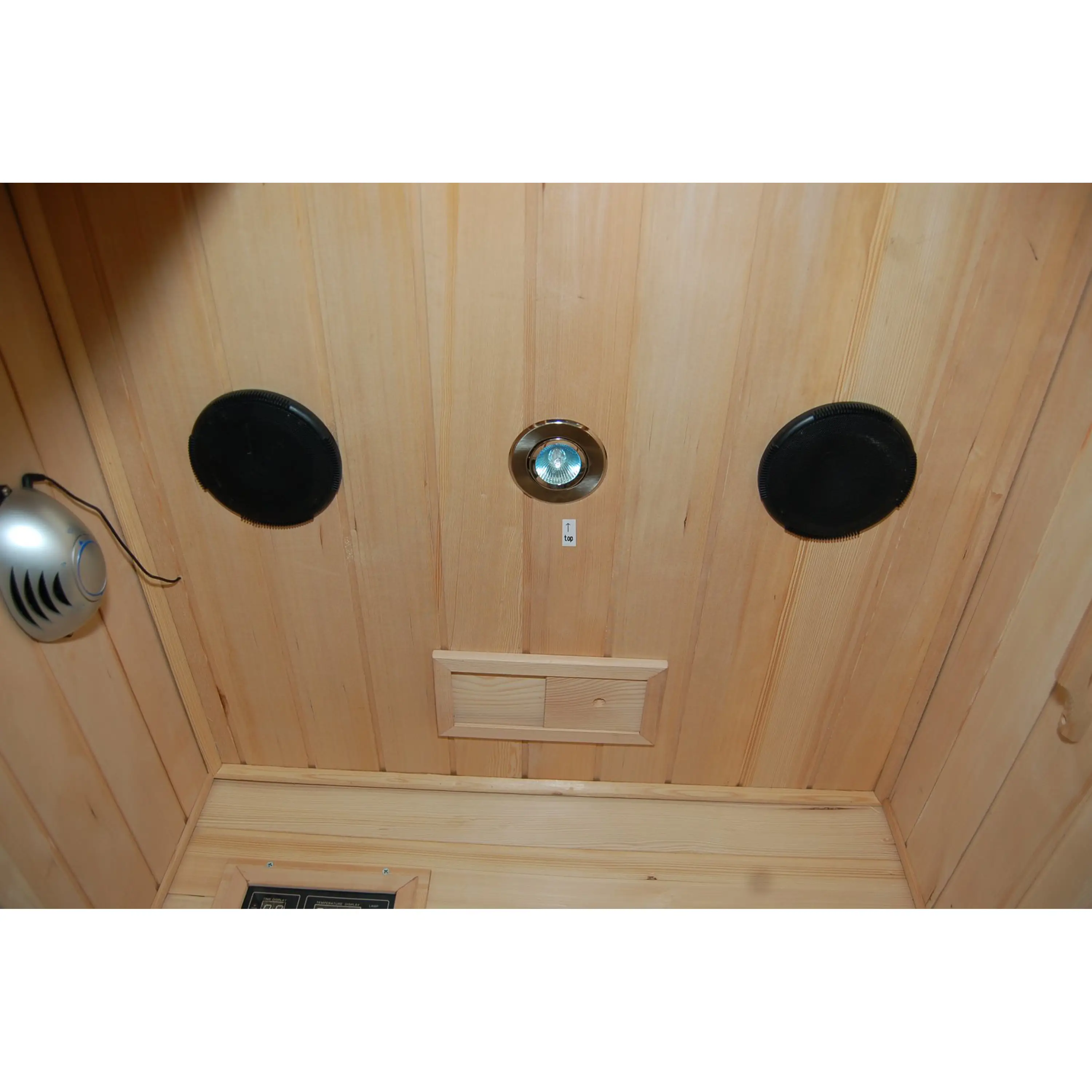 V infrasauně je rozmístěno pět karbonových topidel. Ve srovnání s jinými typy karbonové zářiče tvoří tenké pásy, které vyvinou povrchovou teplotu 70 - 170 stupňů Celsia. Karbonové zářiče dosáhnou maximální teploty pomaleji, naproti tomu mají delší životnost (při saunování 3x týdně cca 90 let). Tento typ zářičů prohřeje lidské tělo rovnoměrně a do hloubky.